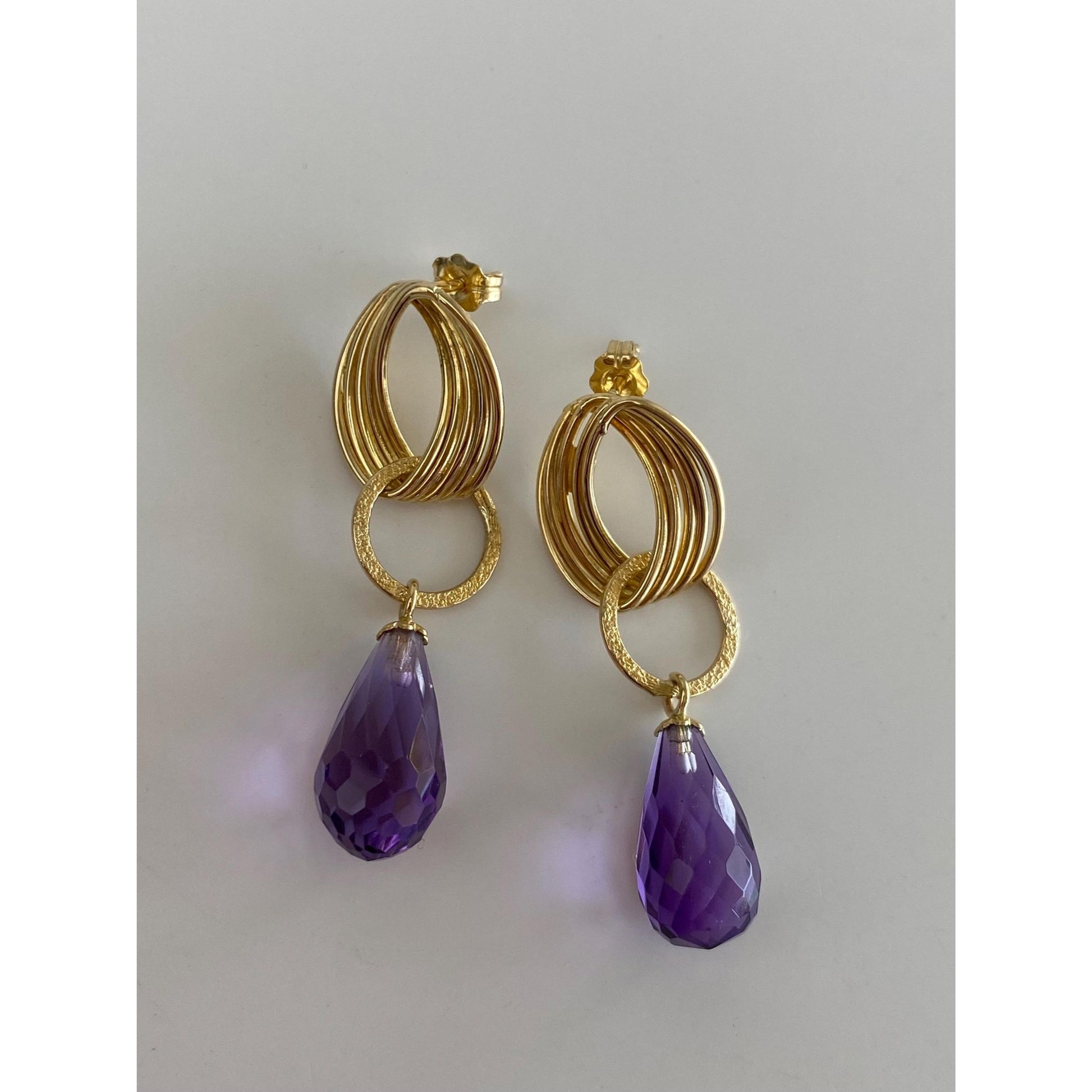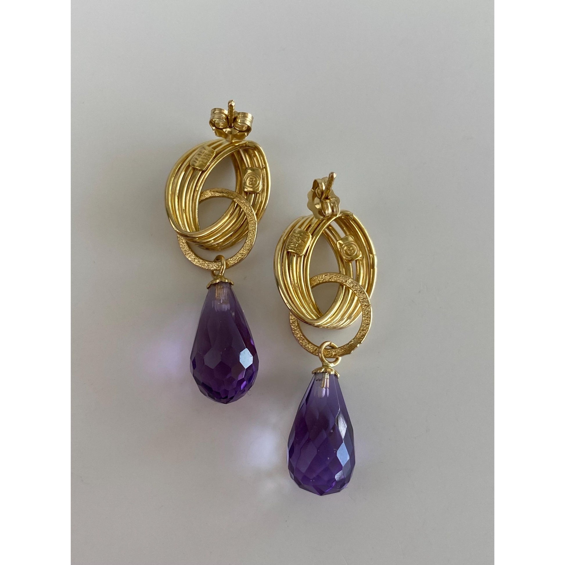 Vintage 14k Yellow Layered Rose Cut Amethyst Dangle Stud Earrings