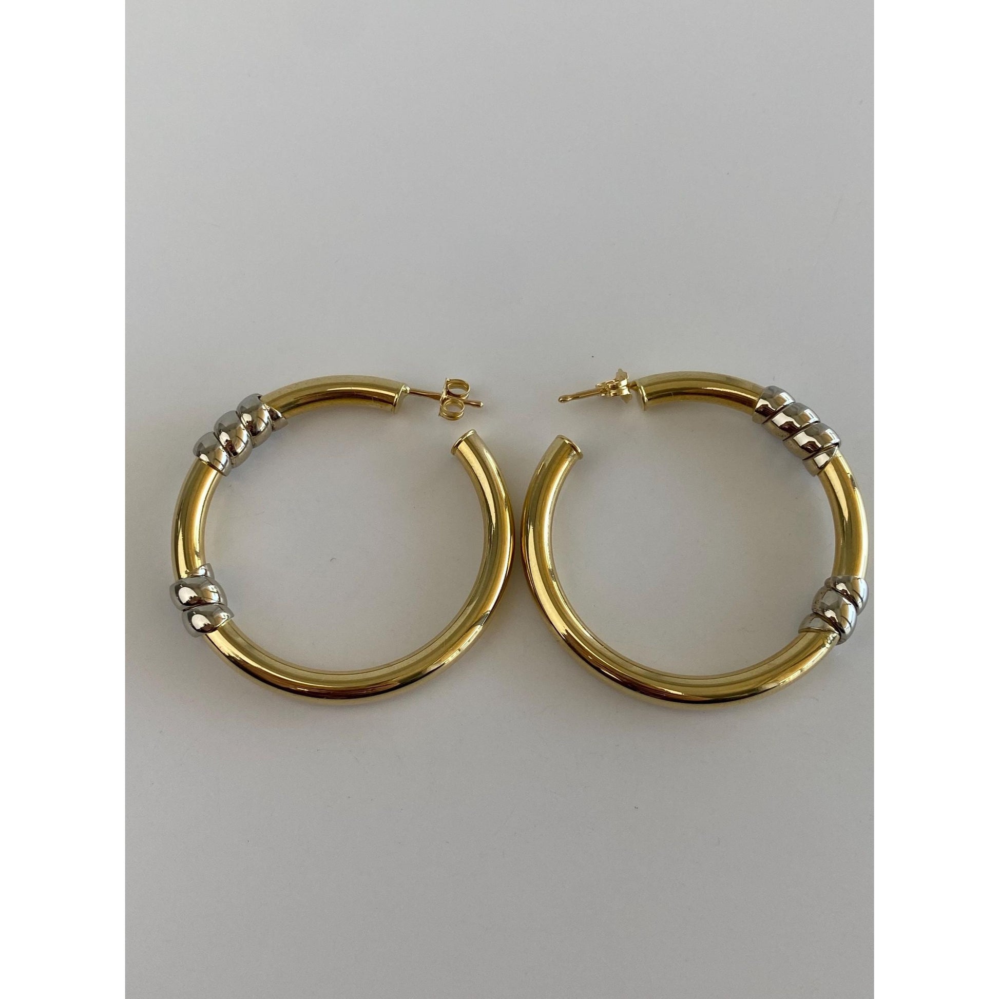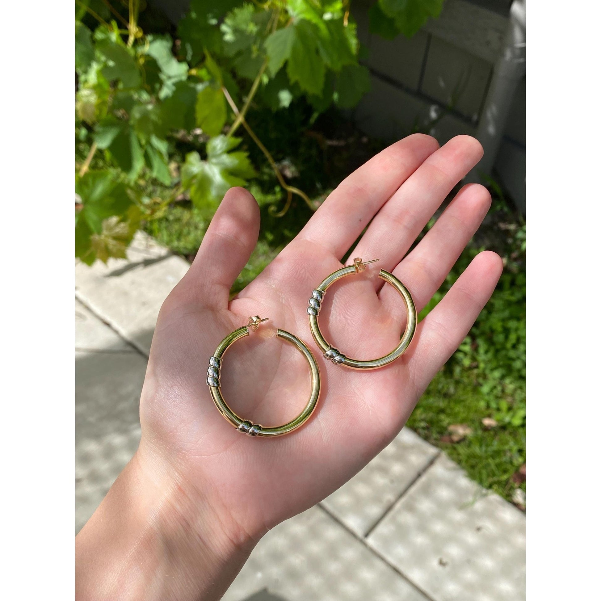 Vintage 18k White & Yellow Gold Large Hoop Earrings