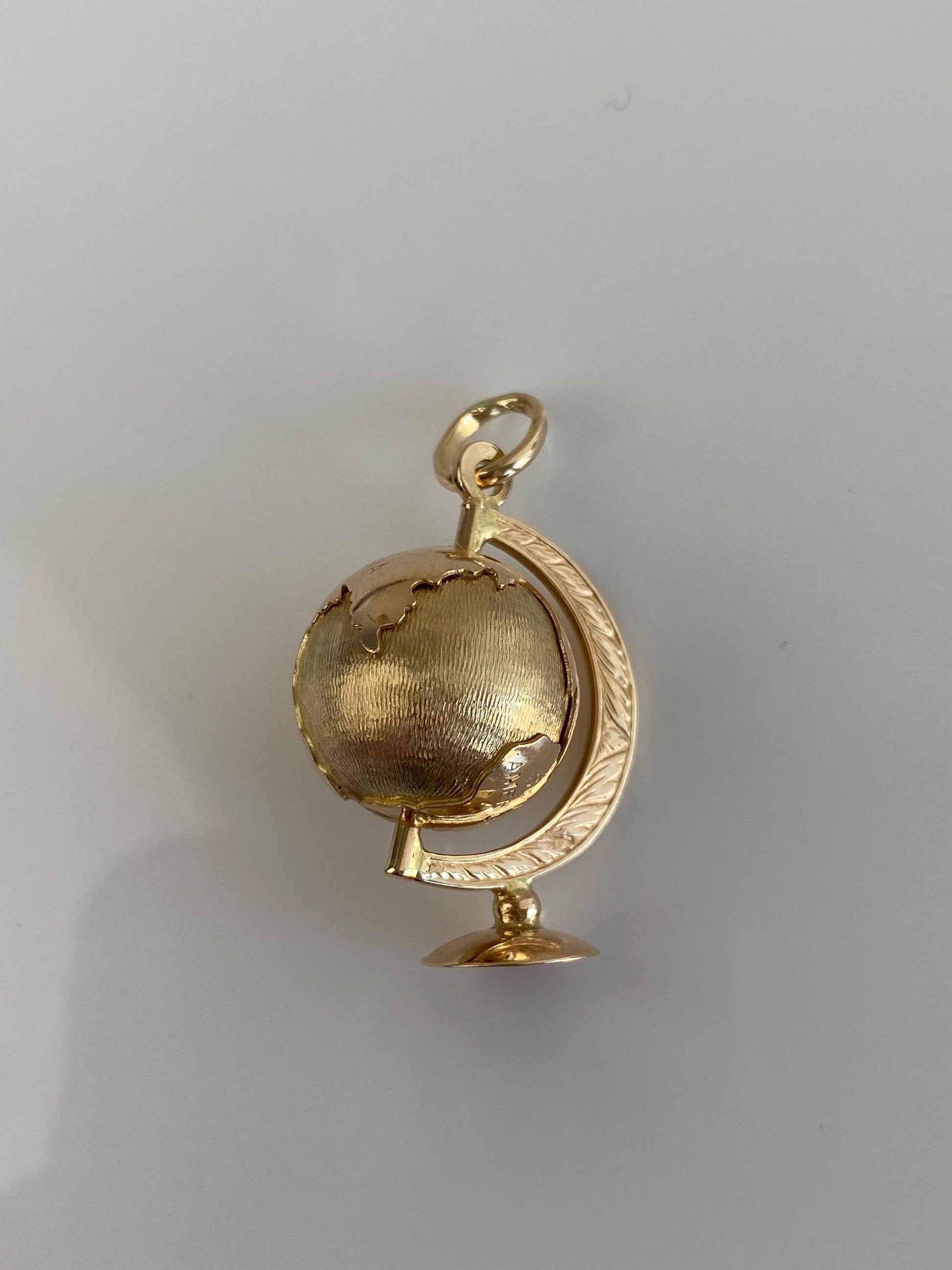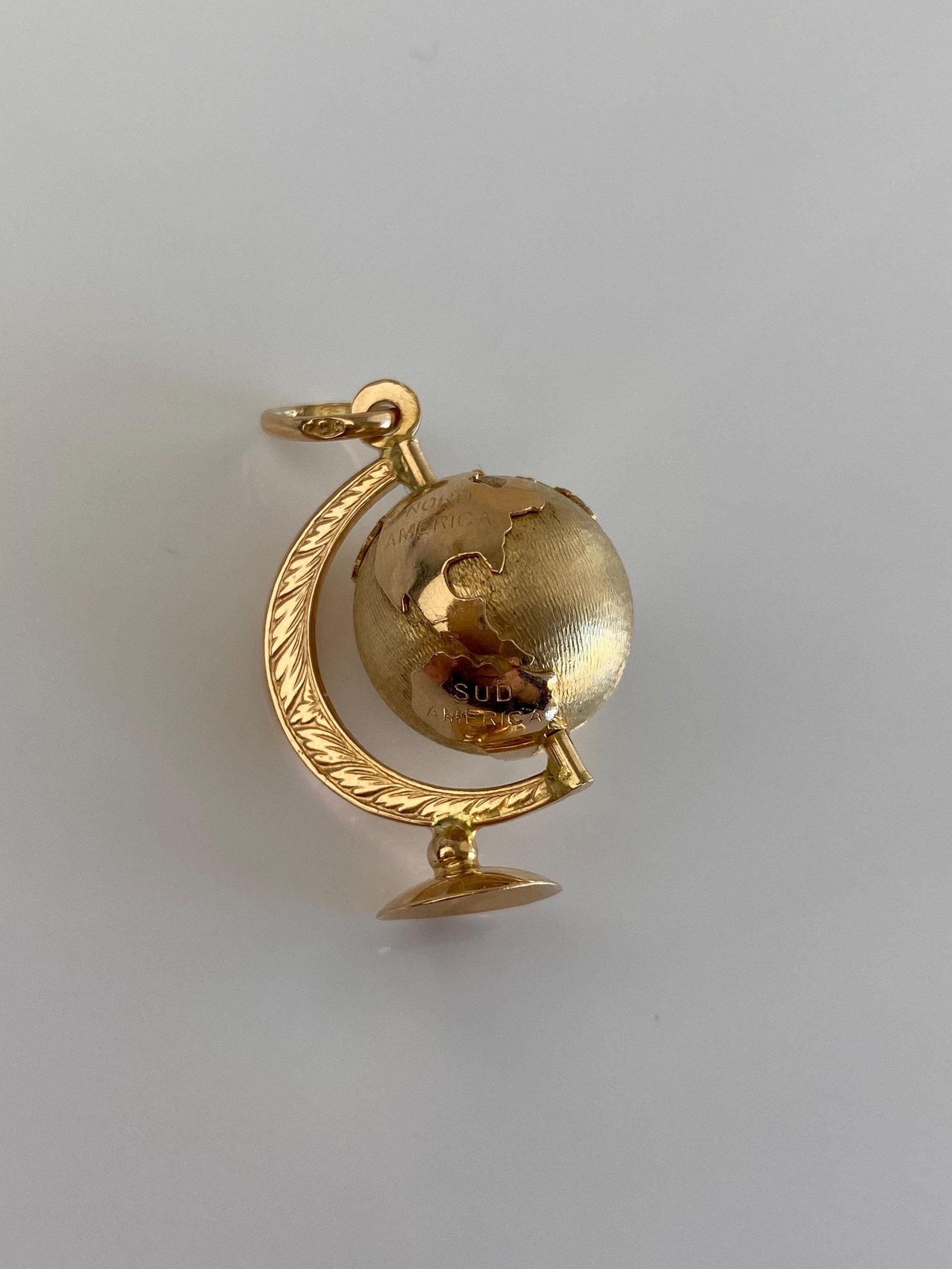 Vintage 18k Yellow Gold Articulated Globe Charm
