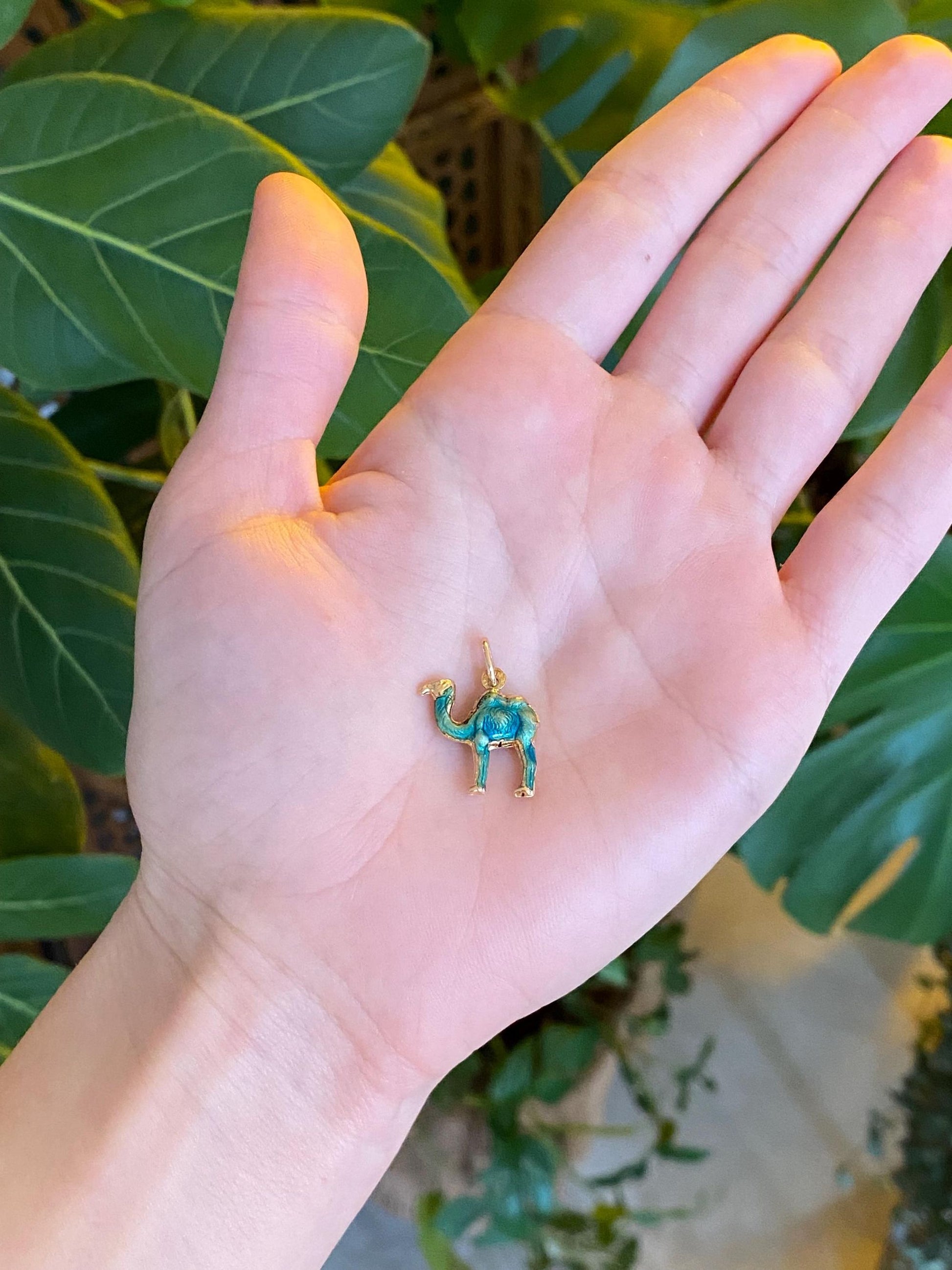 Vintage 18k Yellow Gold Enamel Camel Charm