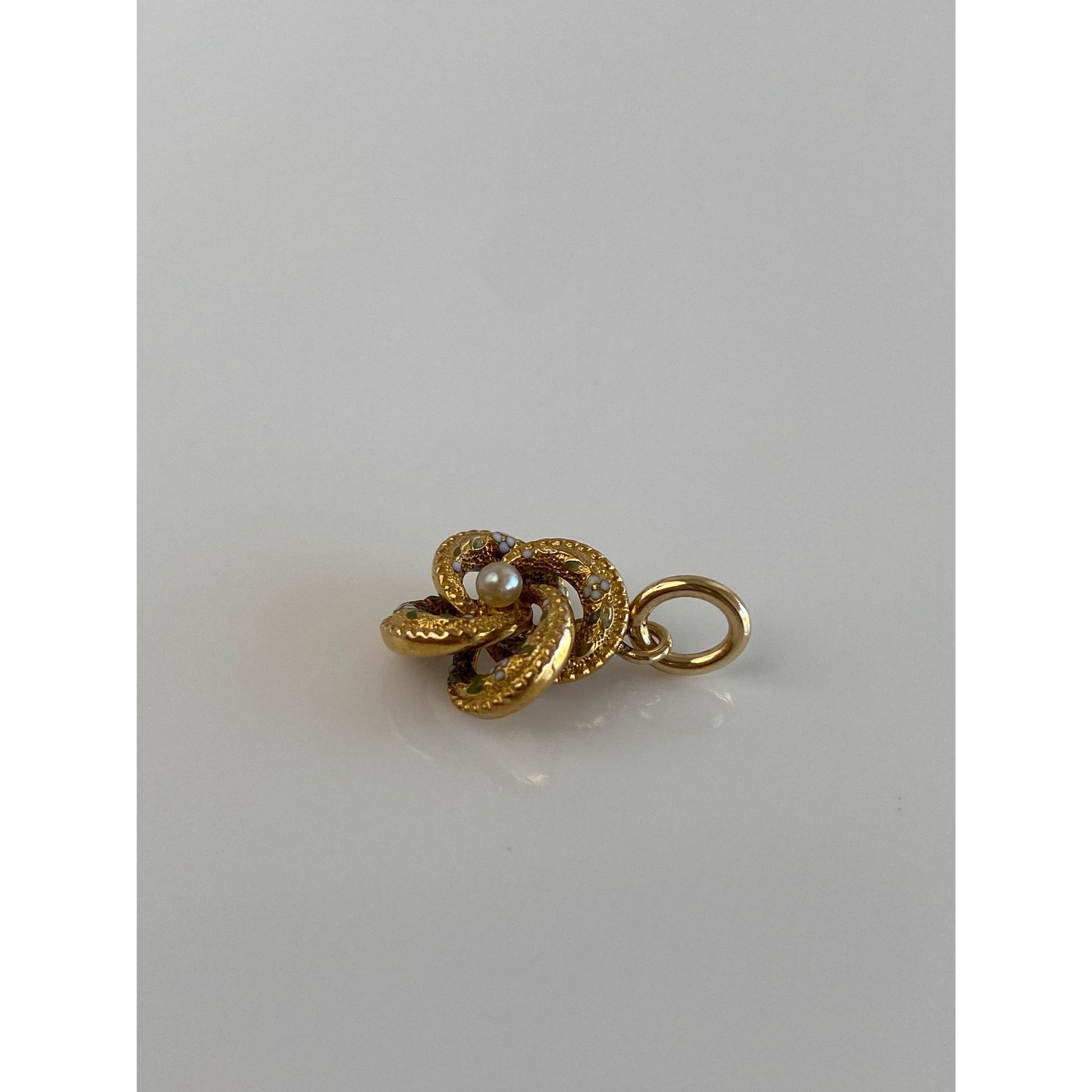 Vintage 18k Yellow Gold Enamel Seed Pearl Knot Charm