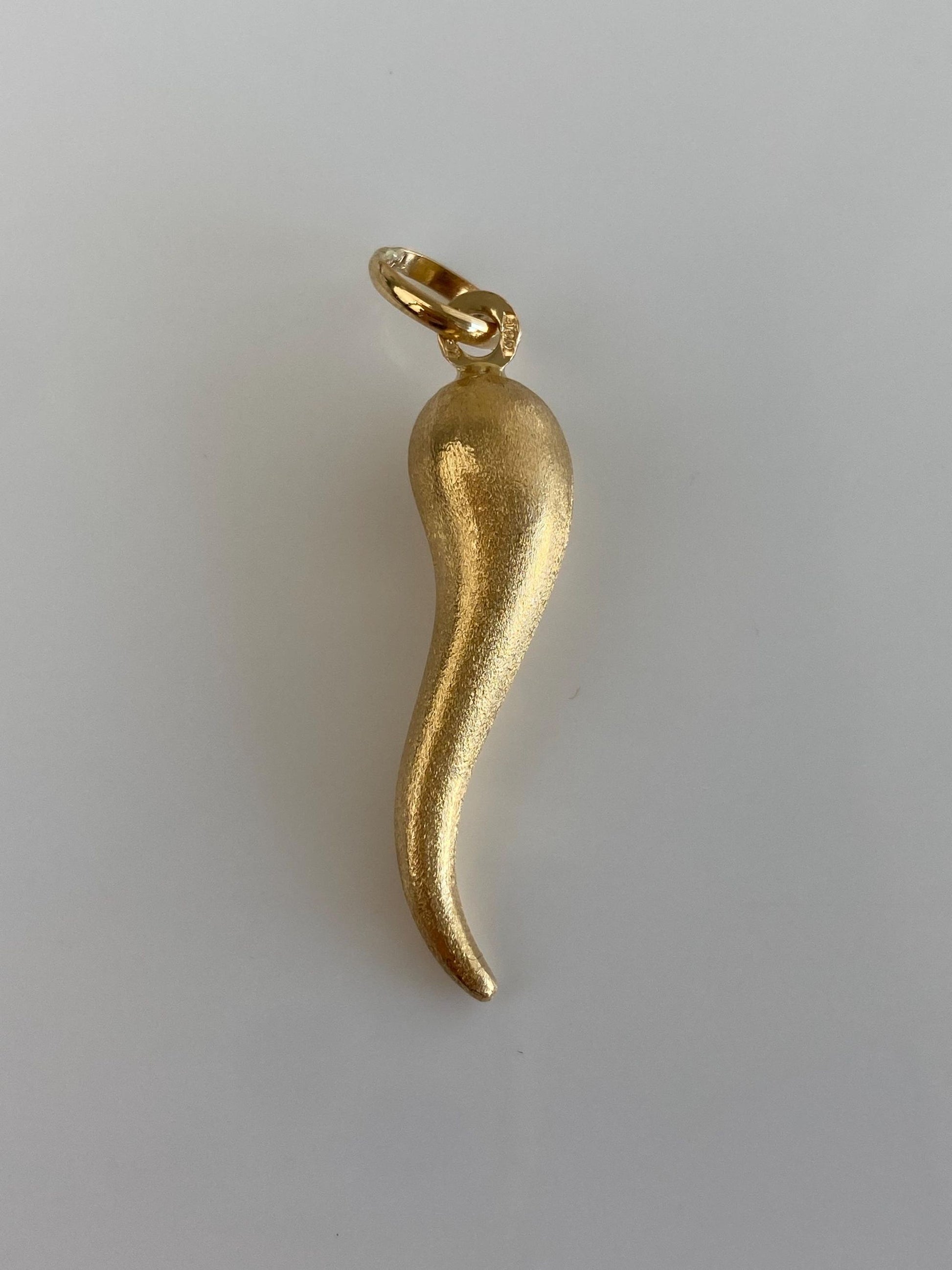 Vintage 18k Yellow Gold Large Textured Italian Horn Charm