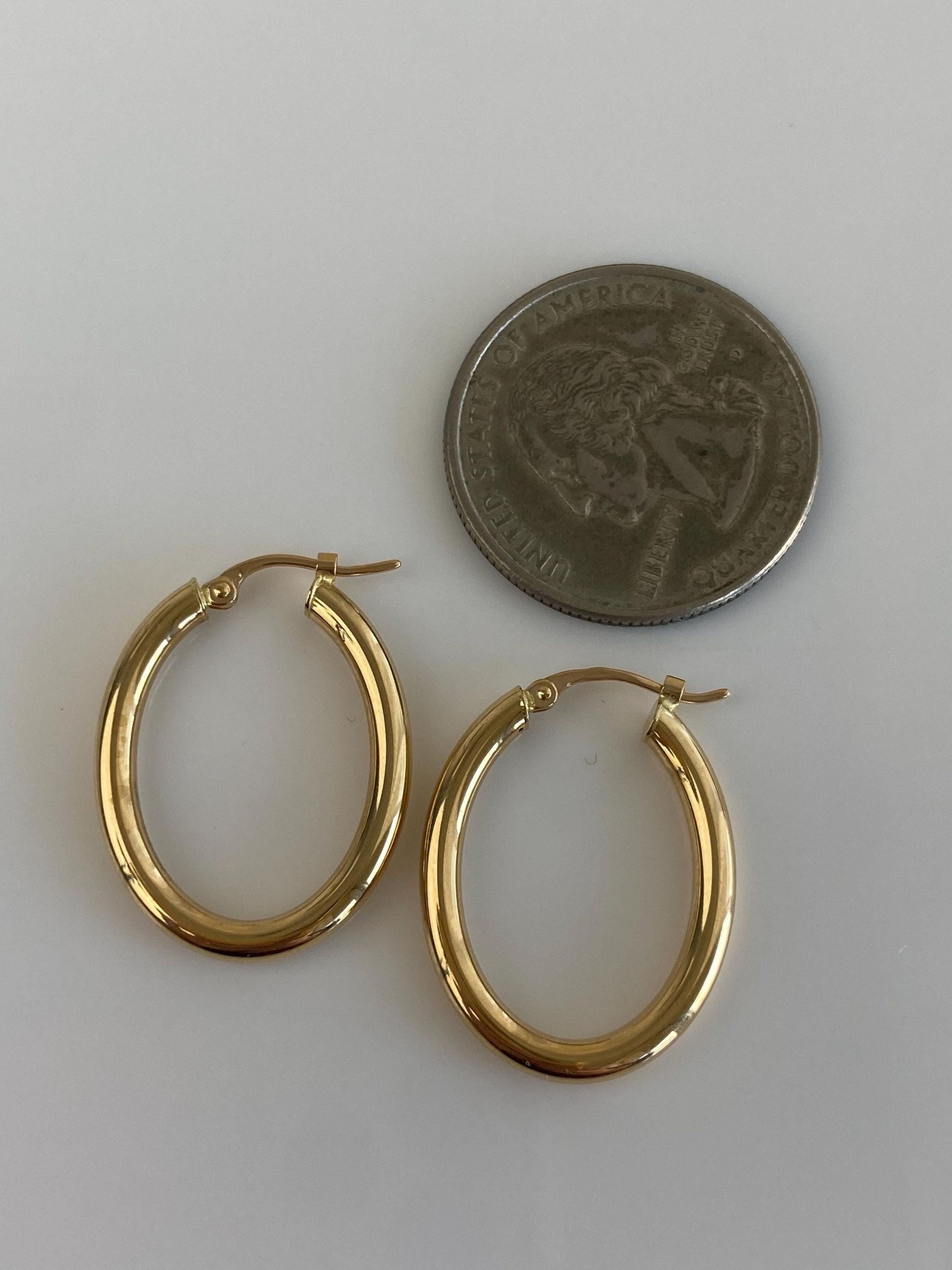 Vintage 18k Yellow Gold Oval Hoop Earrings