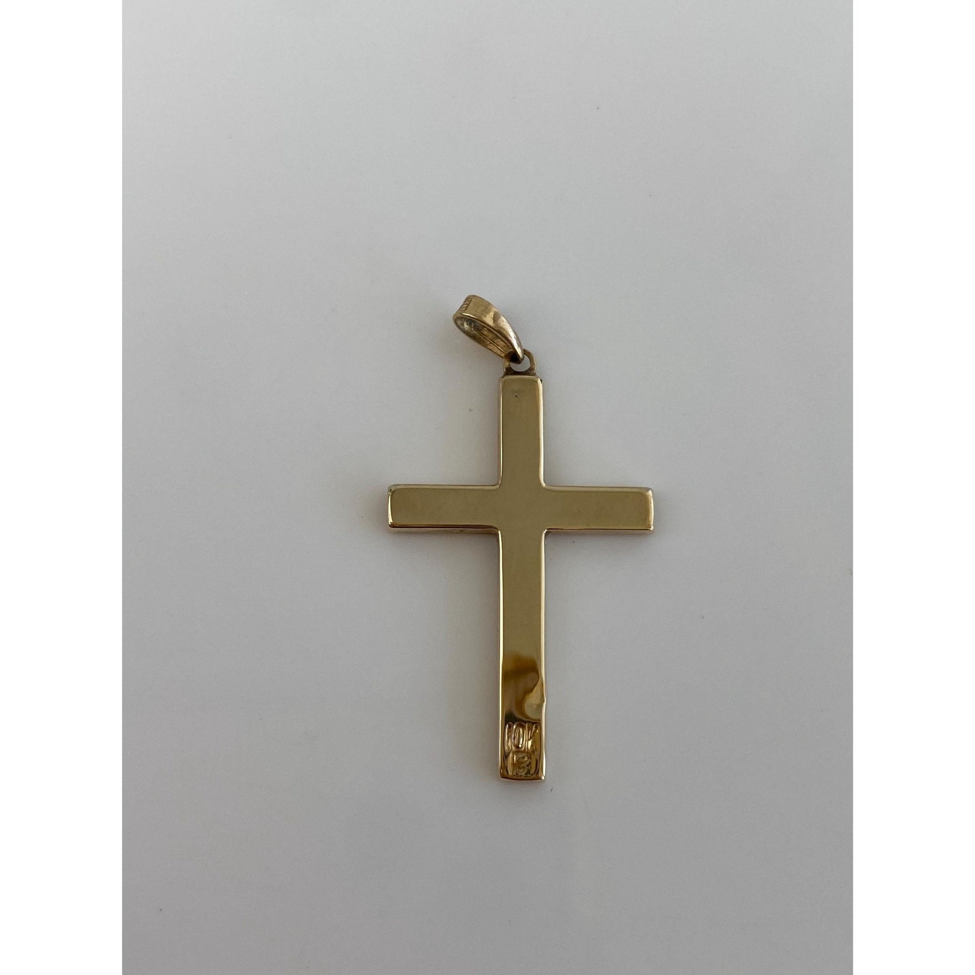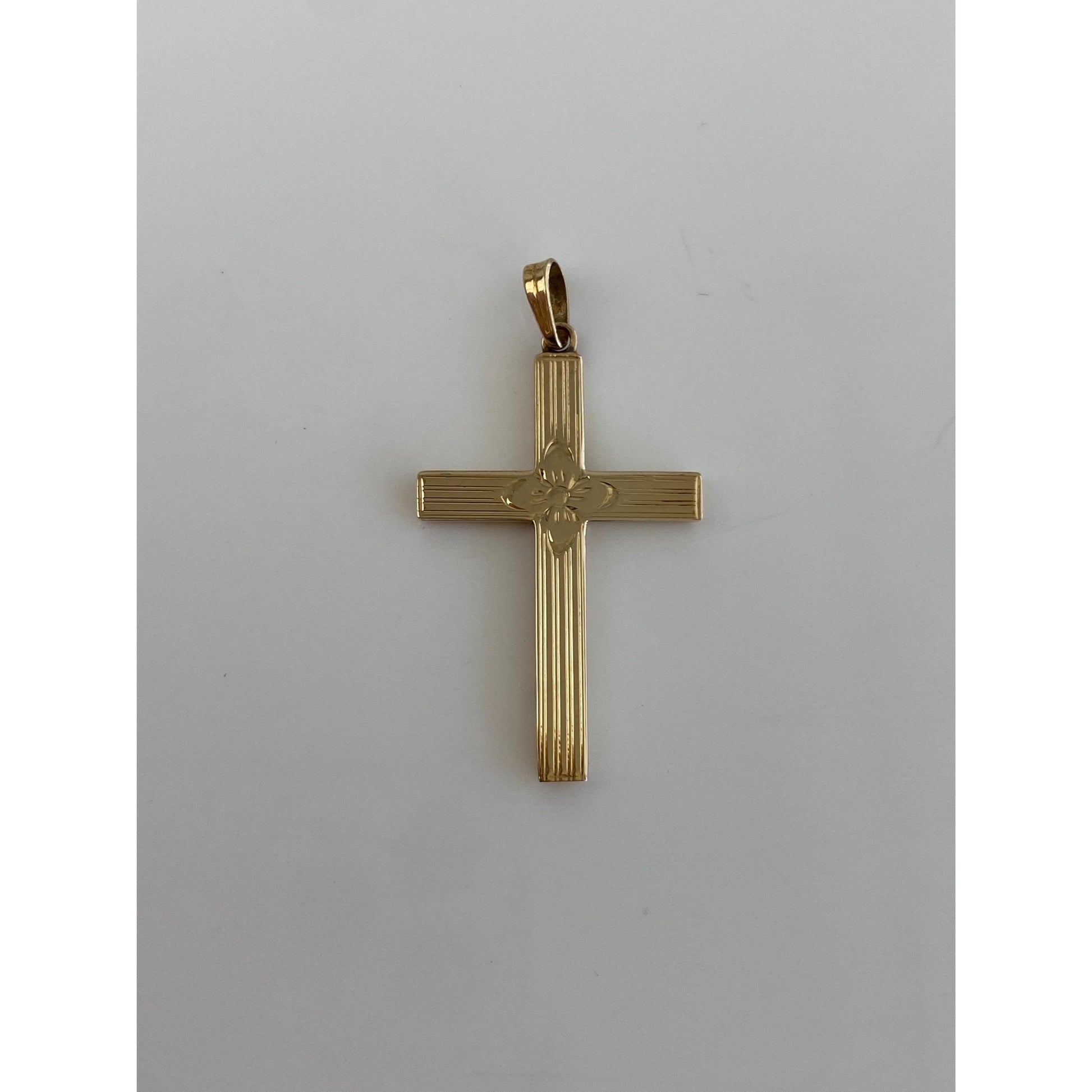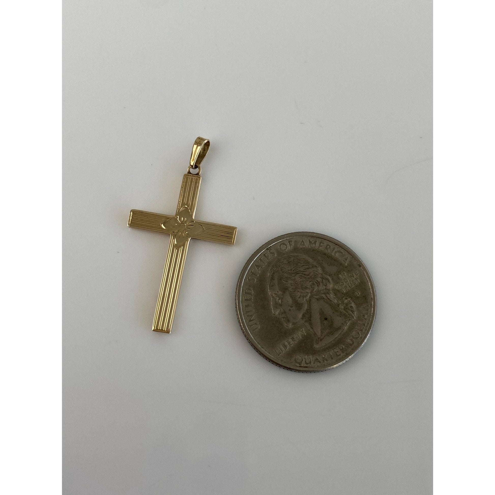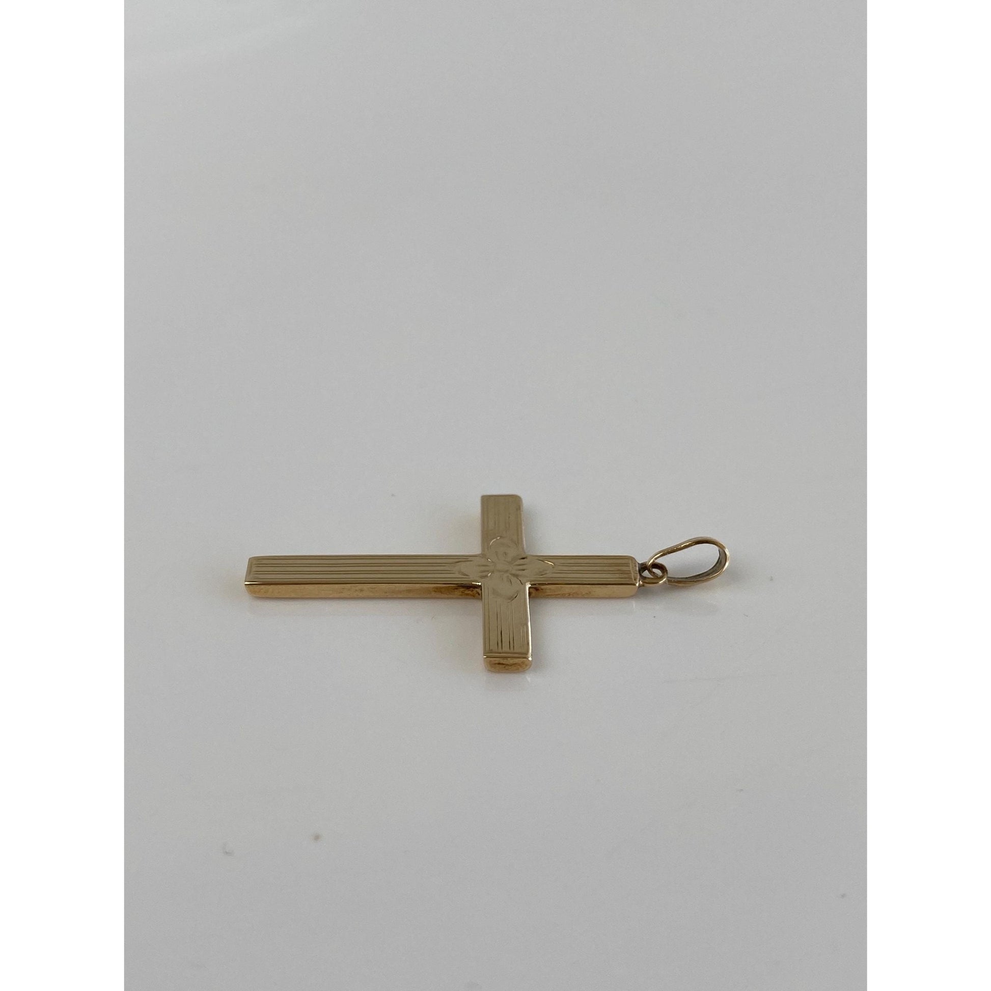 Vintage 9k Yellow Gold Floral Lined Cross Charm