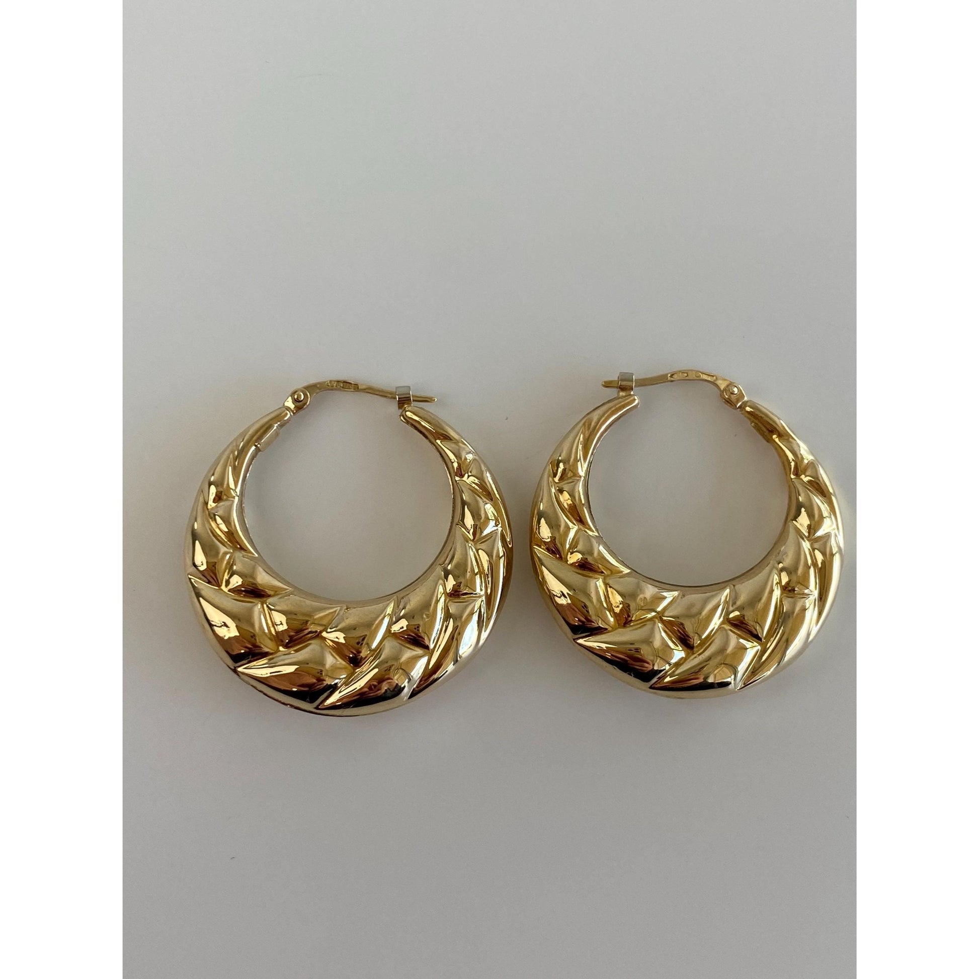 Vintage 9k Yellow Gold Puffy Quilted Braid Texture Hoop Earrings