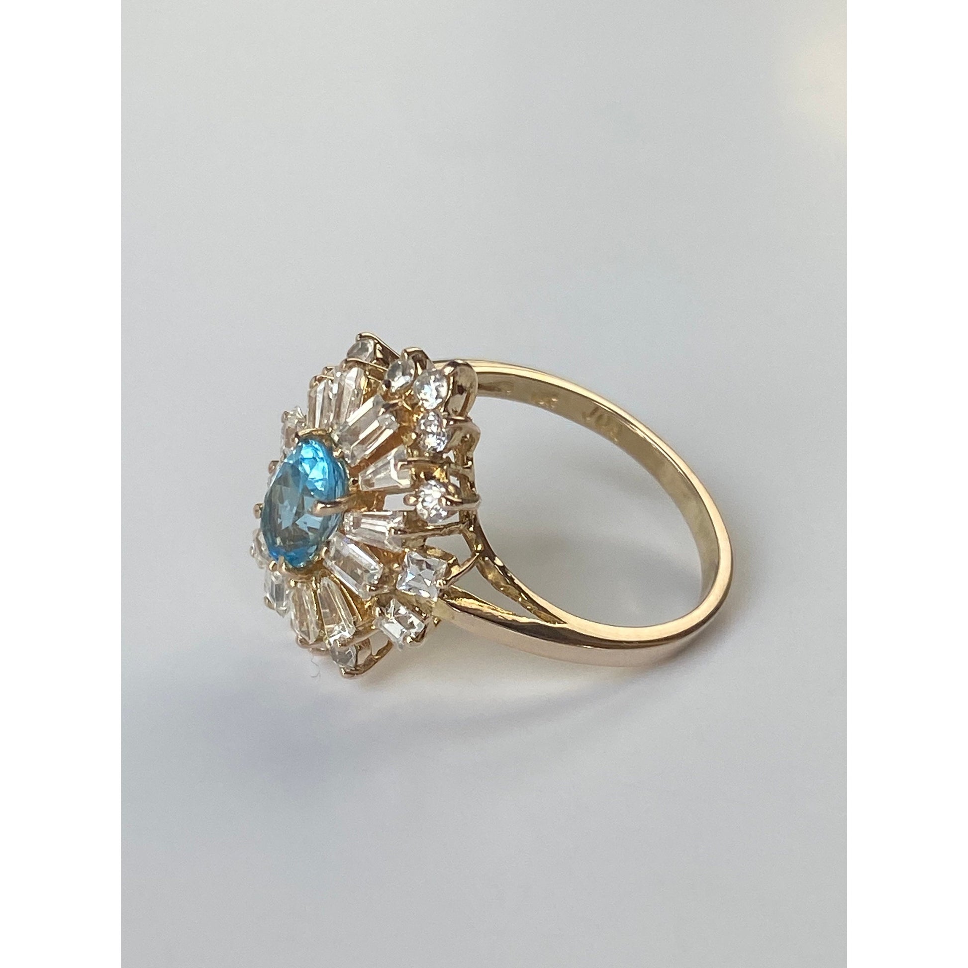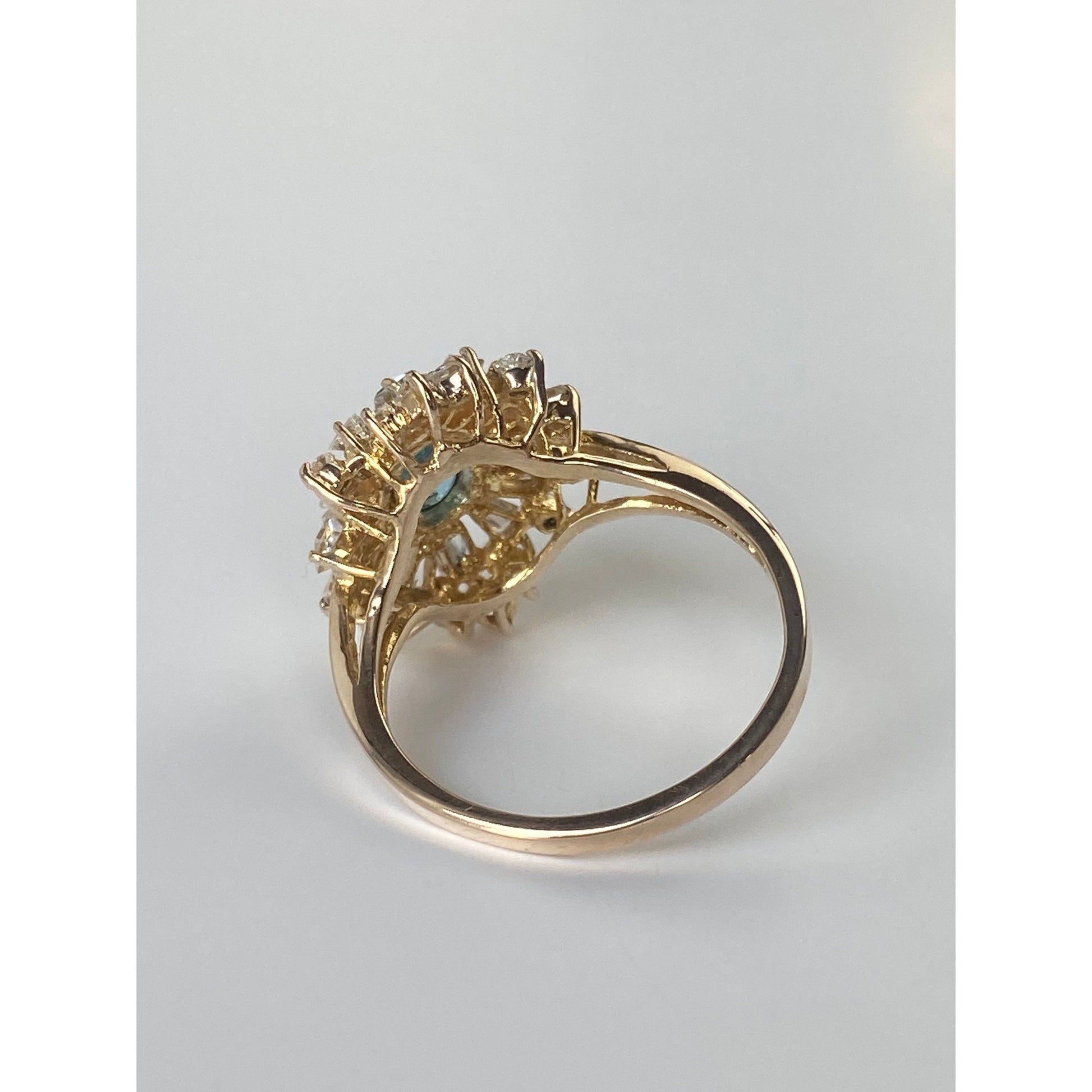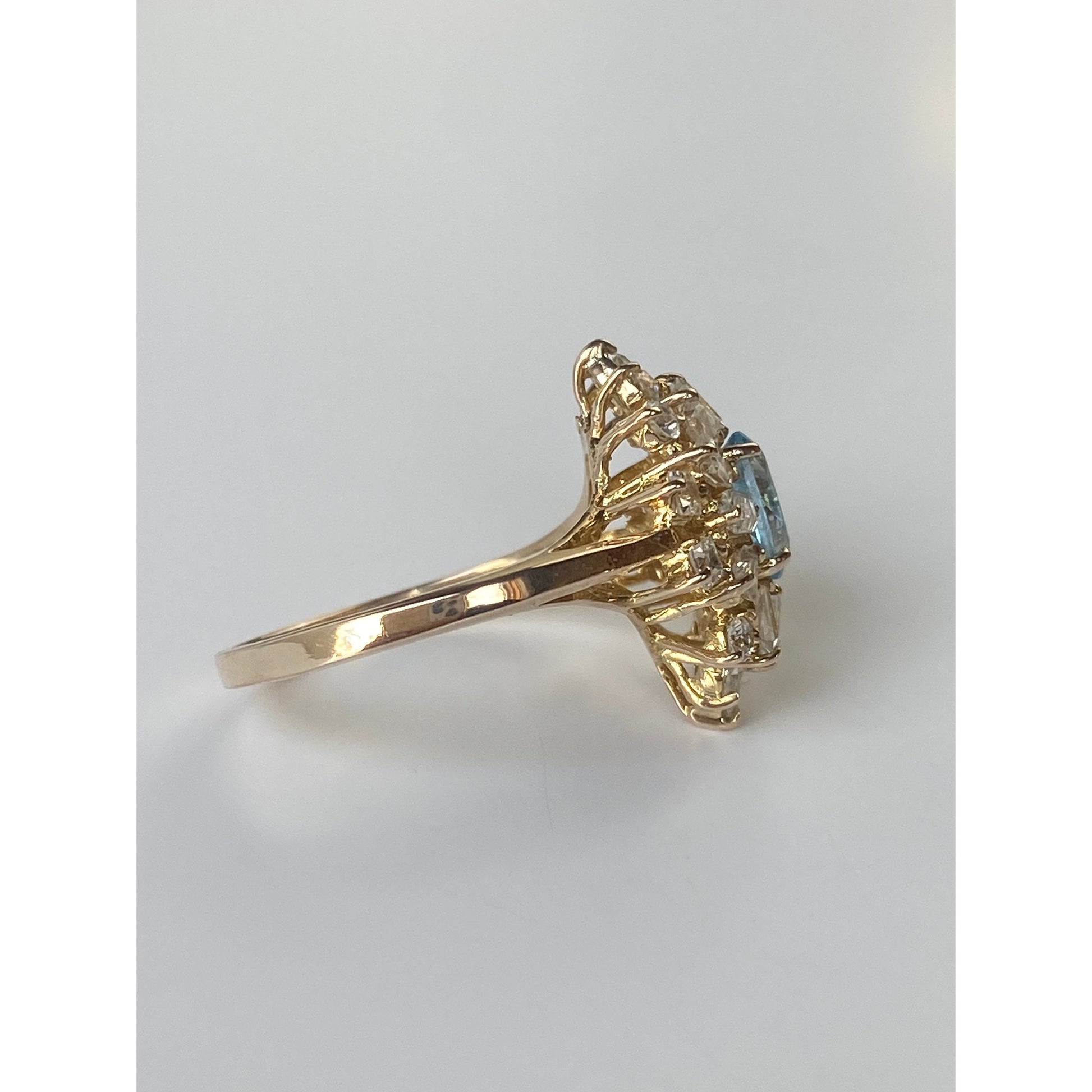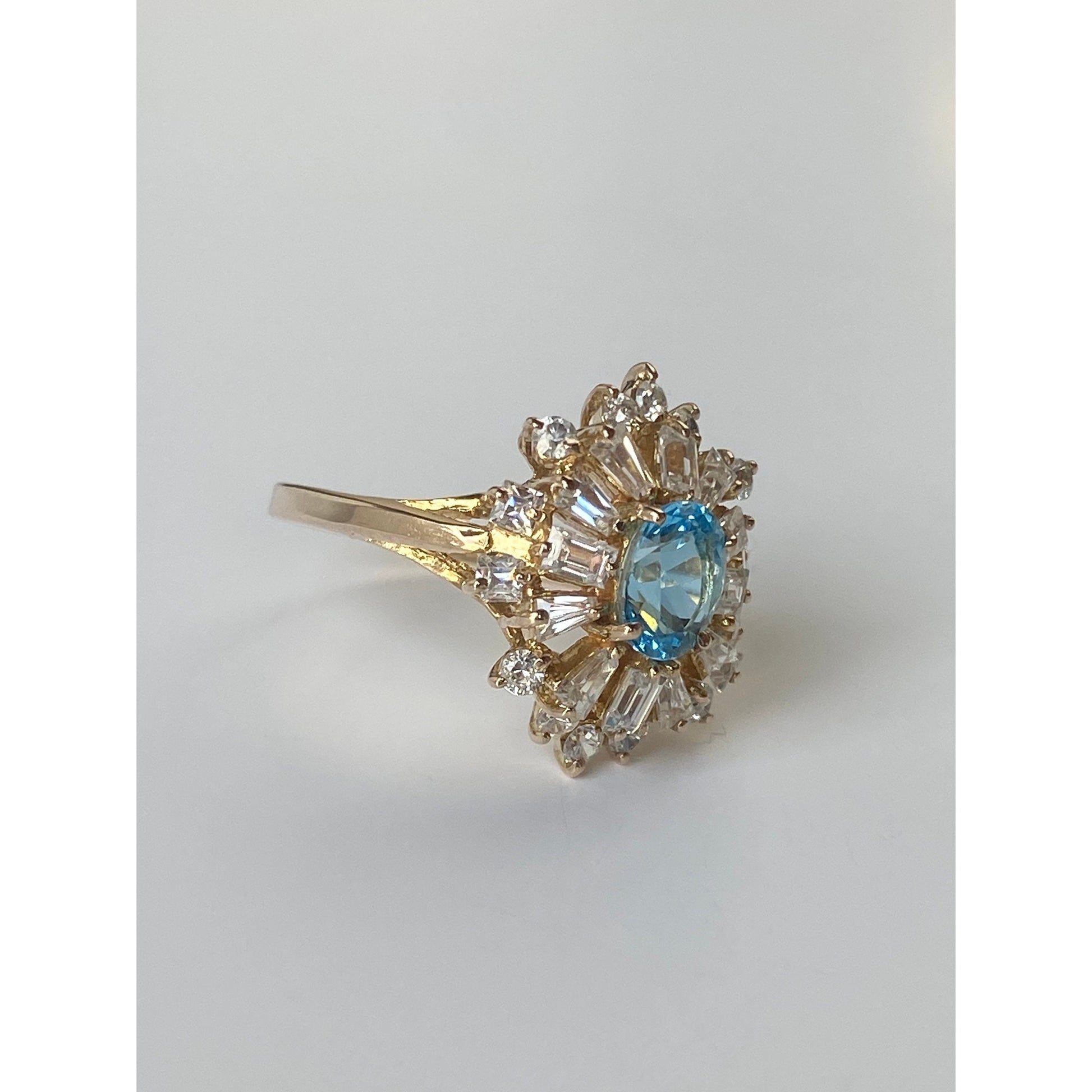 Vintage Solid 10k Aquamarine Clear Cubic Zirconia Halo Ring - Size 7.75