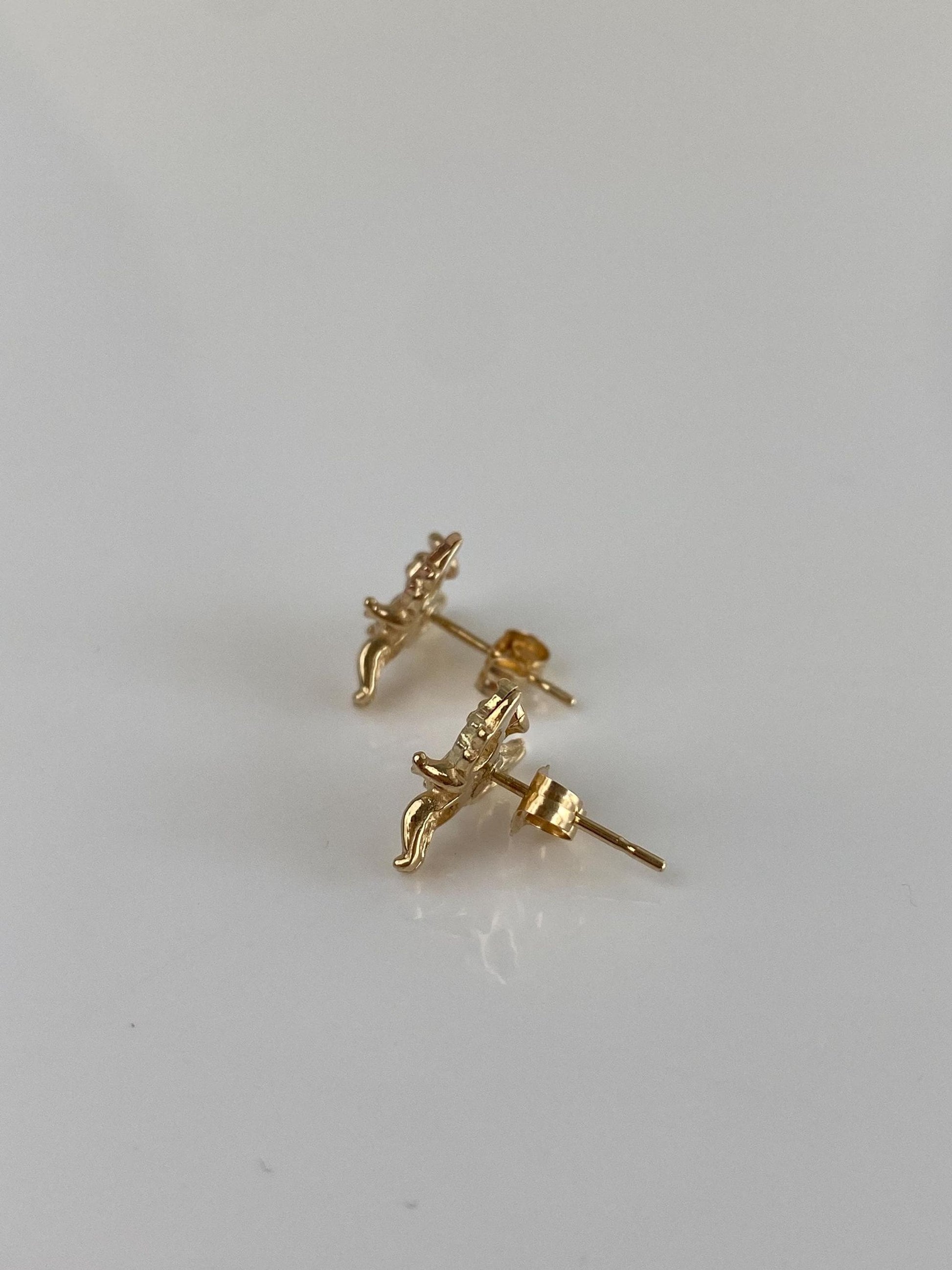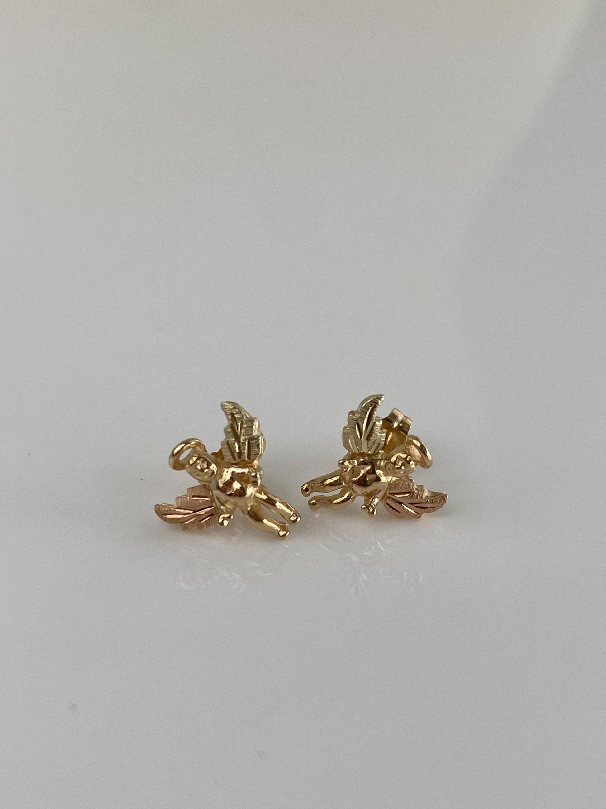Vintage Solid 10k Black Hills Gold Cupid Stud Earrings