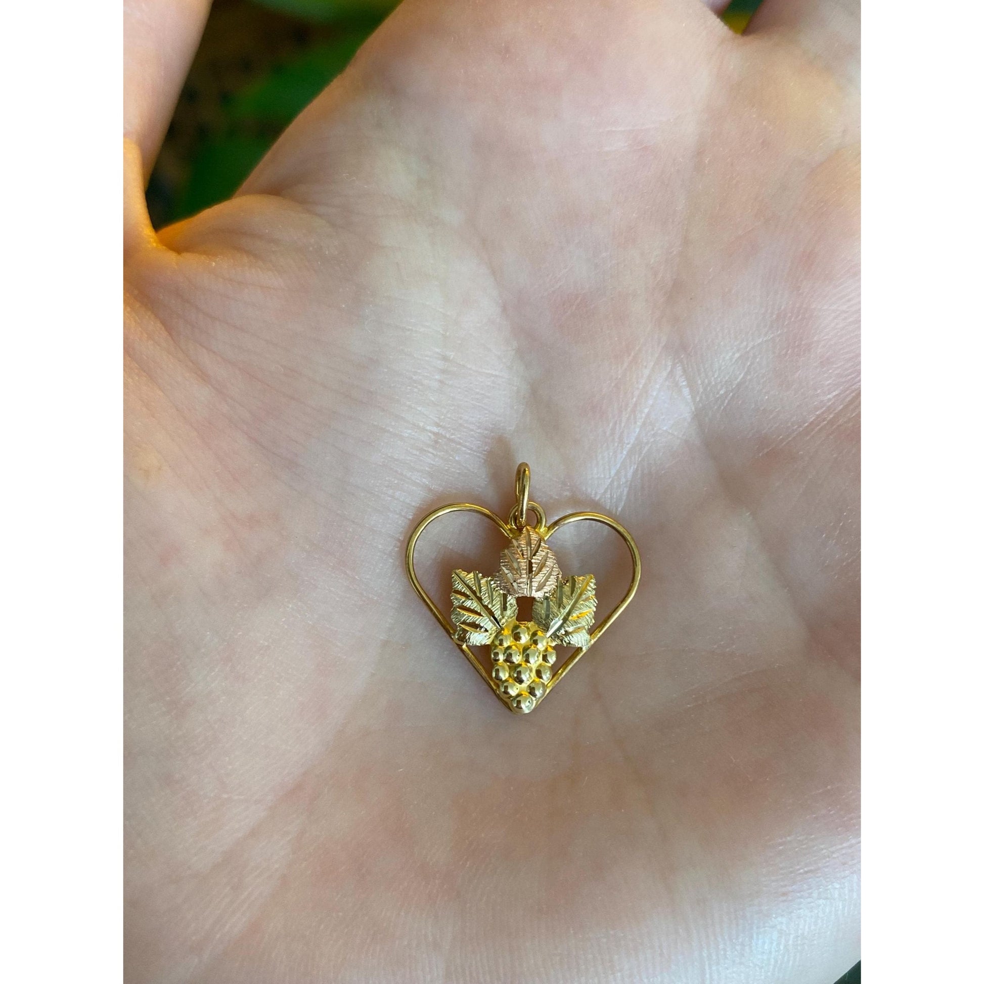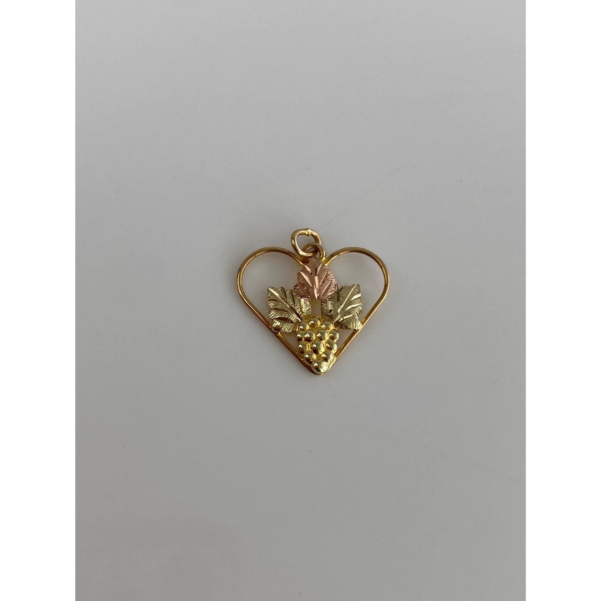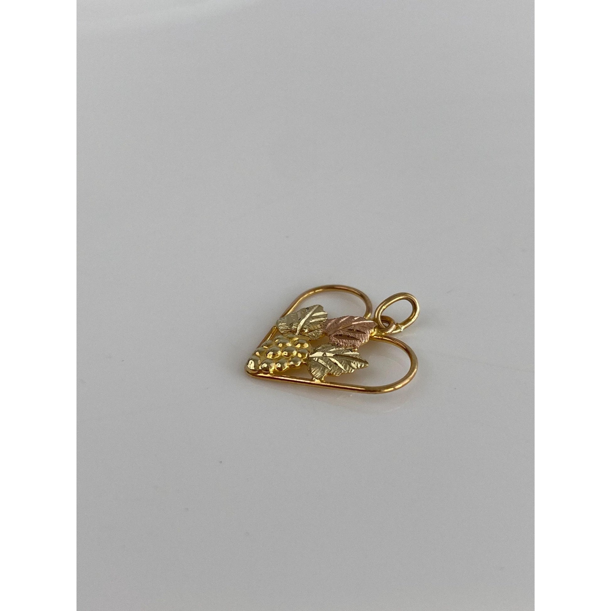 Vintage Solid 10k Black Hills Gold Grape Leaves Heart Charm