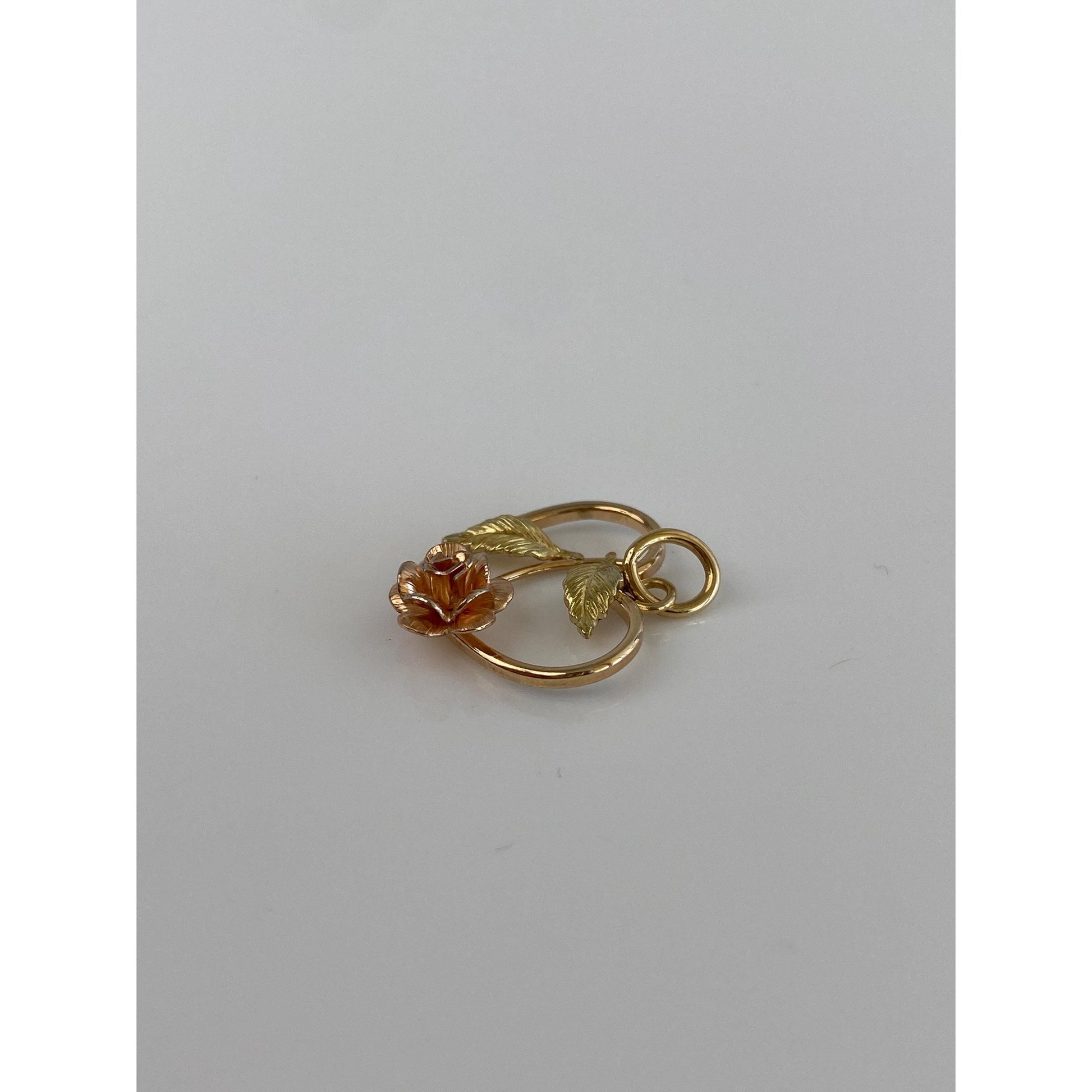 Vintage Solid 10k Multi Tone Gold Rose Flower Heart Charm
