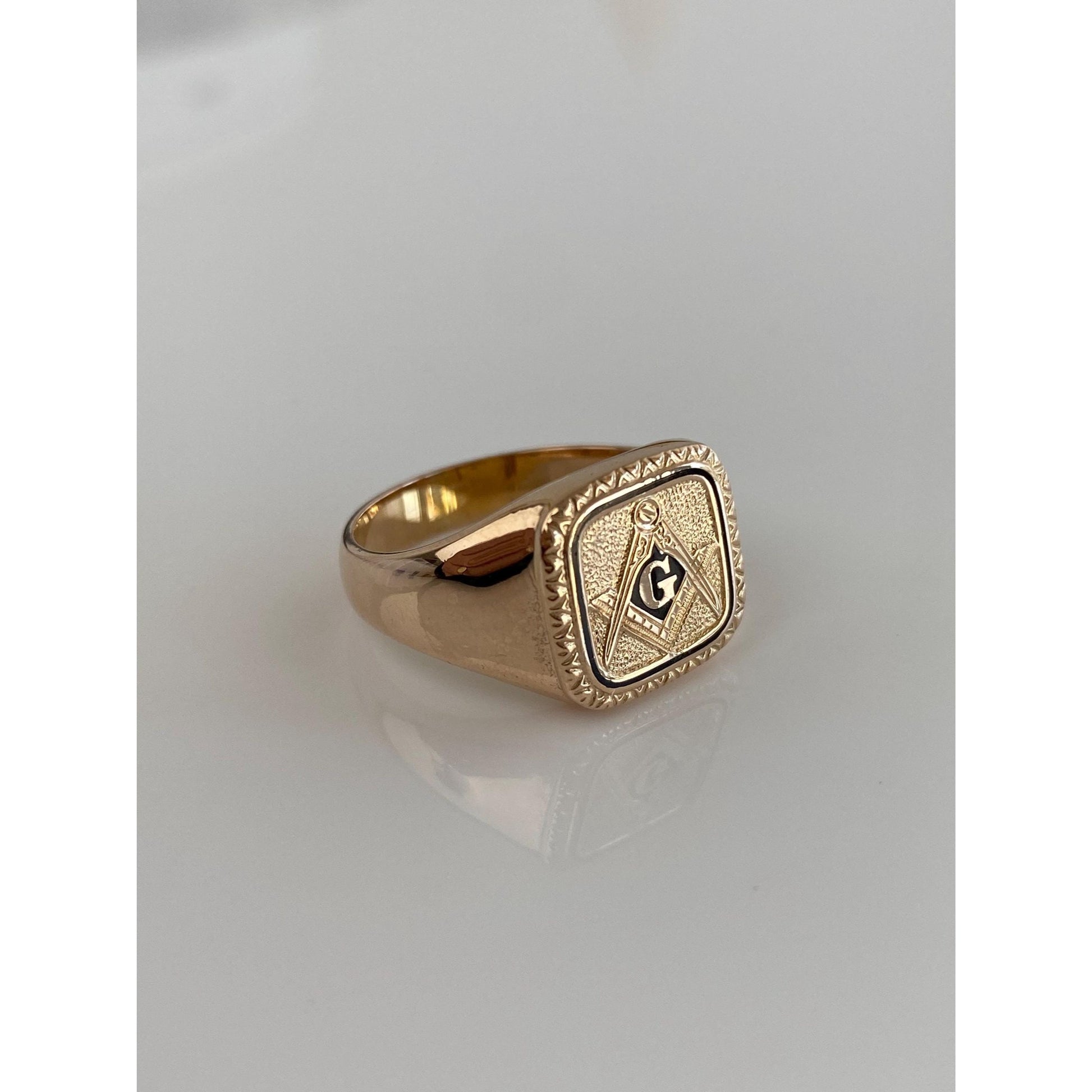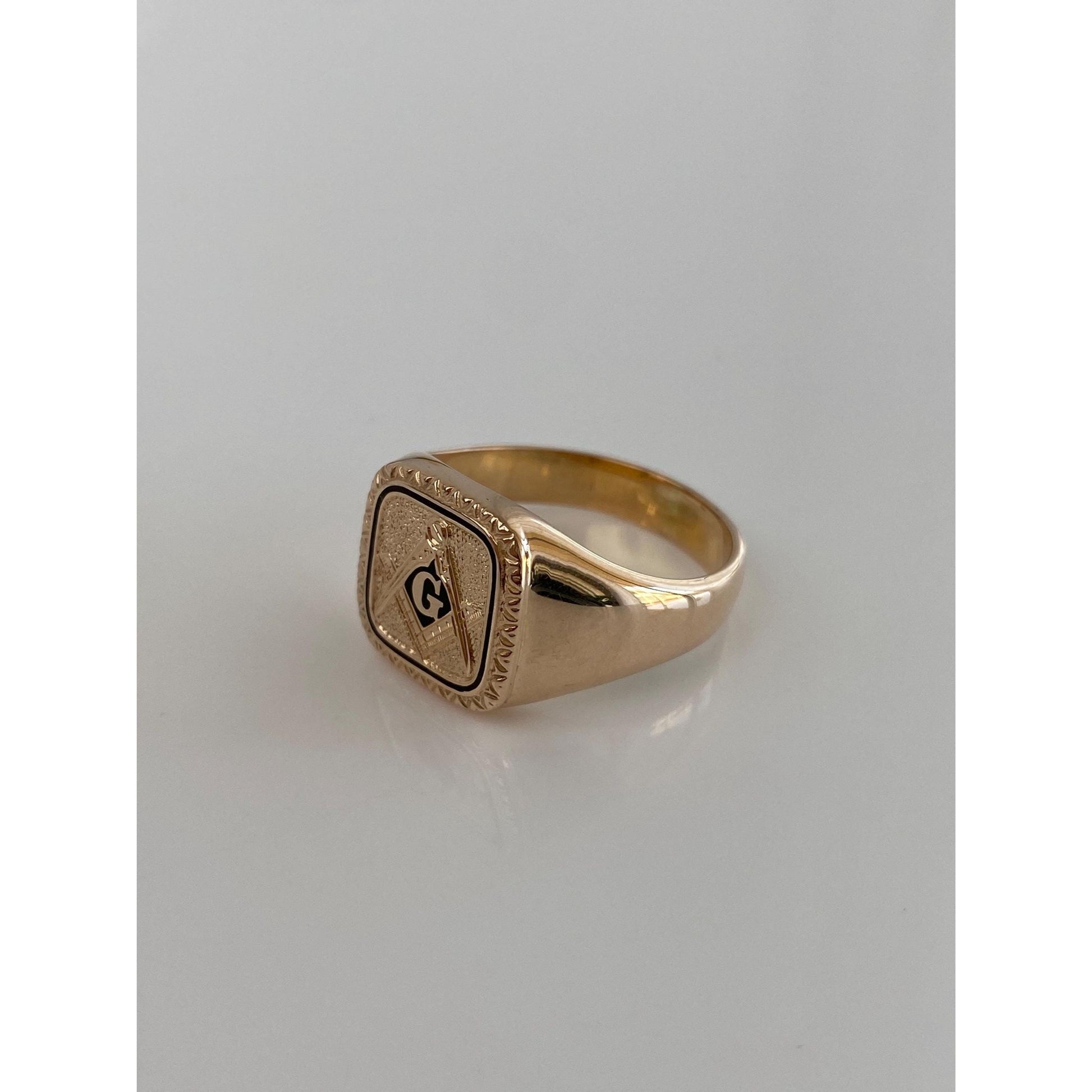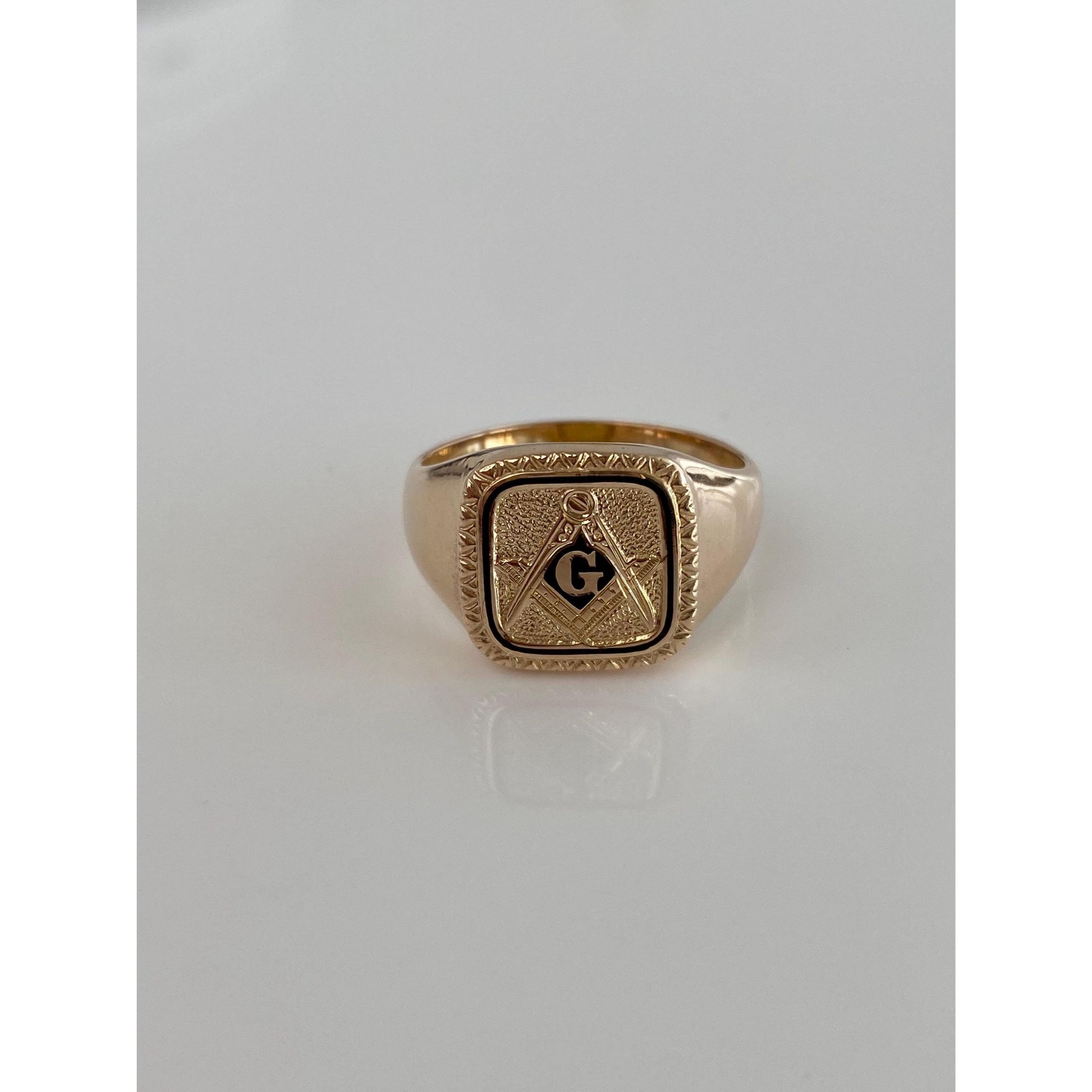 Vintage Solid 10k Rosey Gold Enamel Freemason Signet Ring - Size 9.25