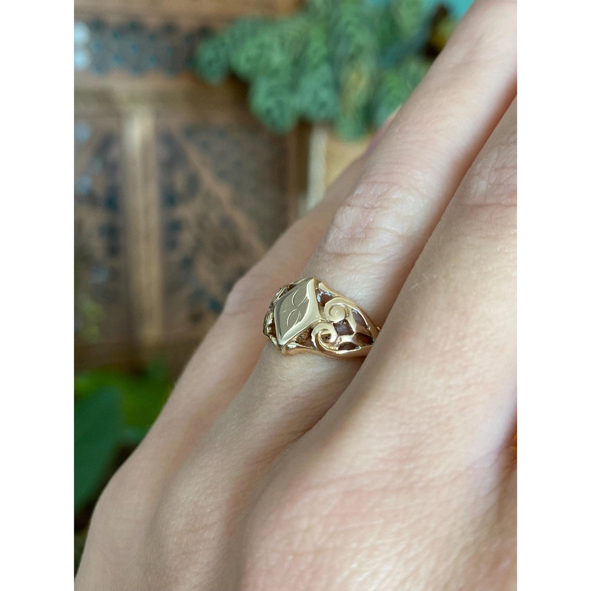 Vintage Solid 10k Rosey Gold Engraved Signet Ring - Size 4.5