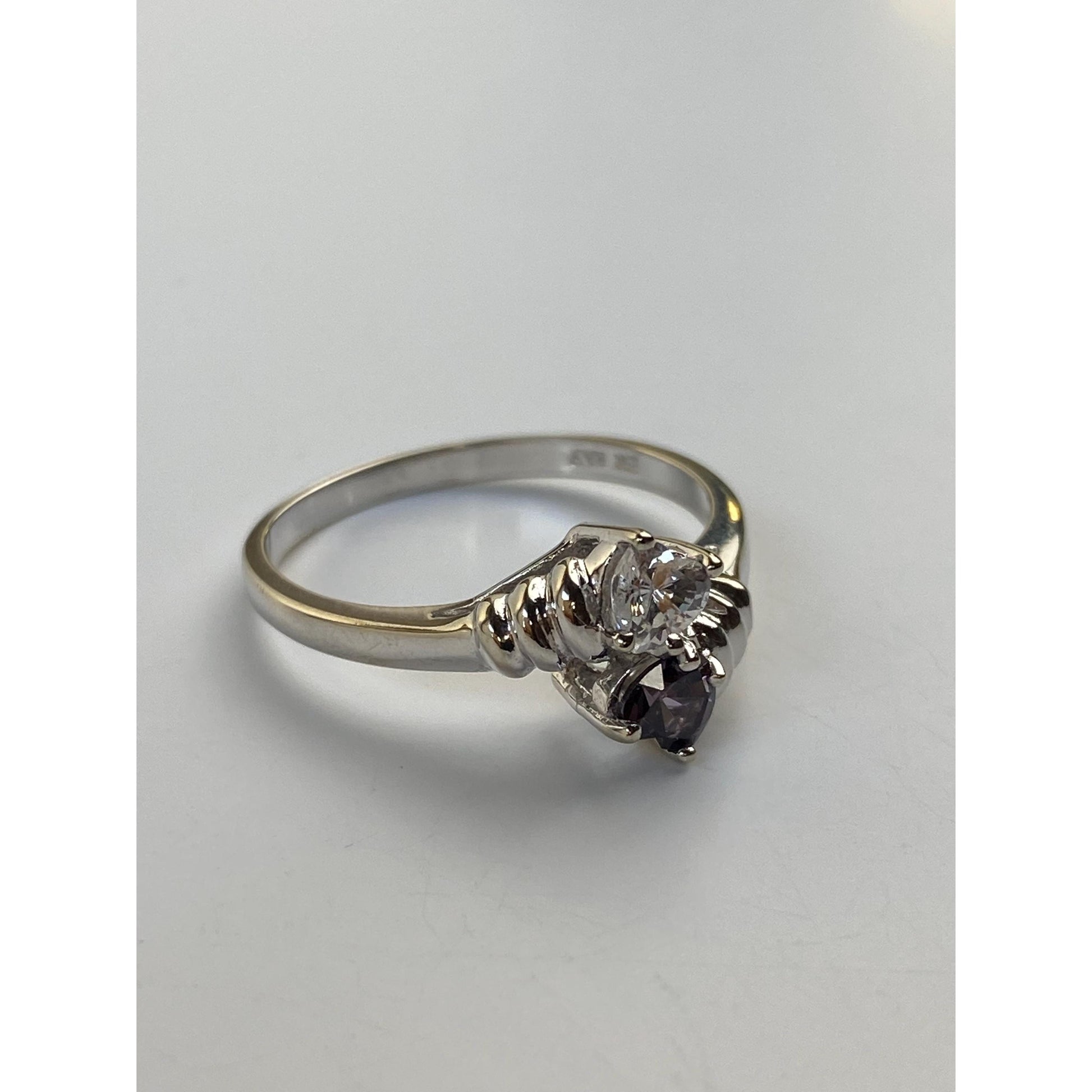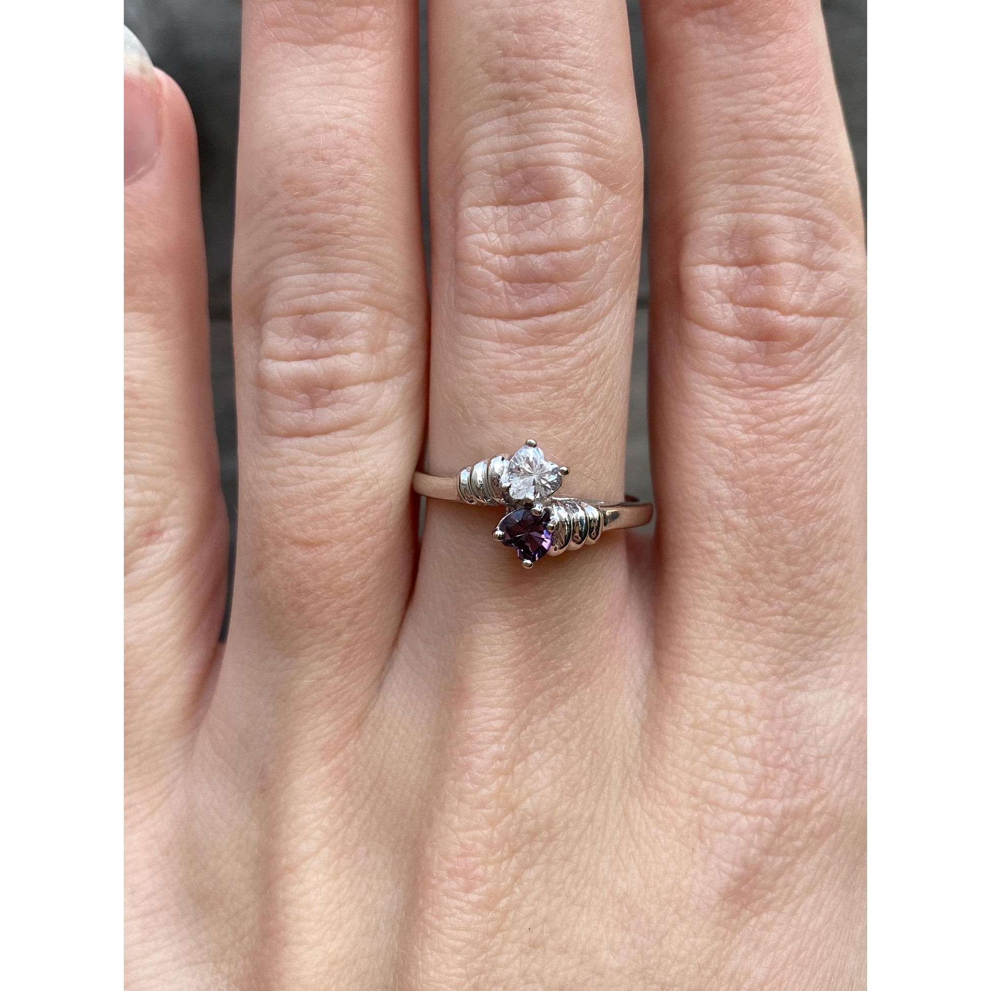 Vintage Solid 10k White Gold Amethyst Clear Cubic Zirconia Twist Ring - Size 7.75