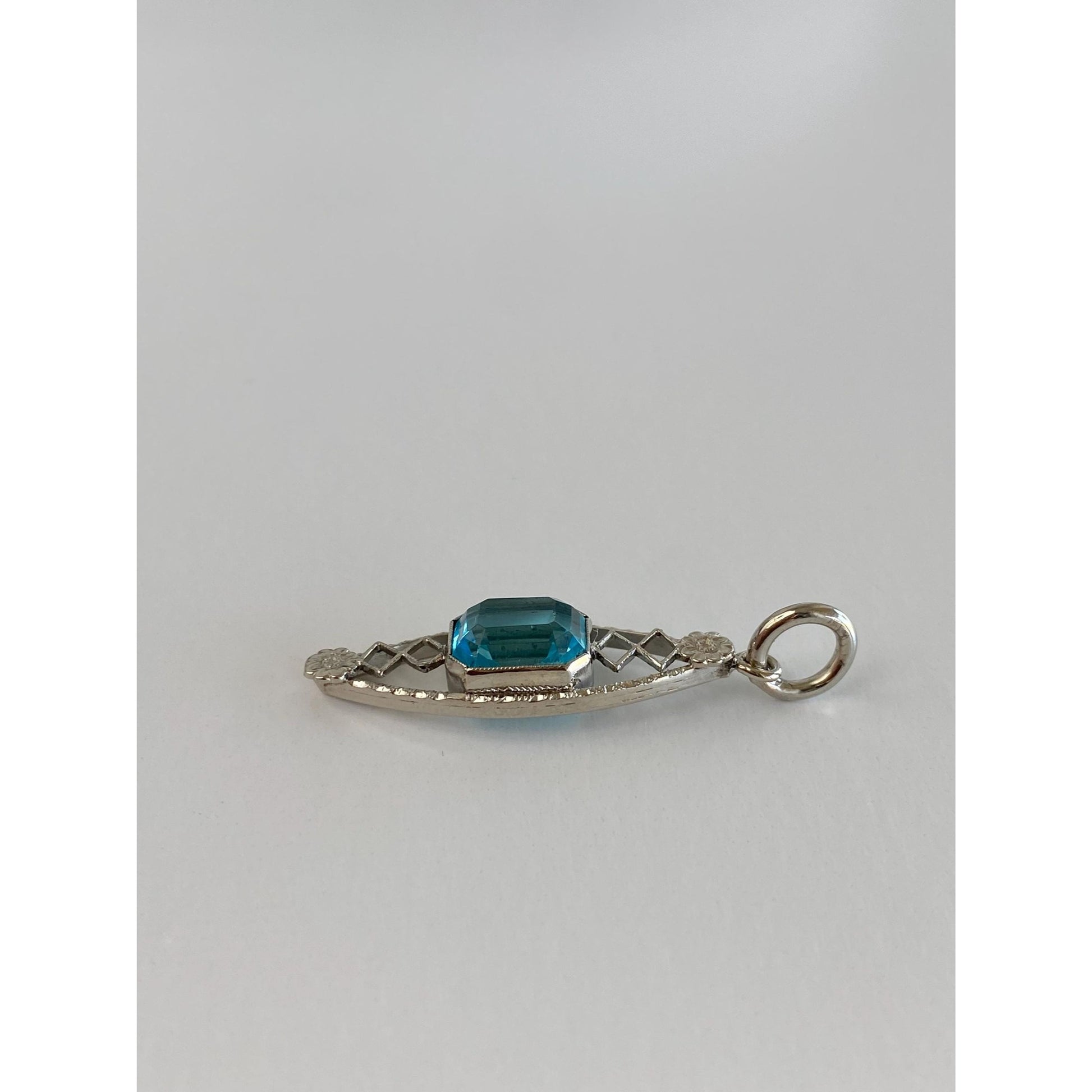 Vintage Solid 10k White Gold Blue Cubic Zirconia Art Deco Charm