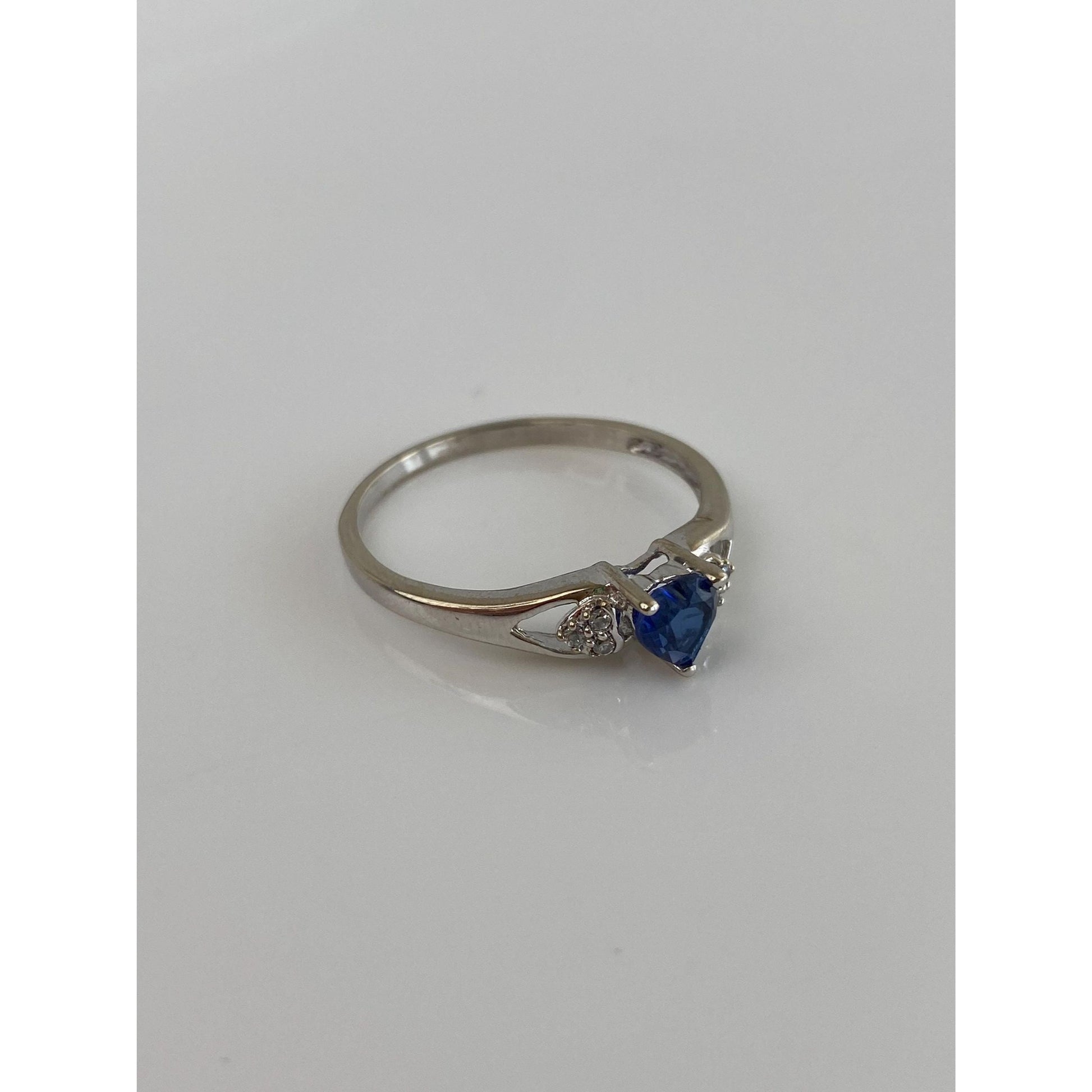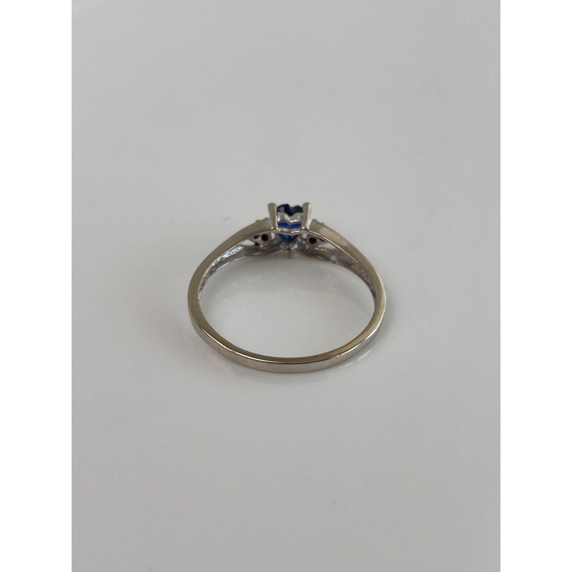 Vintage Solid 10k White Gold Blue Sapphire Heart Clear Cubic Zirconia Ring - Size 10.75