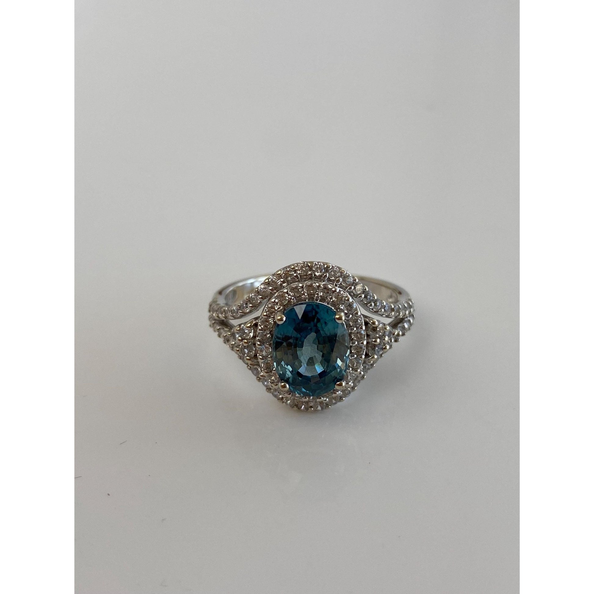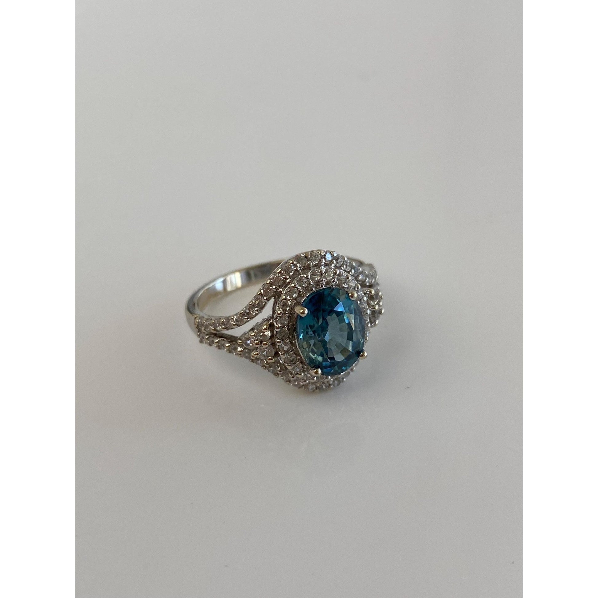 Vintage Solid 10k White Gold Clear Cubic Zirconia Light Blue Spinel Ring - Size 7.75