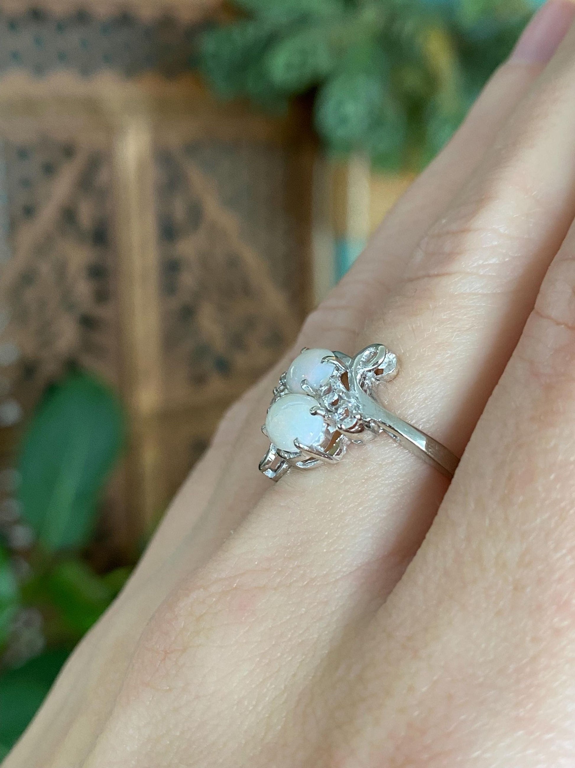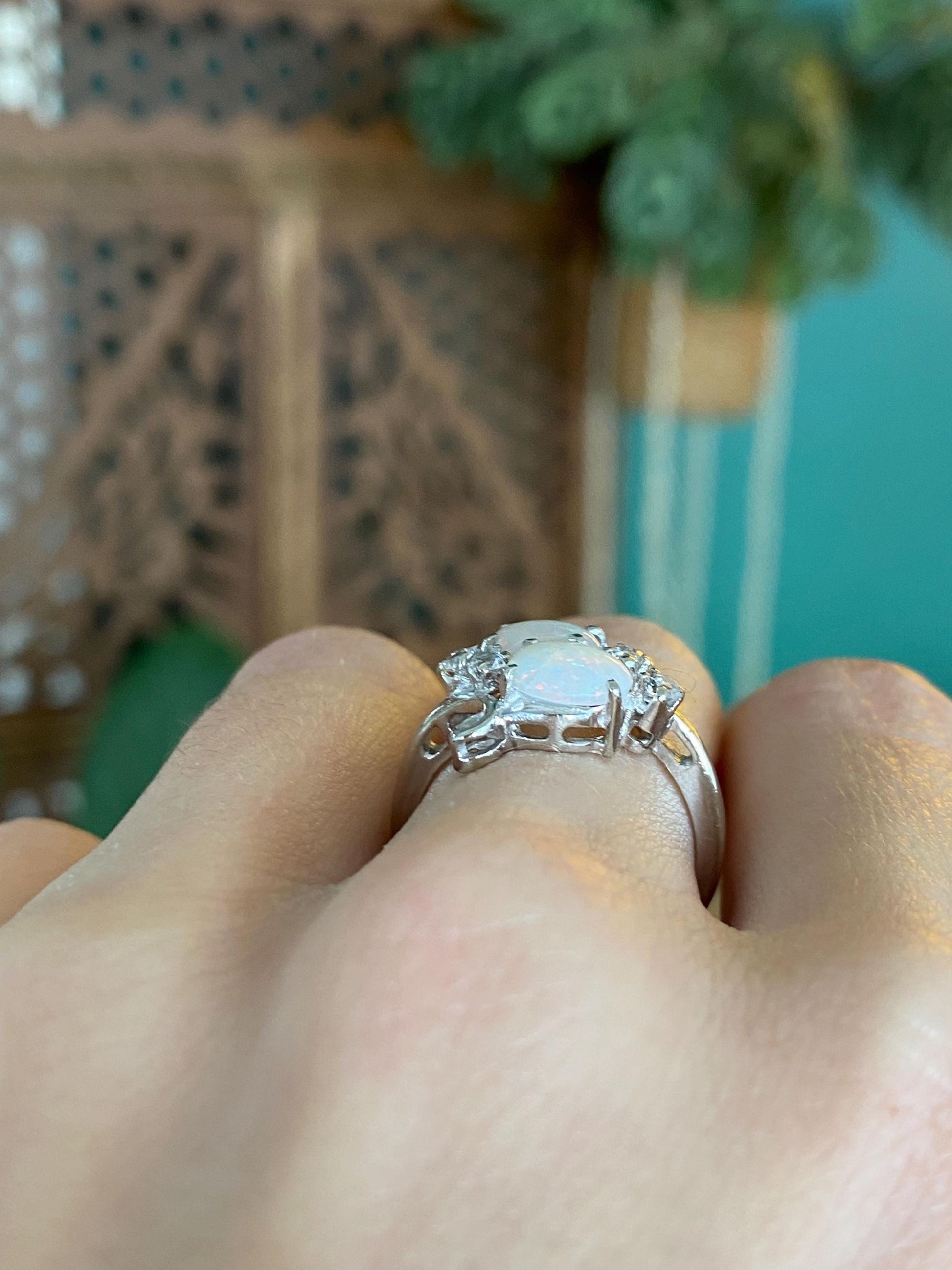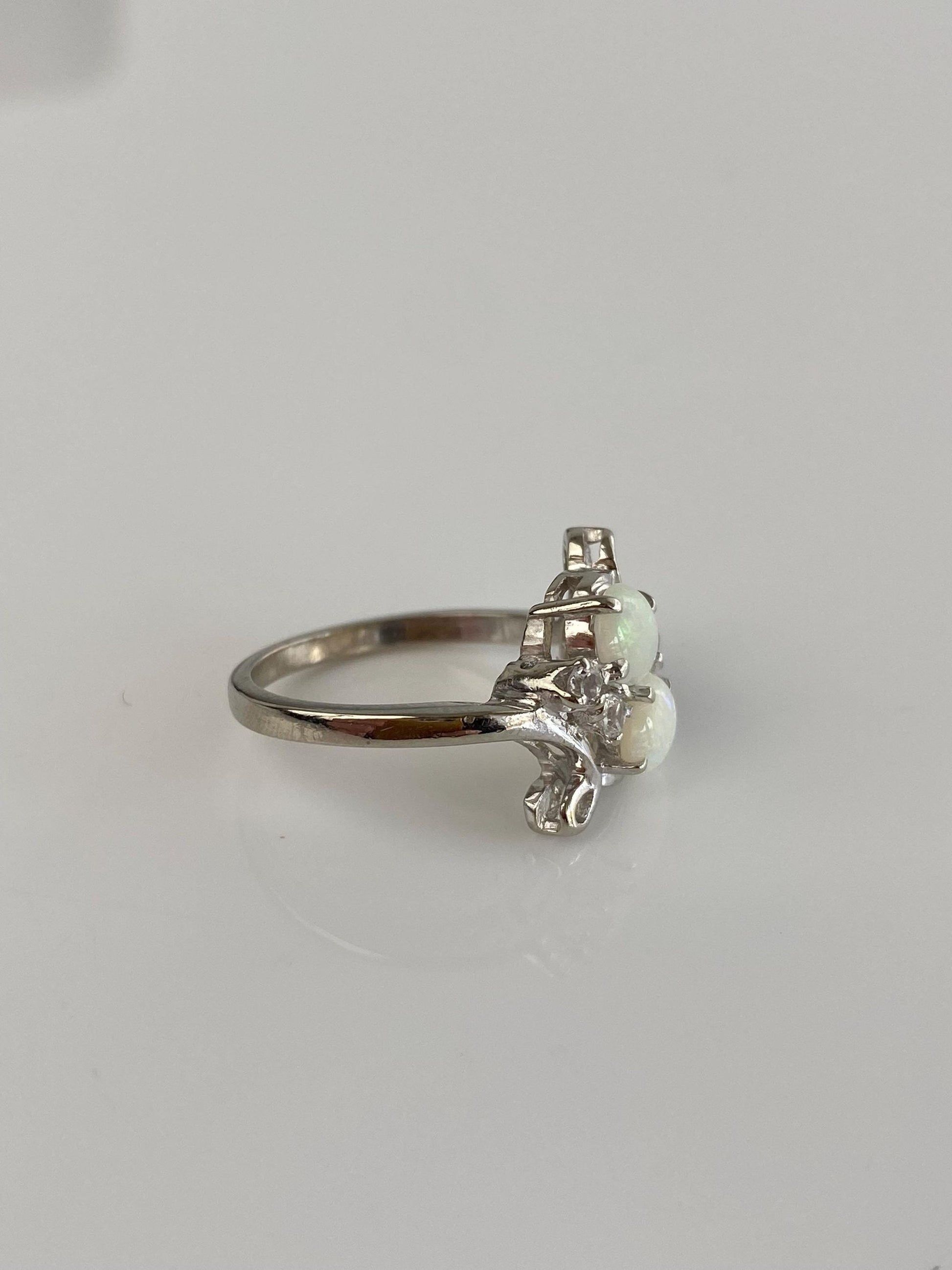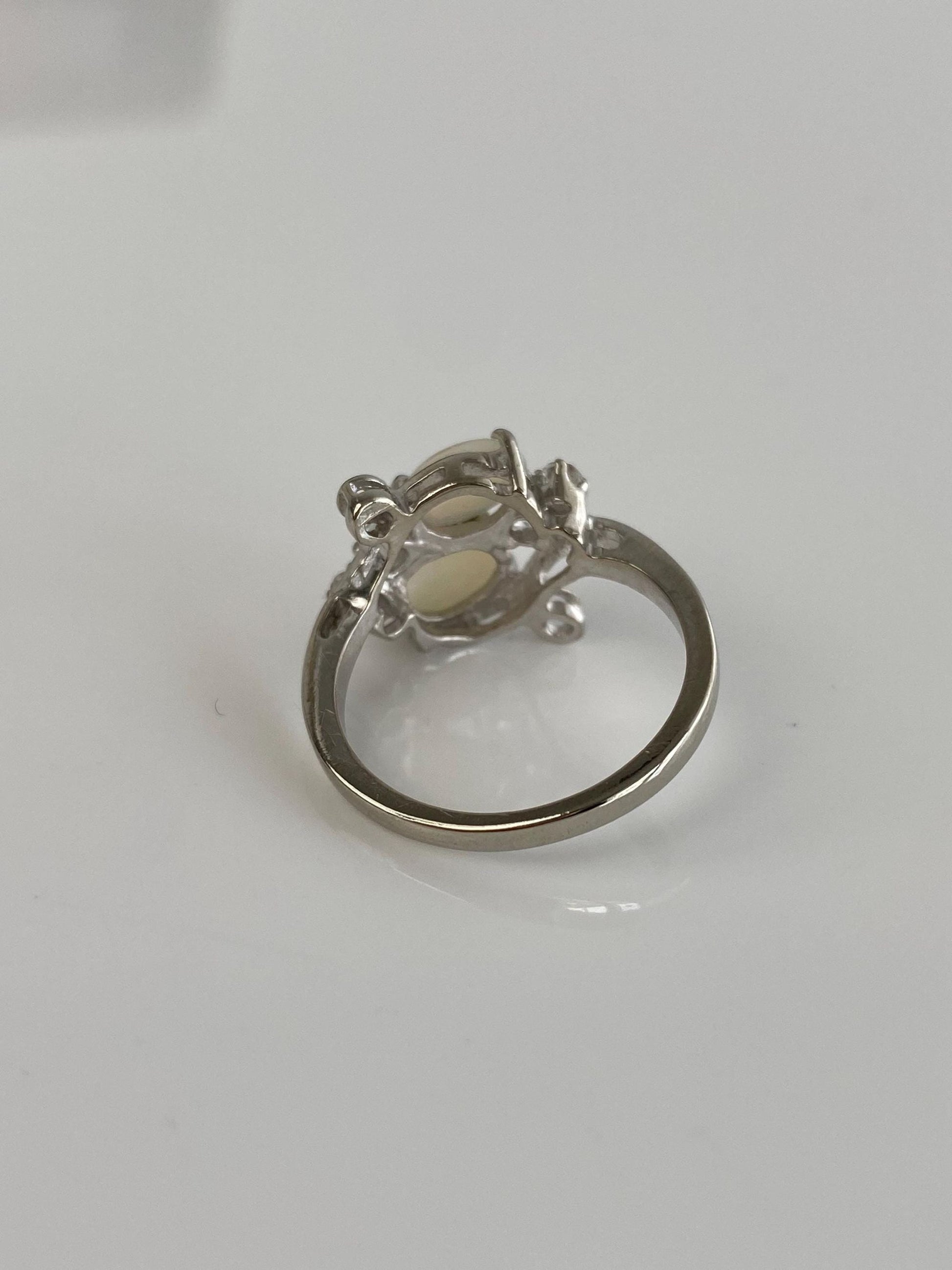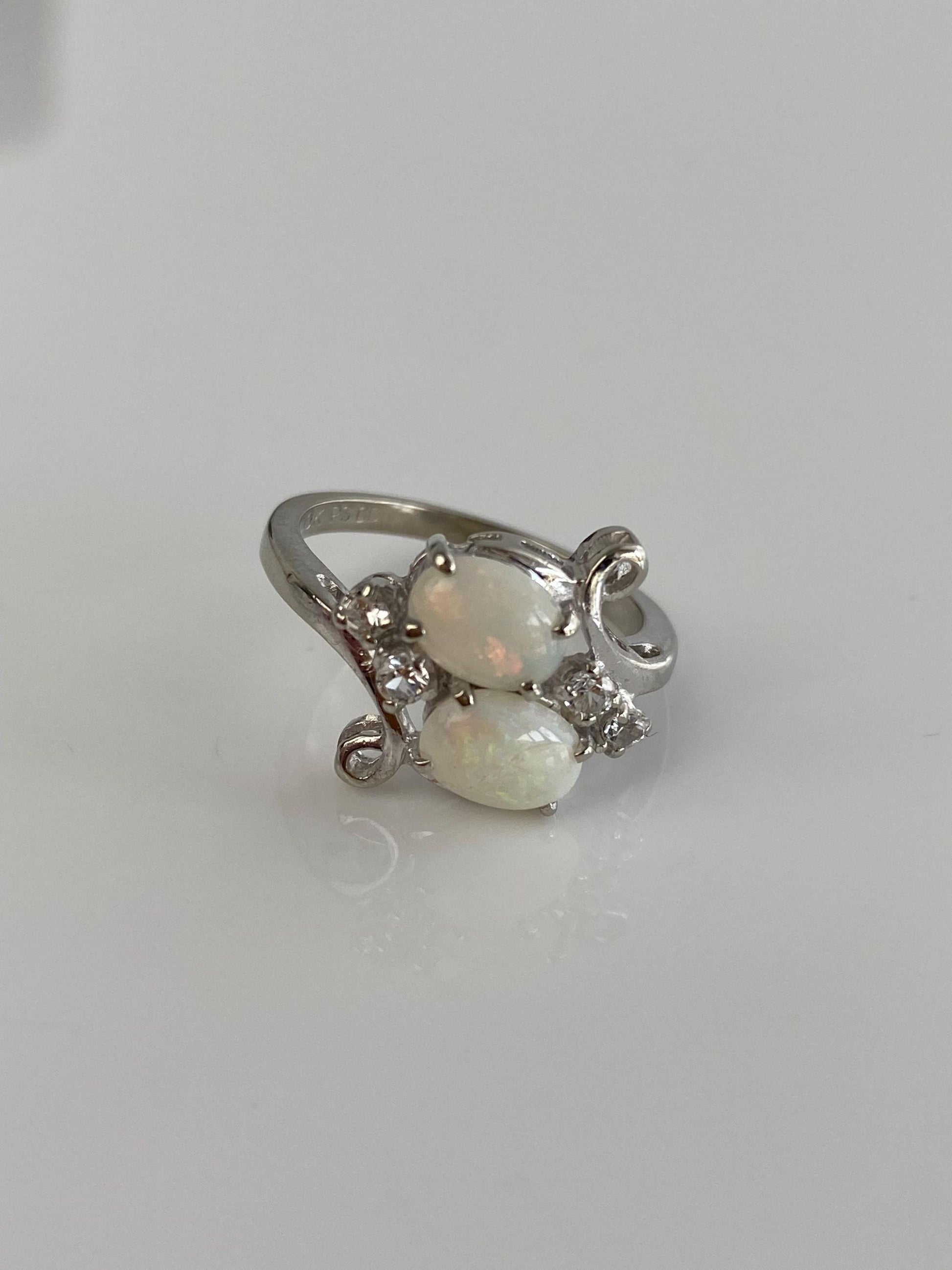 Vintage Solid 10k White Gold Clear Quartz Opal Ring - Size 6