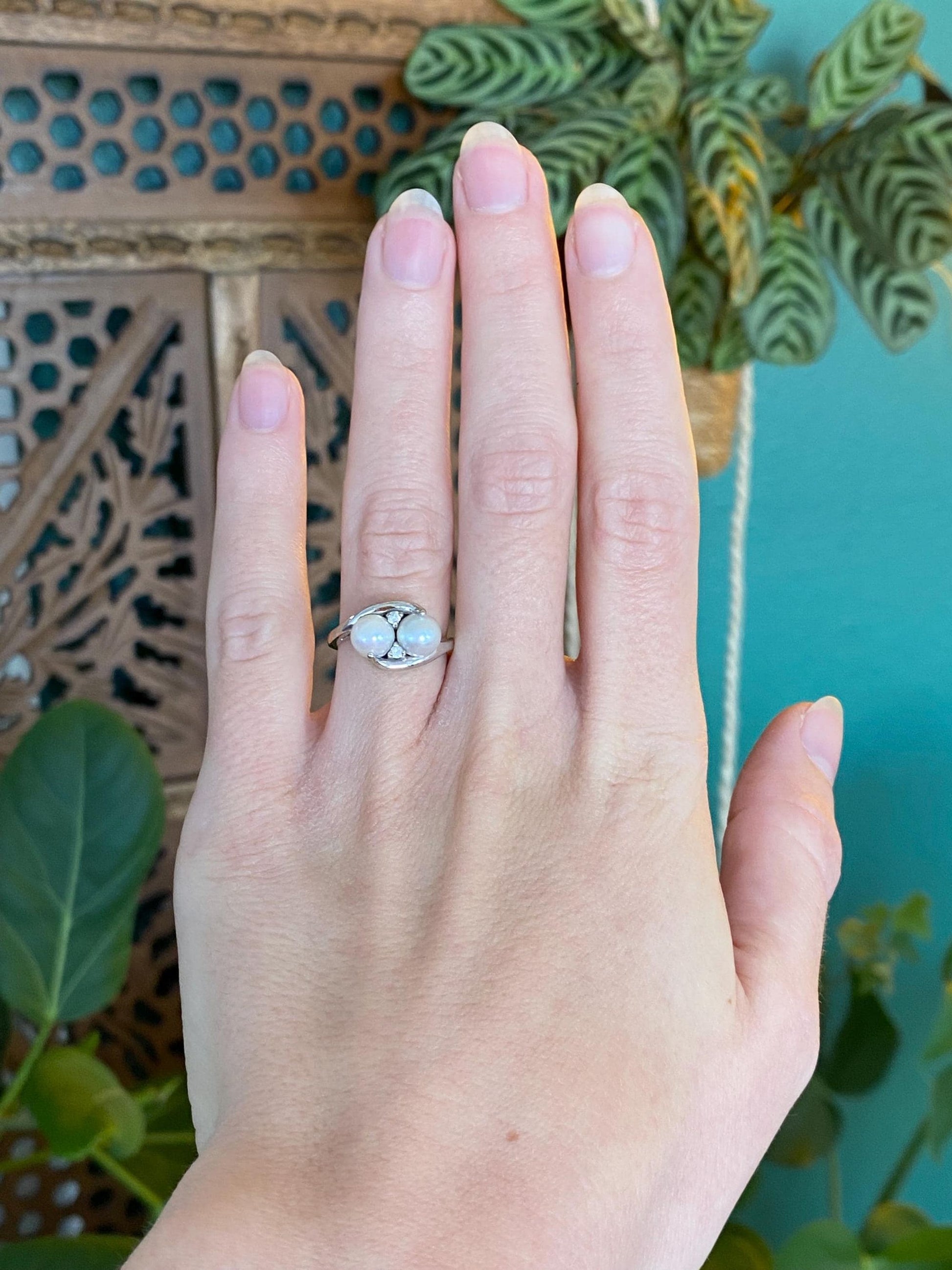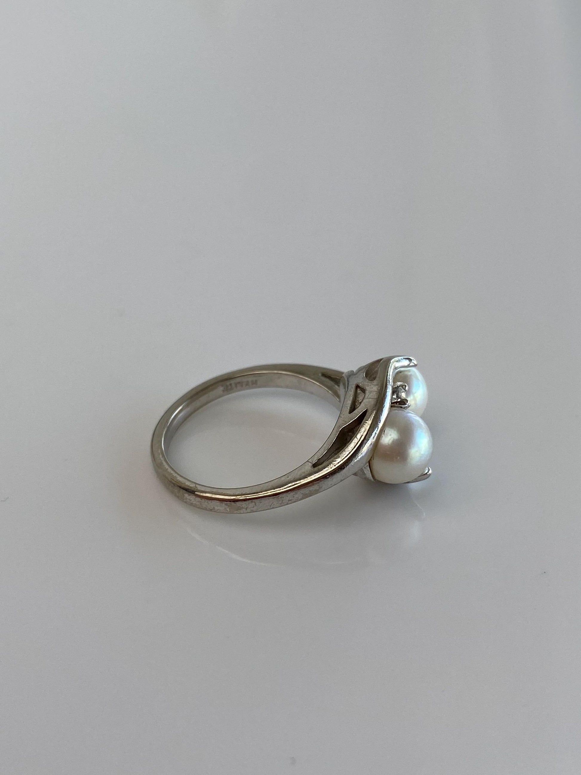 Vintage Solid 10k White Gold Clear Spinel Pearls Ring - Size 5.25