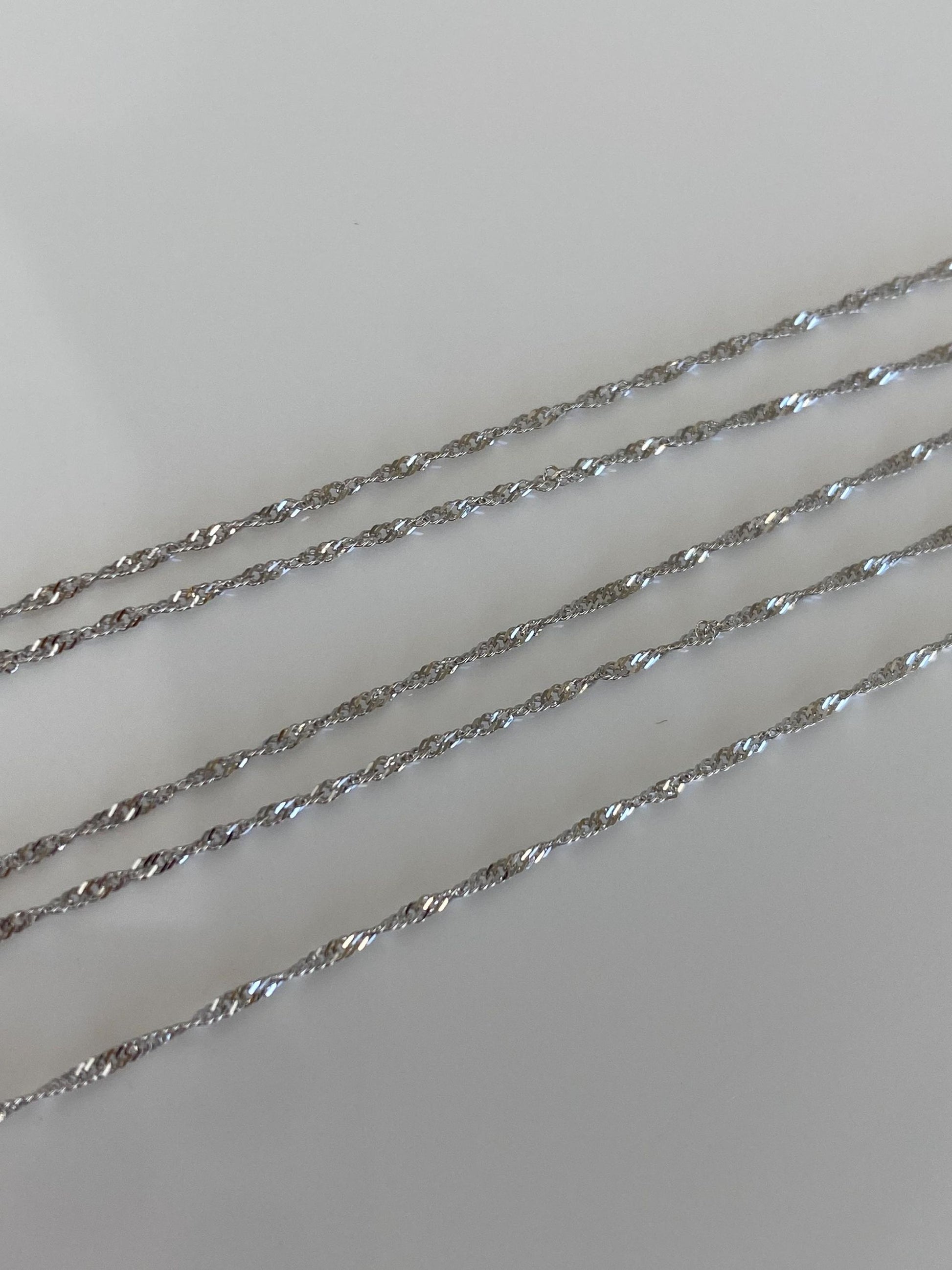 Vintage Solid 10k White Gold Dainty Twist Chain Necklace - 18 inches