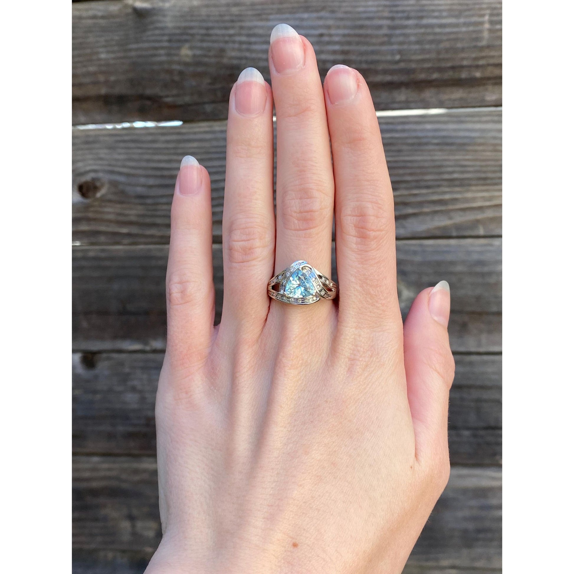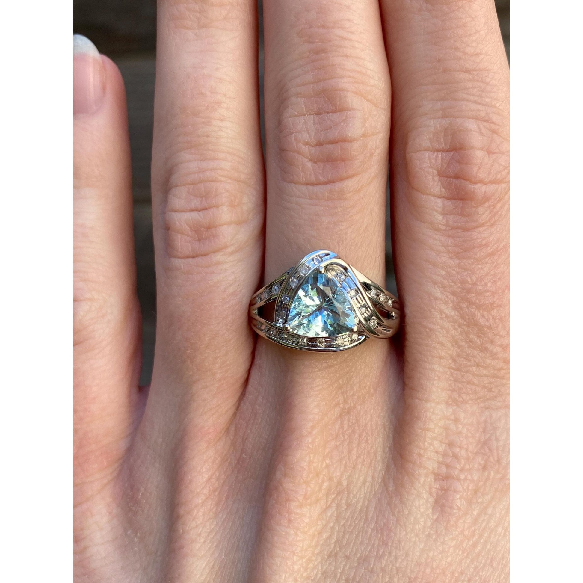Vintage Solid 10k White Gold Diamond Aquamarine Ring - Size 7.75