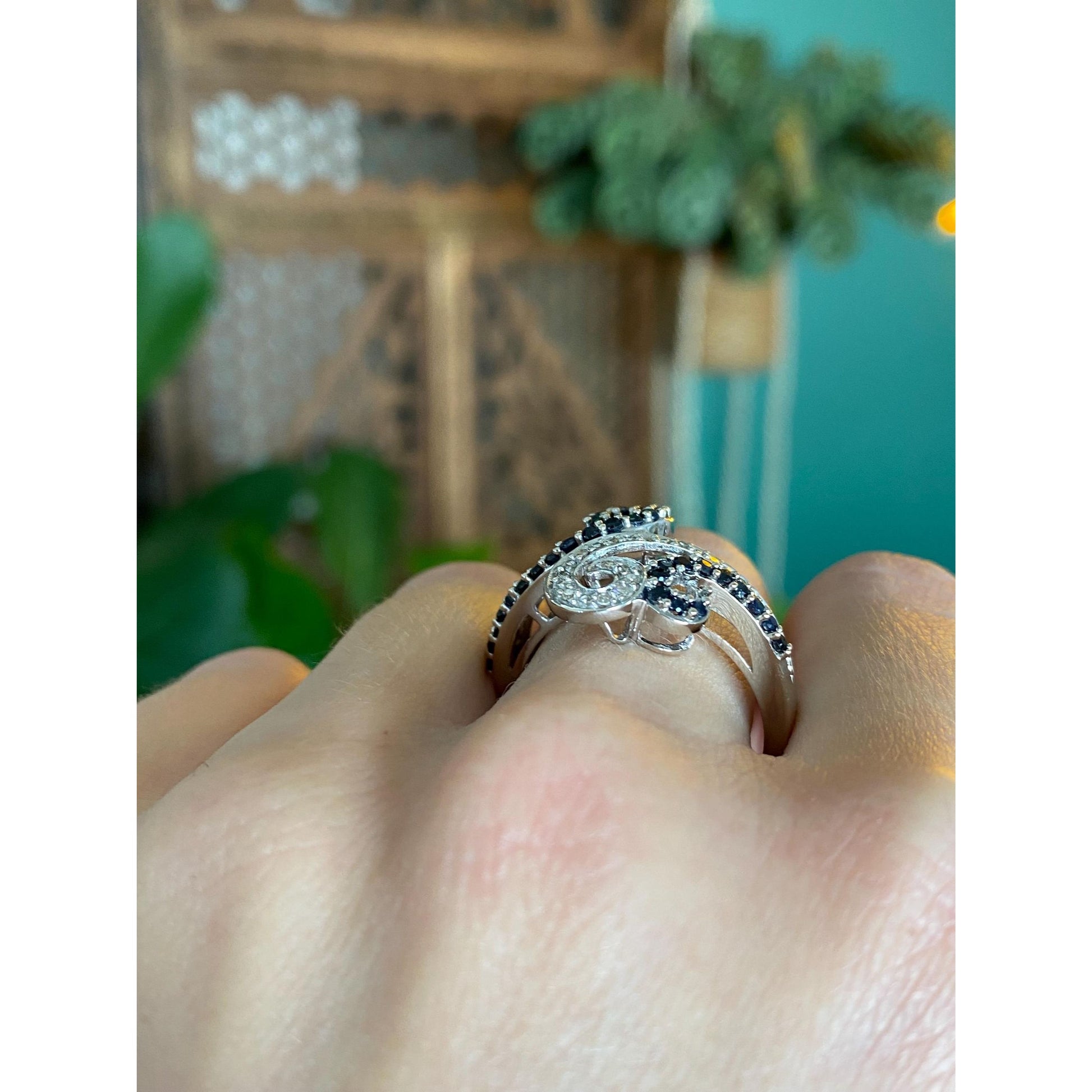 Vintage Solid 10k White Gold Diamond Blue Sapphire Ring Band - Size 8.75