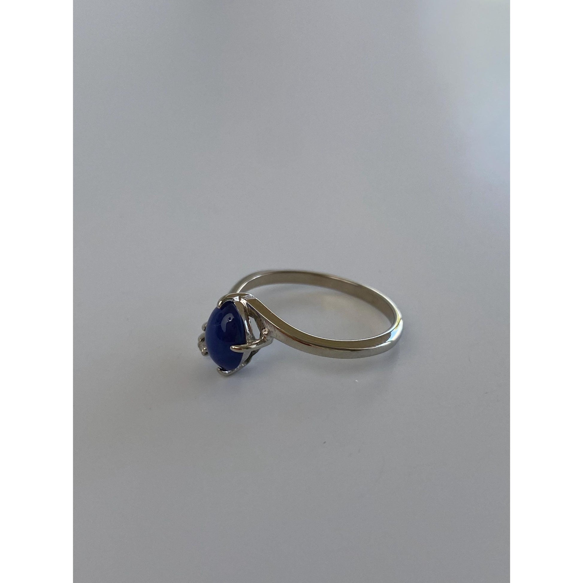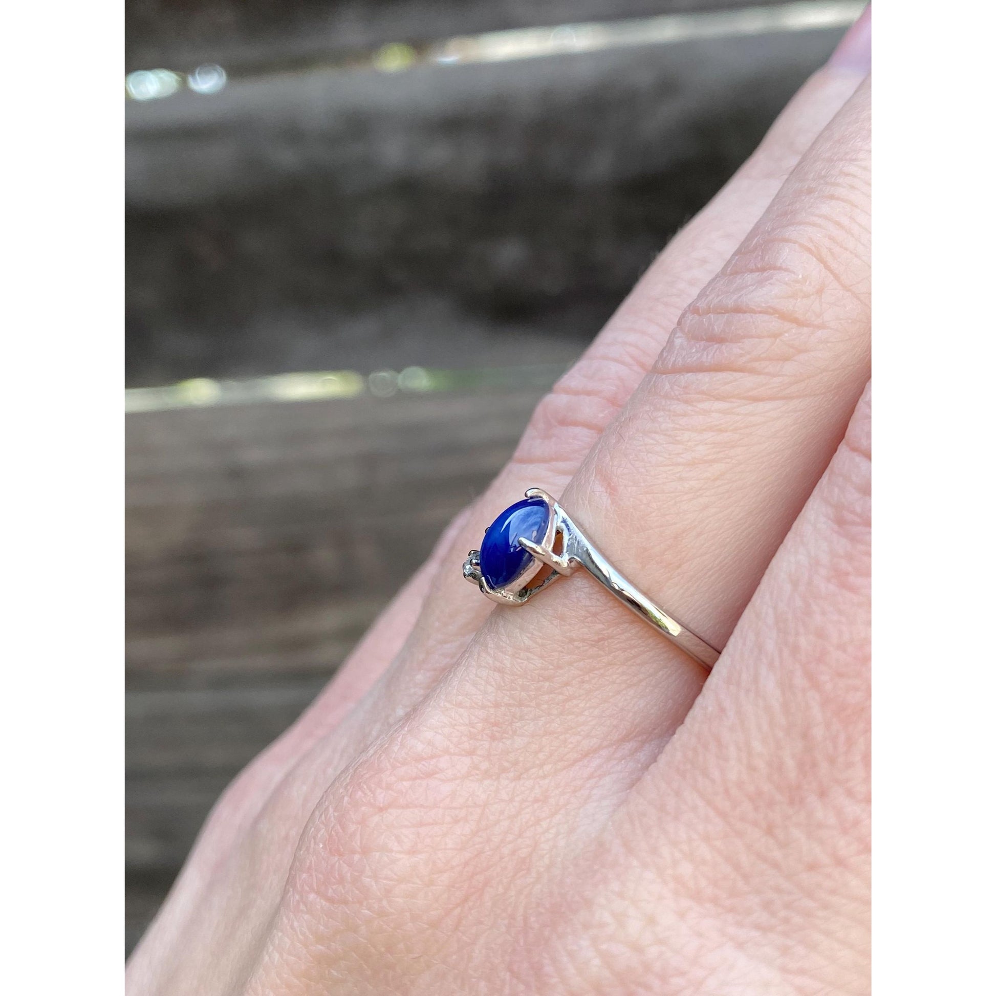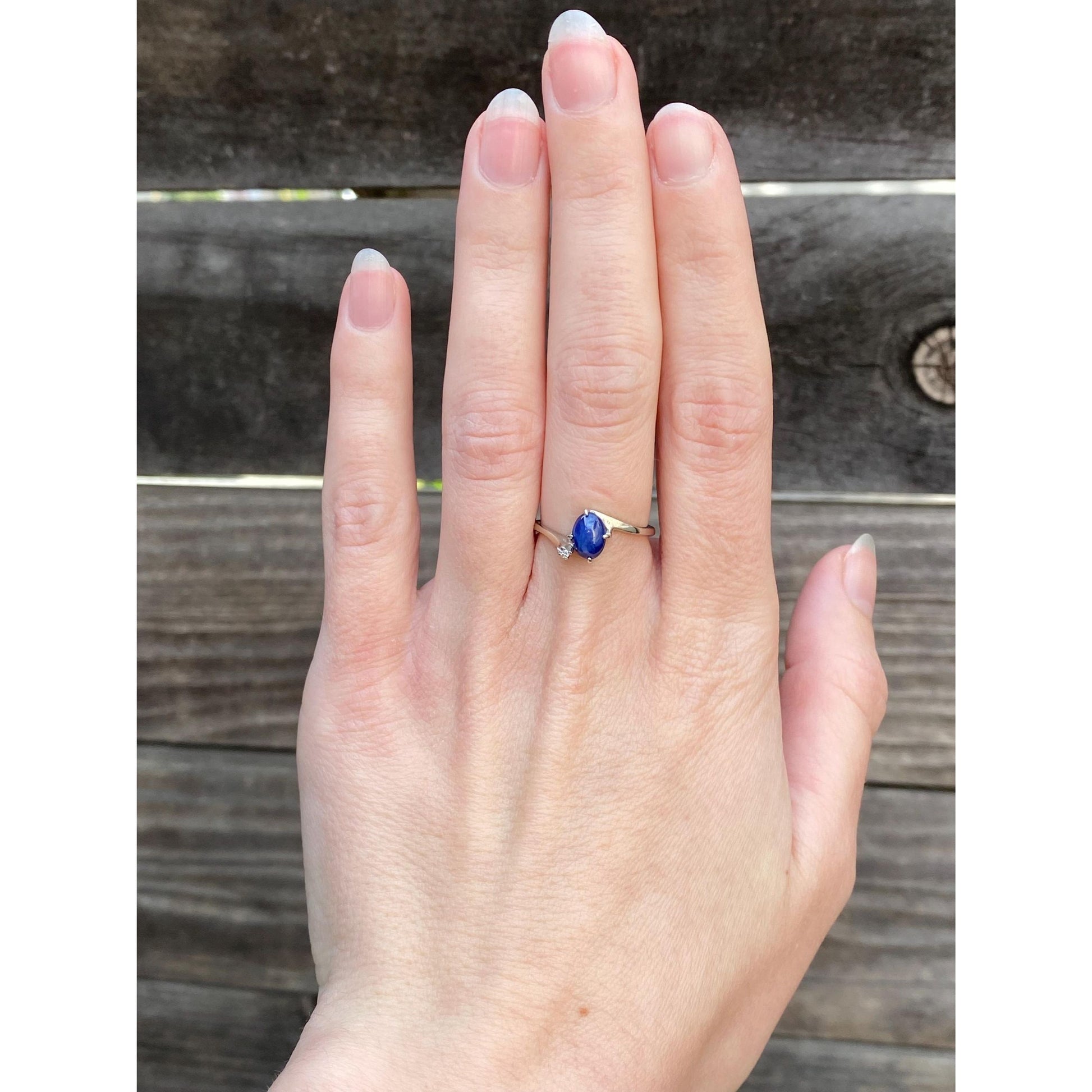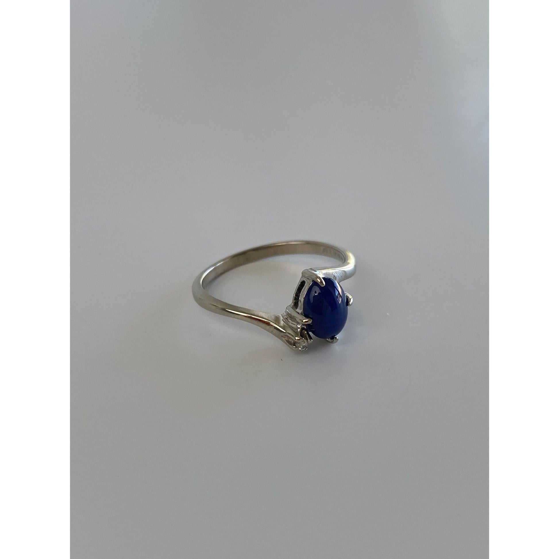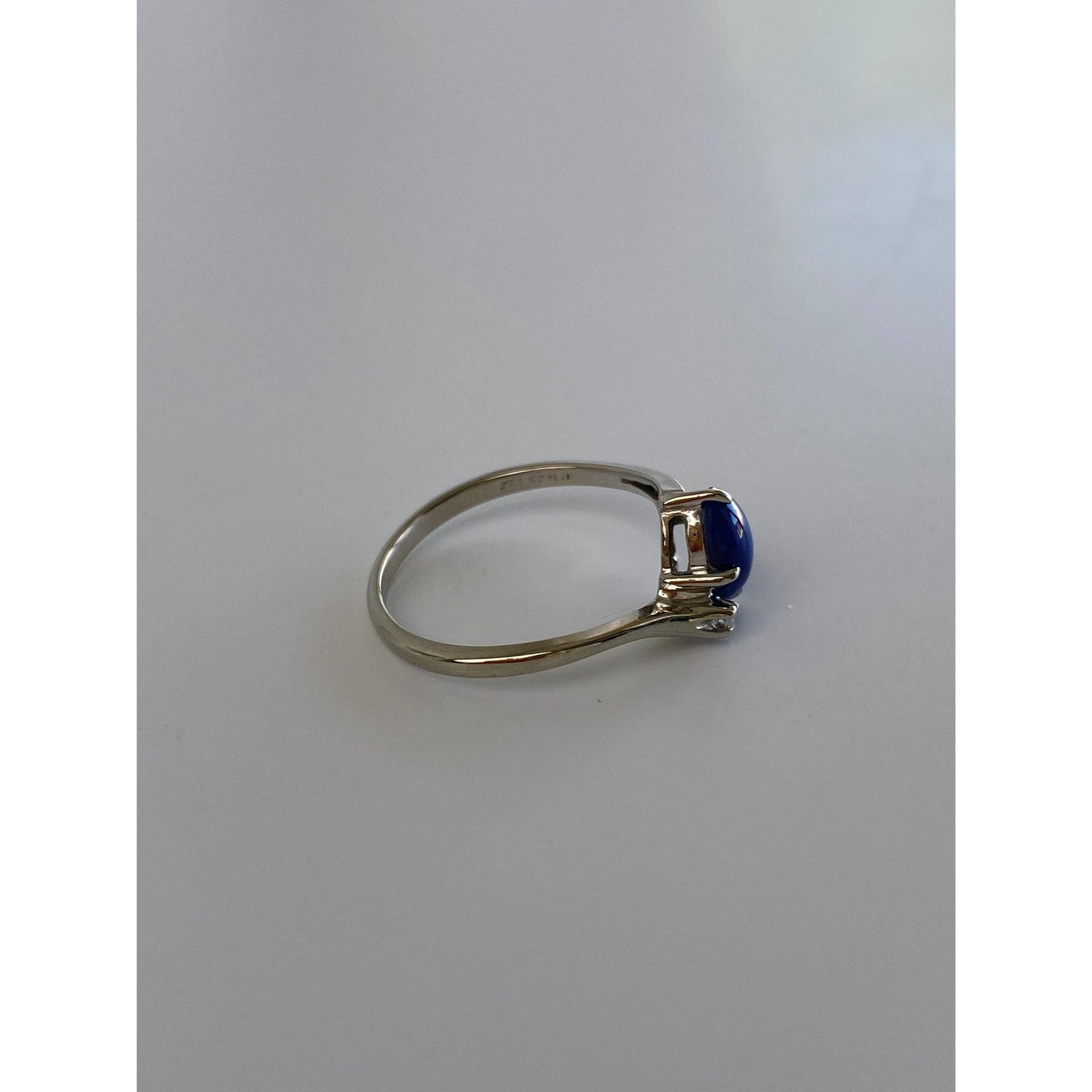 Vintage Solid 10k White Gold Diamond Blue Star Sapphire Ring - Size 6.25