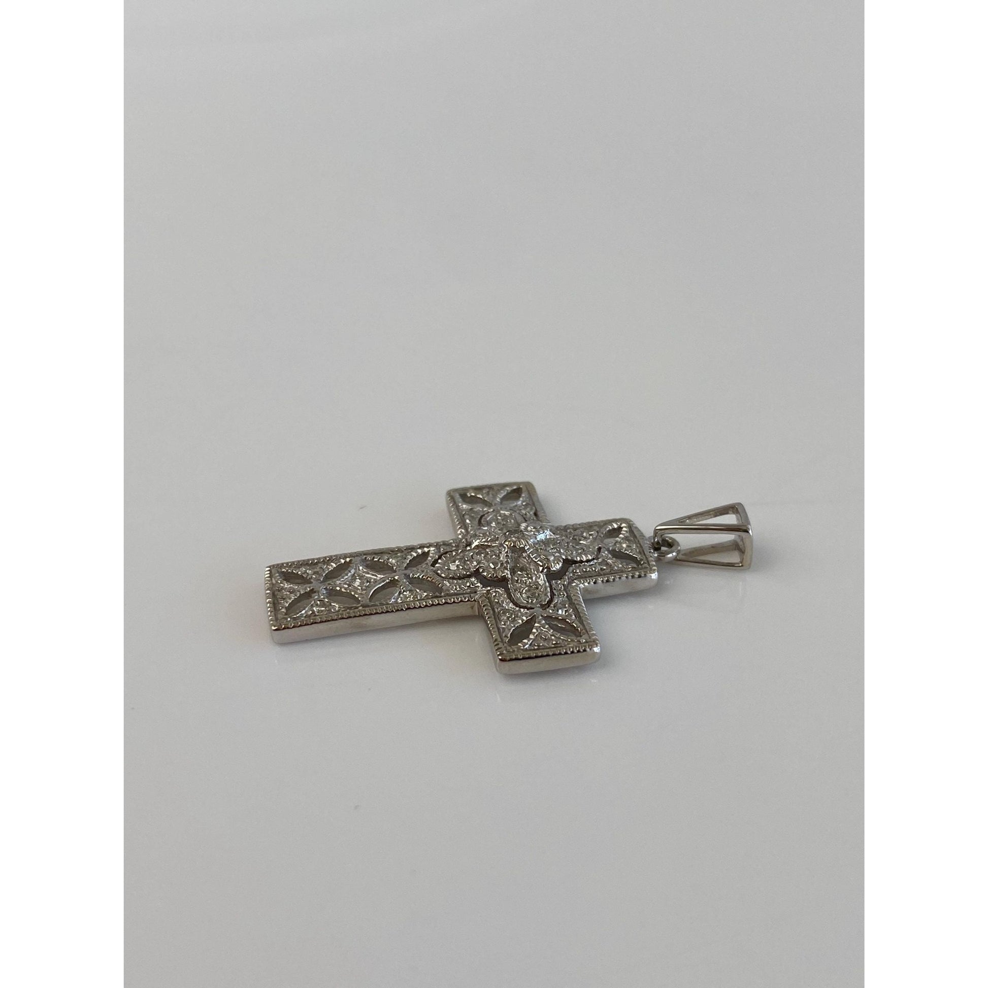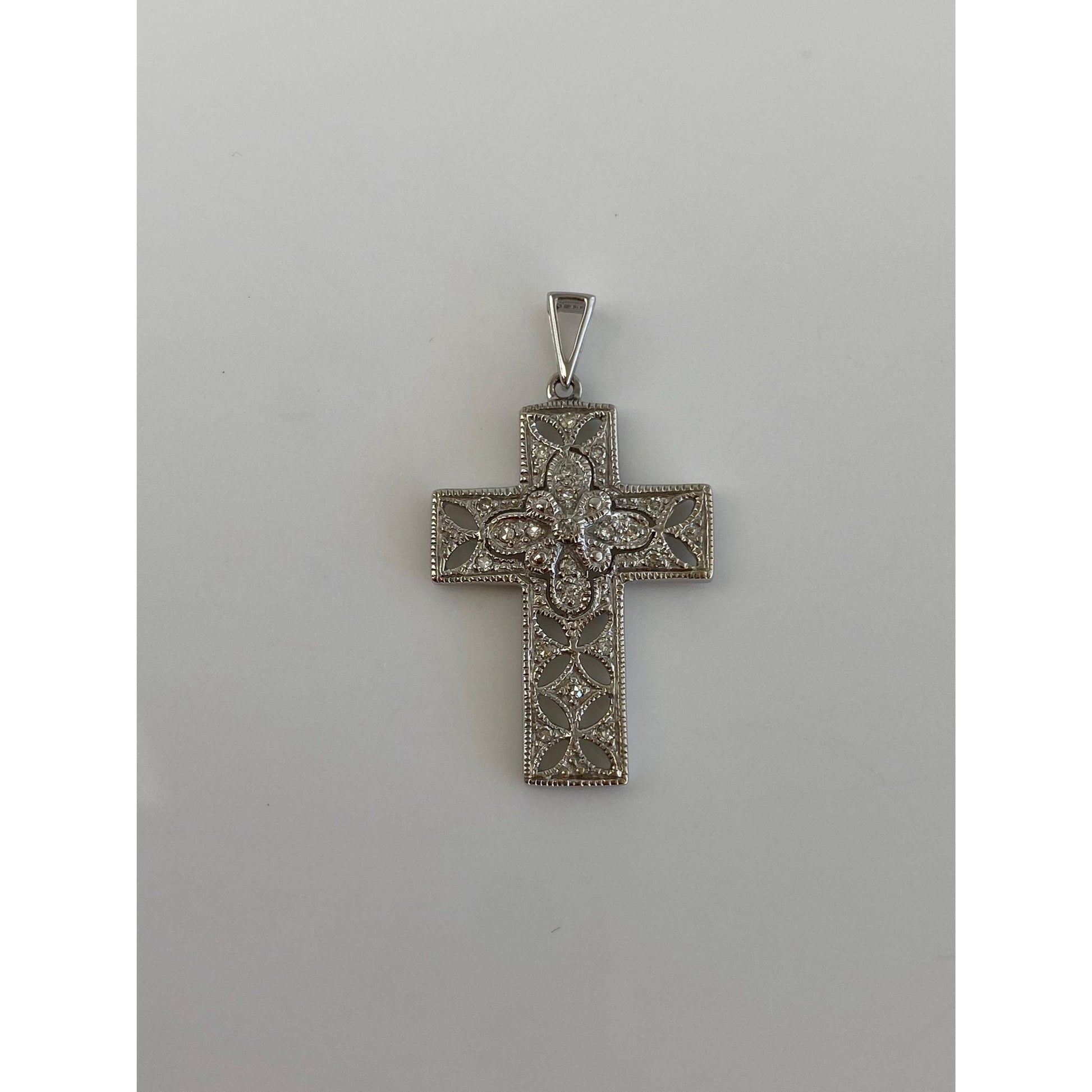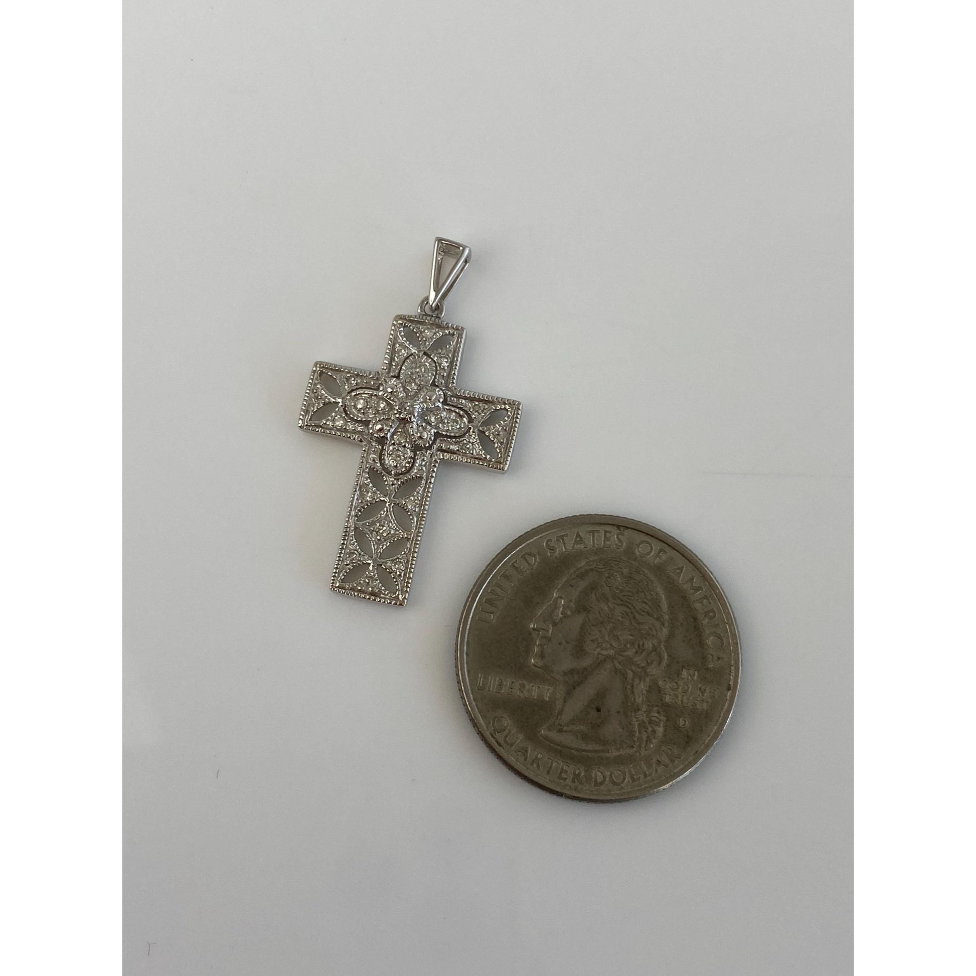 Vintage Solid 10k White Gold Diamond Cross Charm
