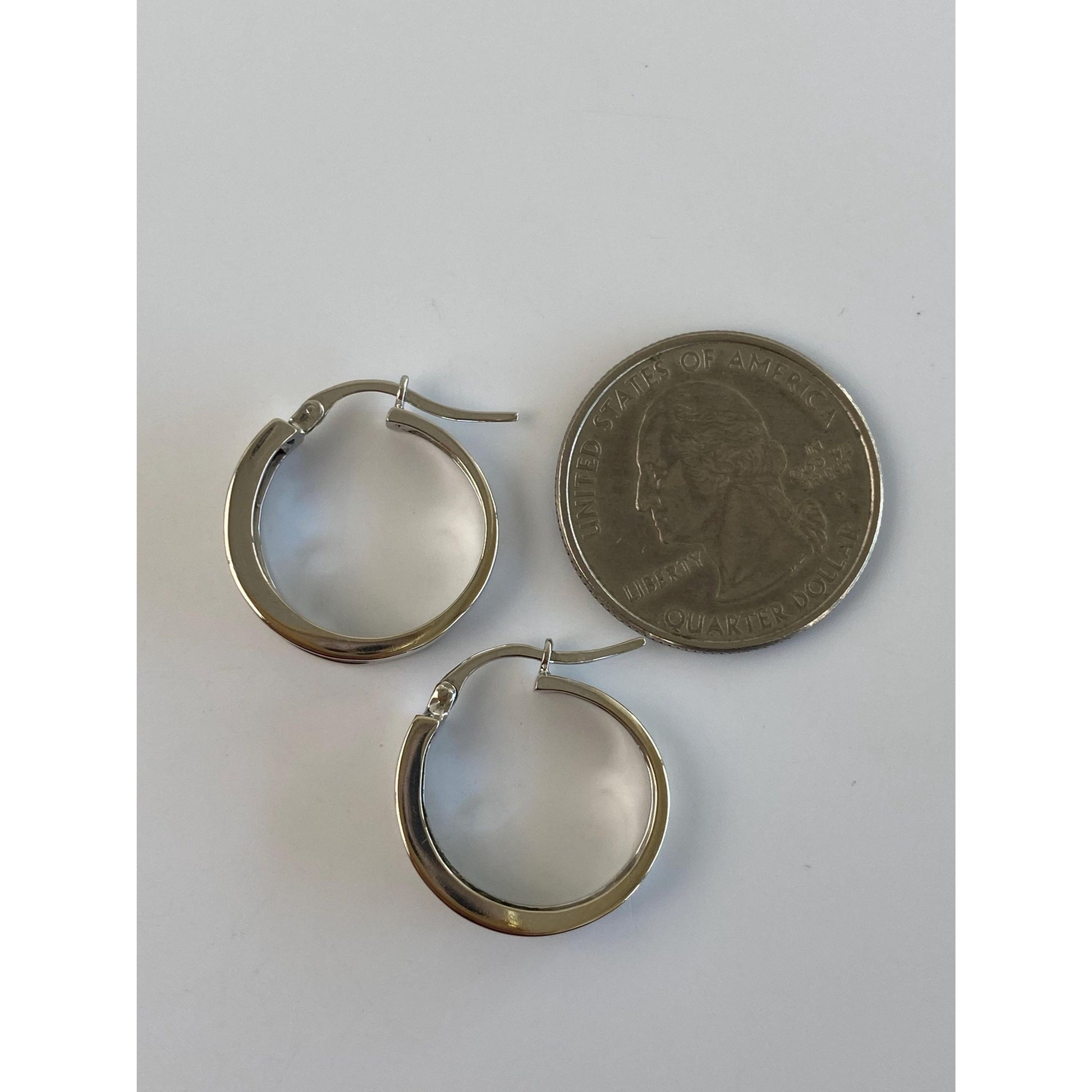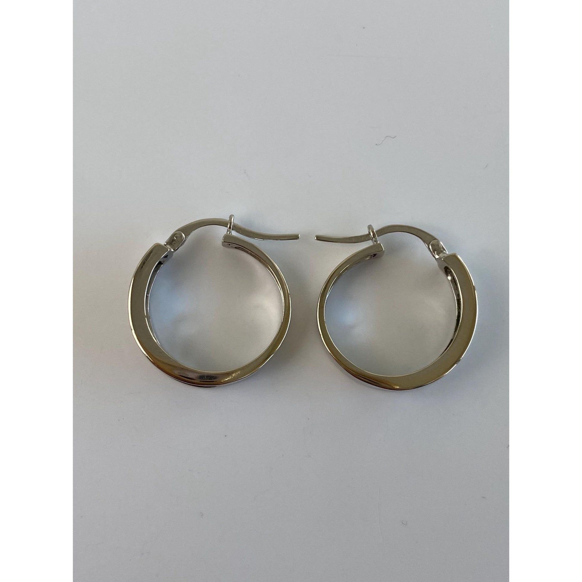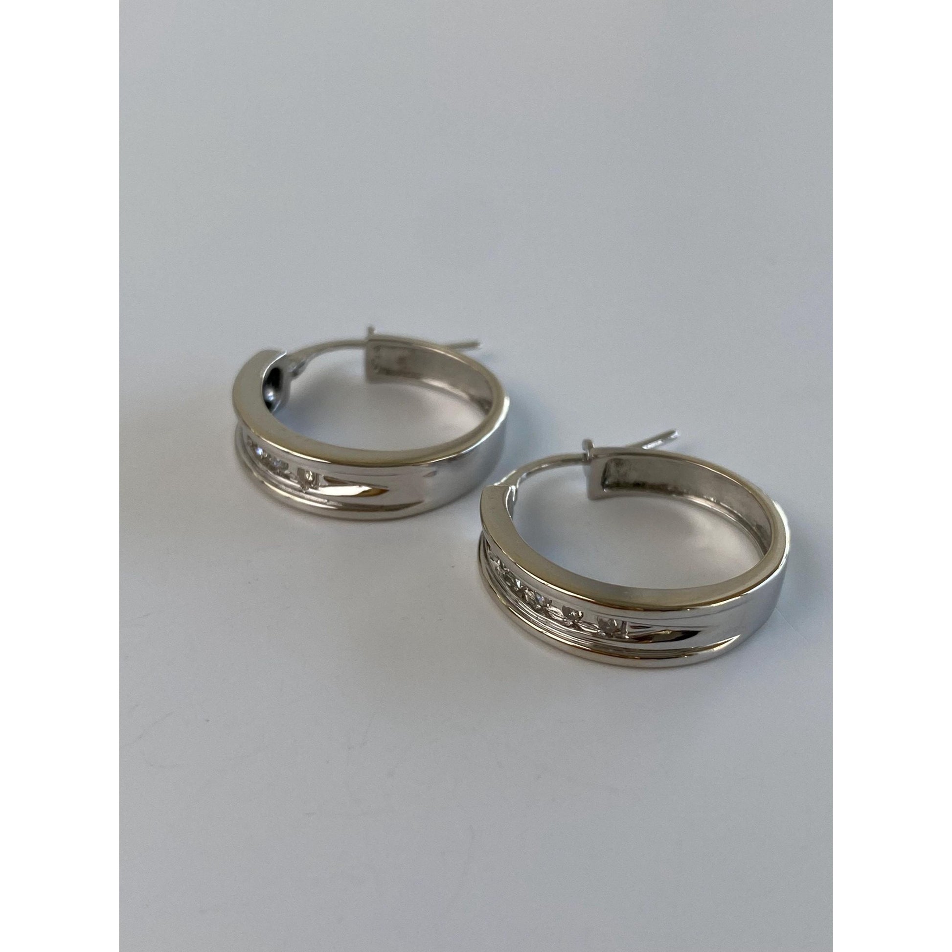 Vintage Solid 10k White Gold Diamond Hoop Earrings