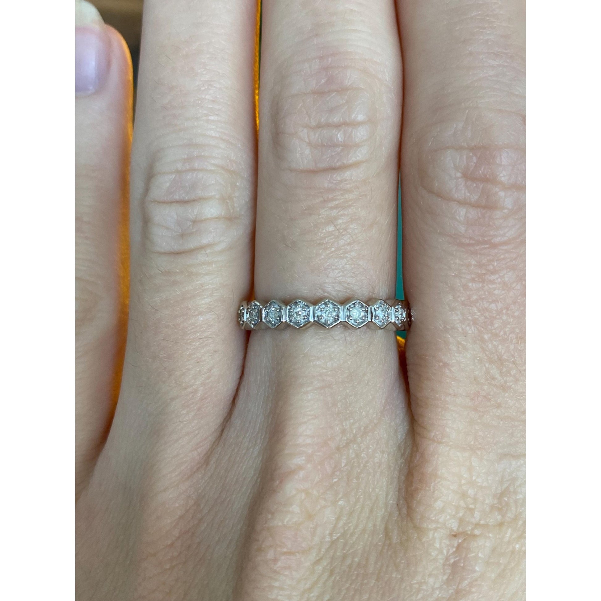 Vintage Solid 10k White Gold Diamond Ring Band - Size 6.75