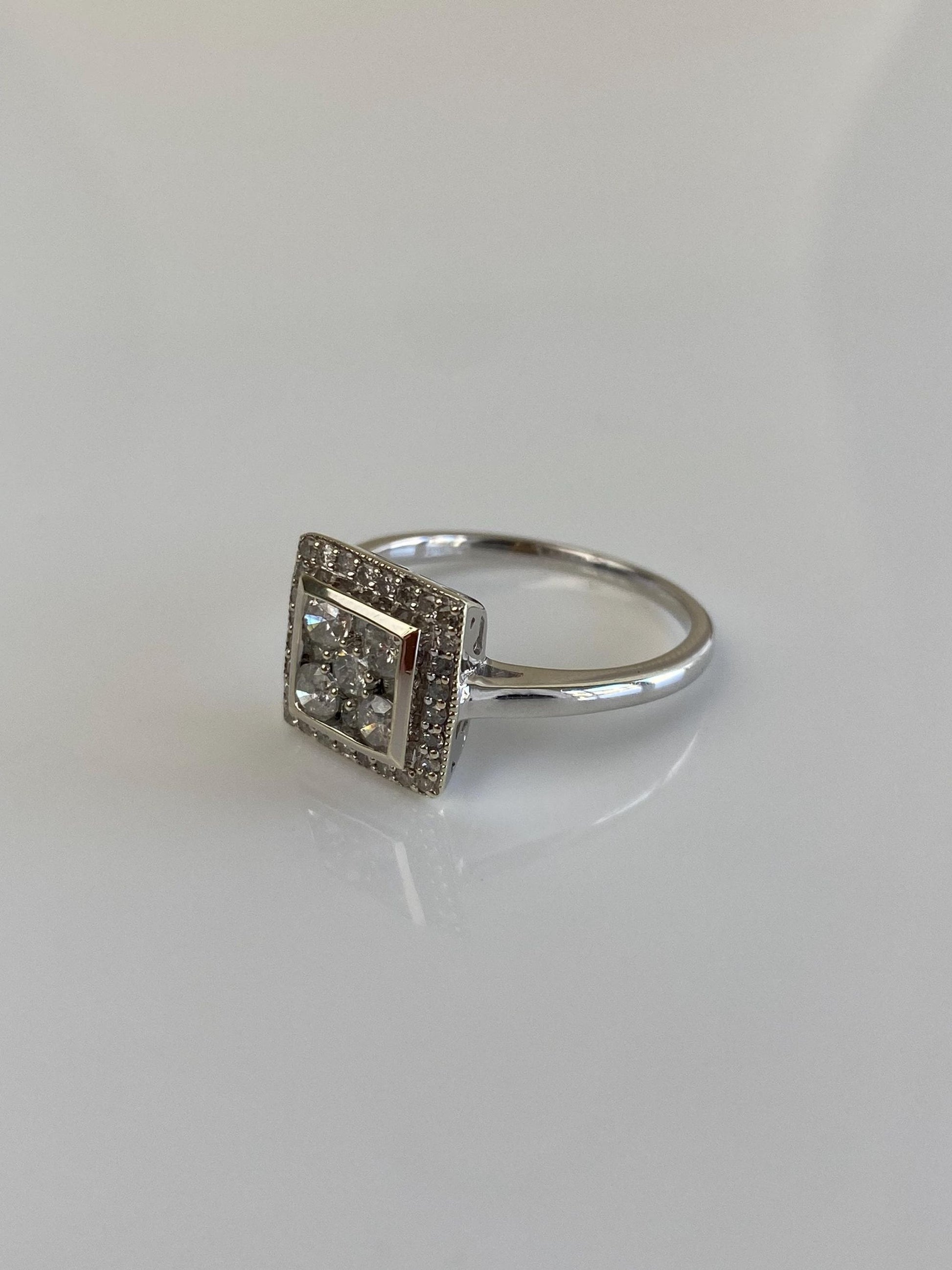 Vintage Solid 10k White Gold Diamond Square Ring - Size 9