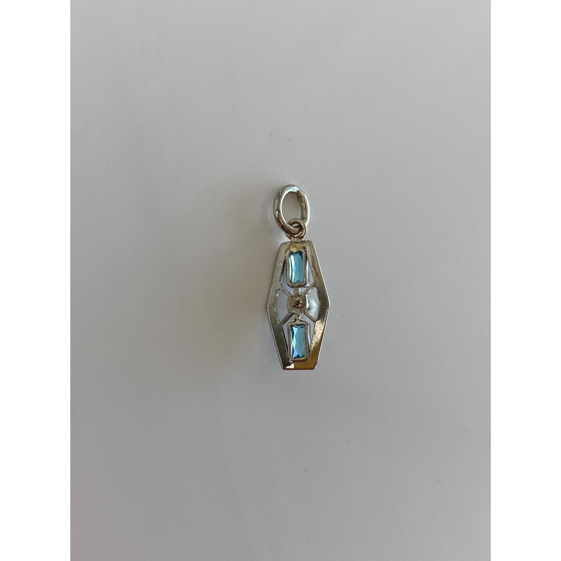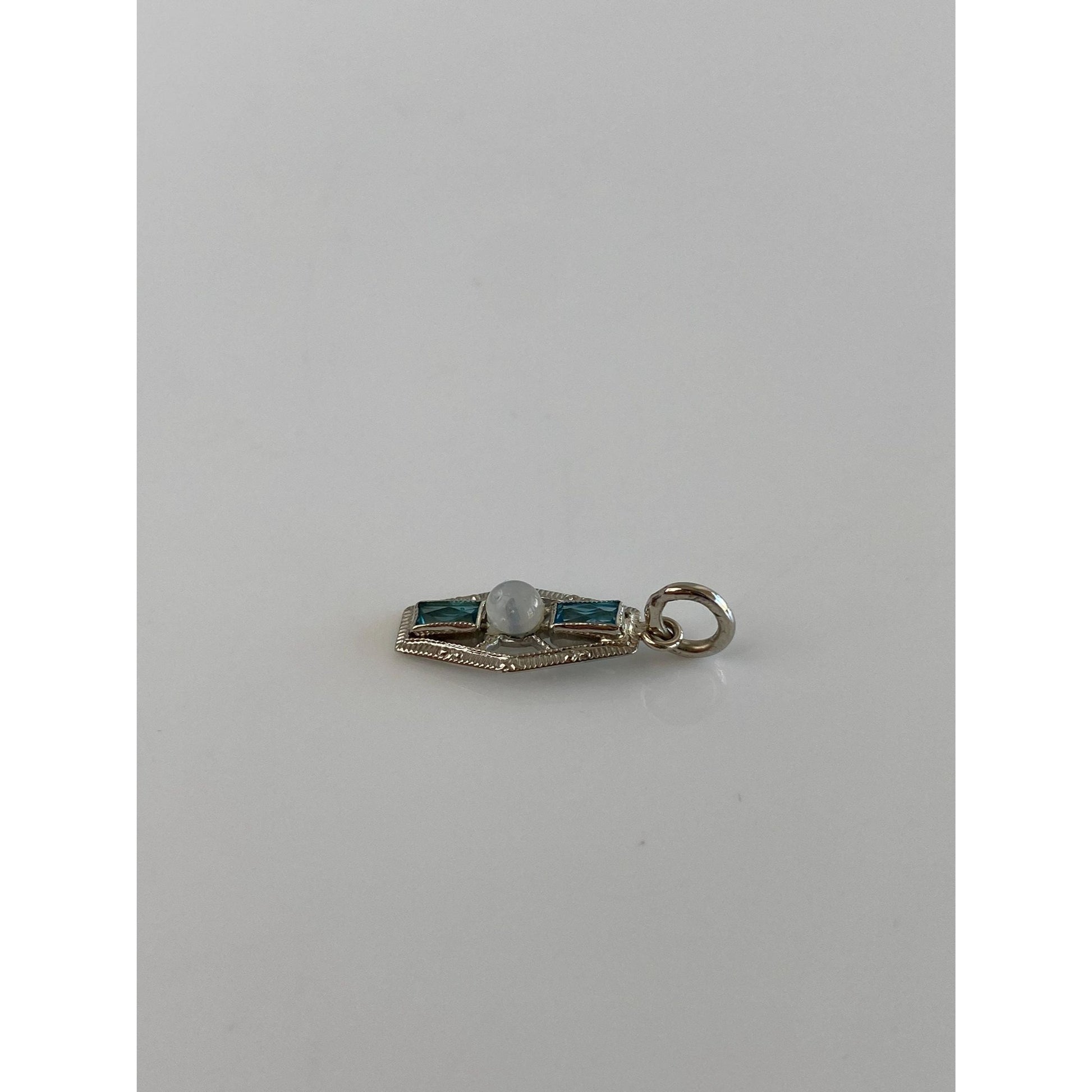 Vintage Solid 10k White Gold Light Blue Cubic Zirconia Clear Bead Charm