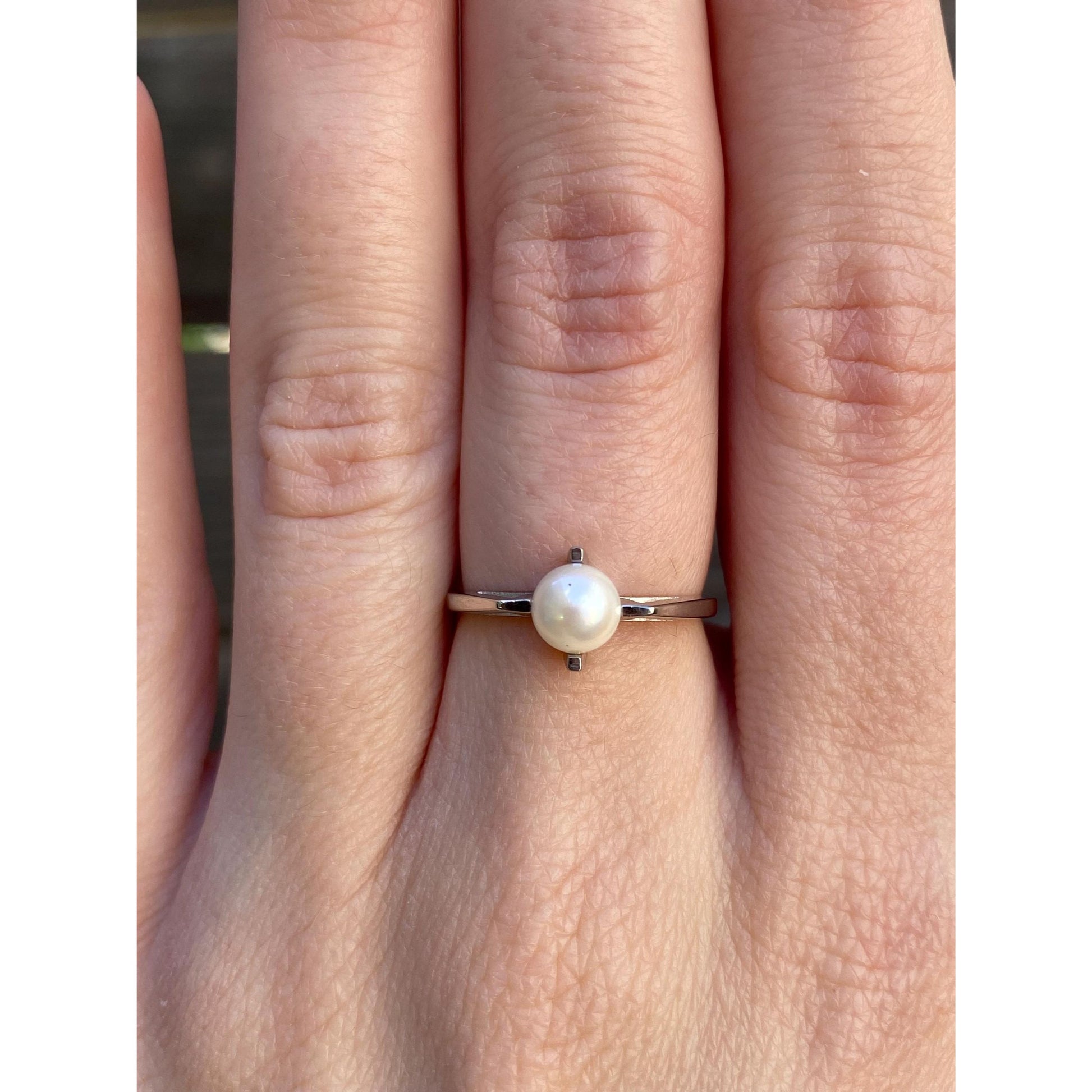 Vintage Solid 10k White Gold Pearl Ring - Size 5.75