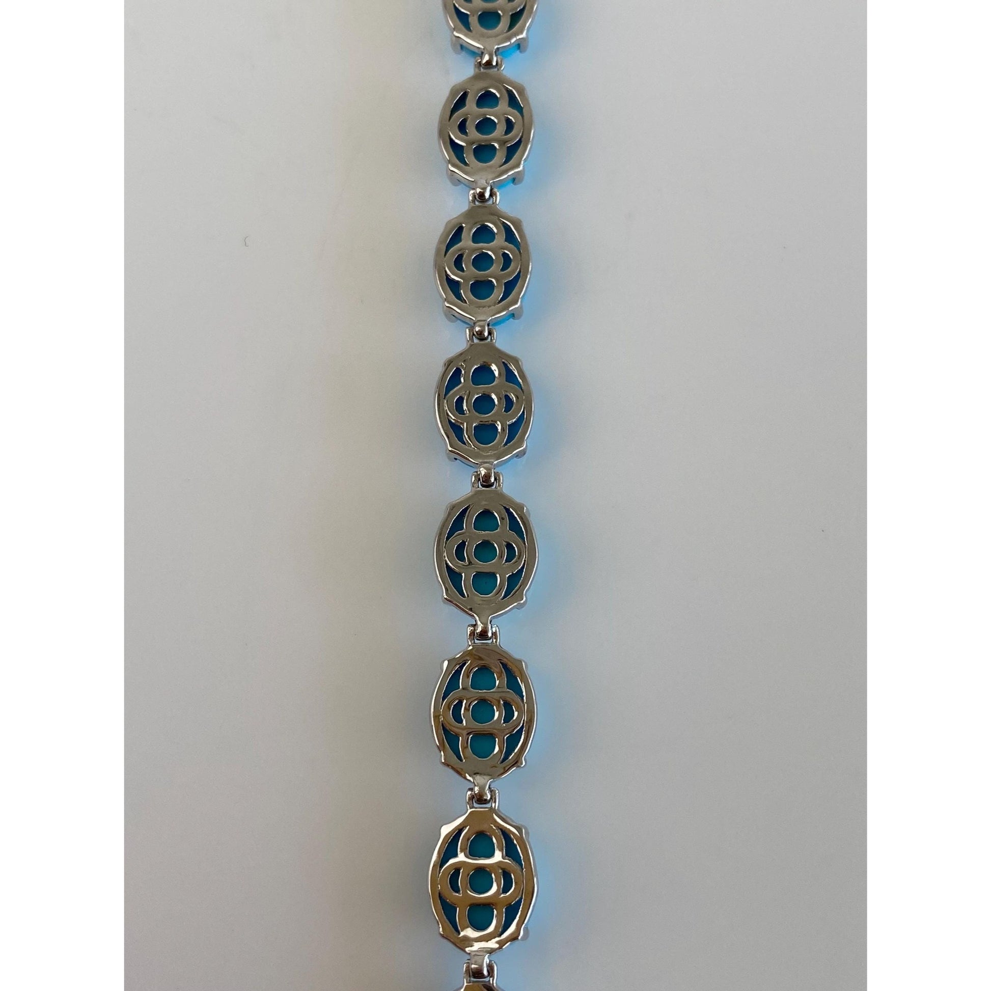 Vintage Solid 10k White Gold Turquoise Resin Link Bracelet - 8.25 inches
