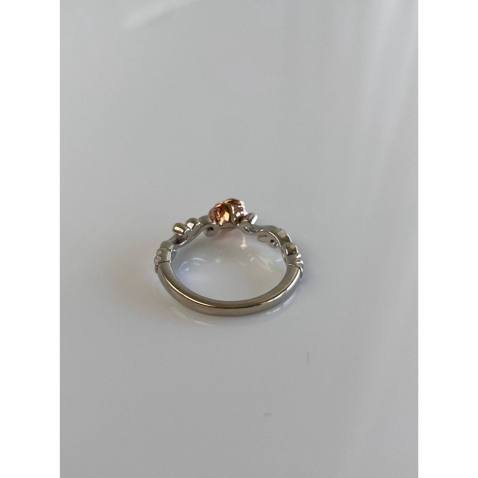 Vintage Solid 10k White & Rose Gold Diamond Rose Branch Ring - Size 6.75