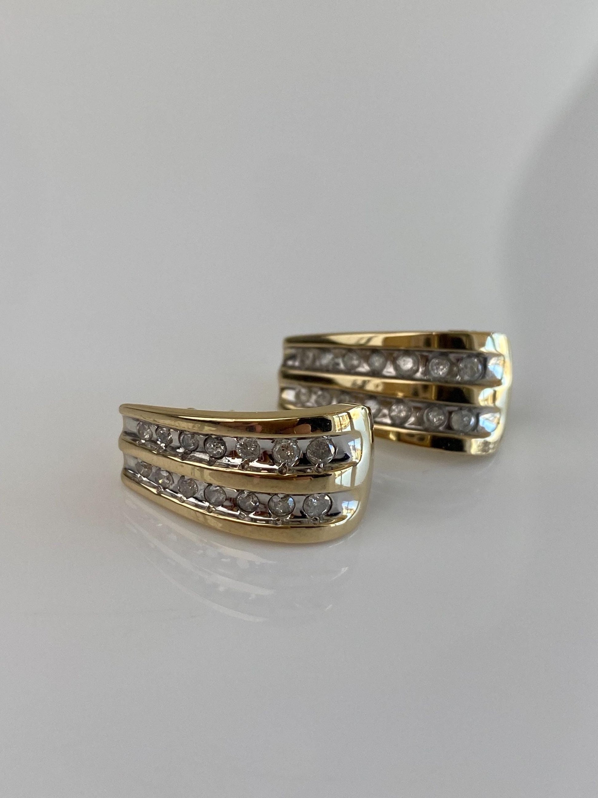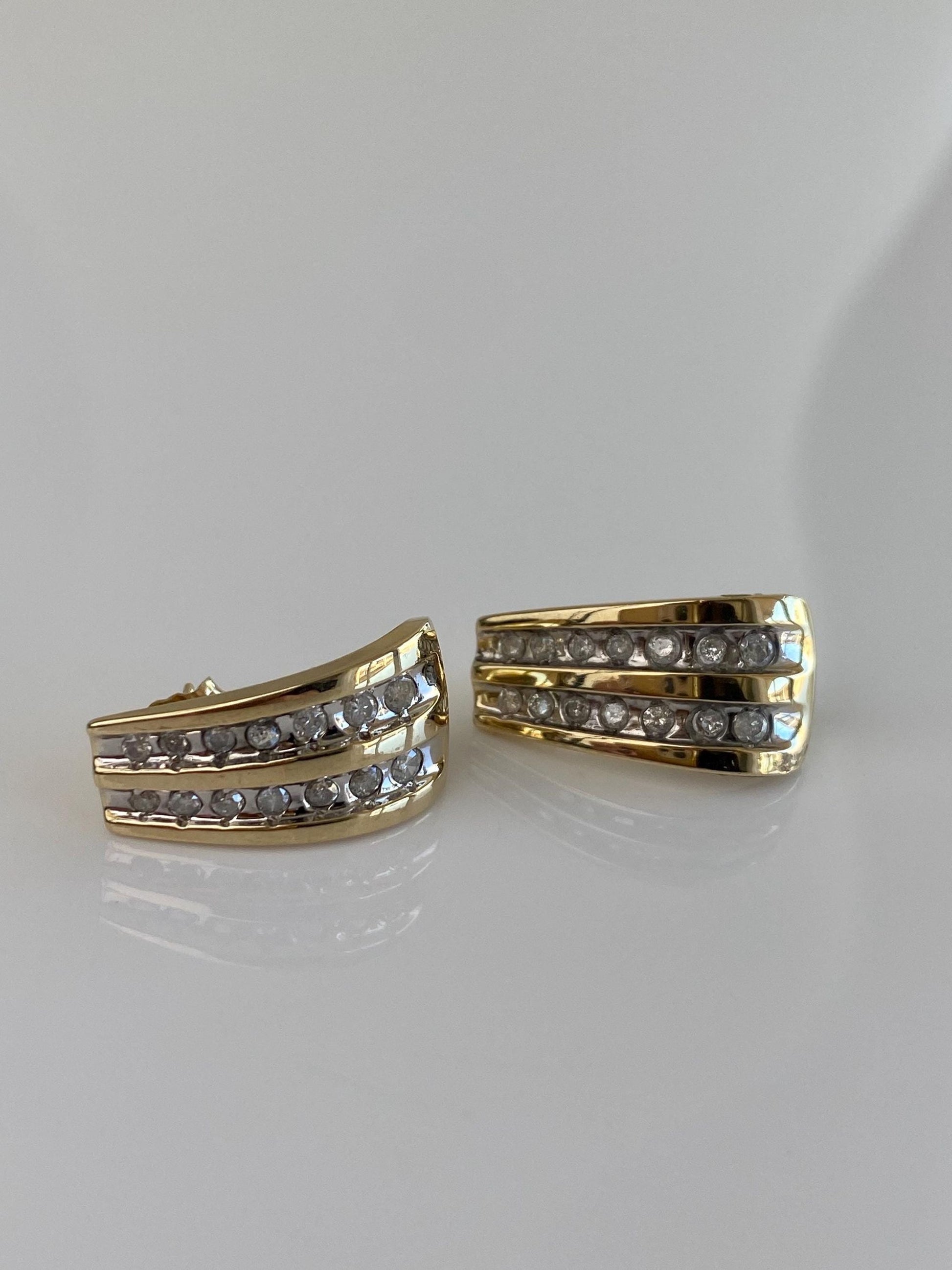 Vintage Solid 10k White & Yellow Gold Diamond Drop Earrings