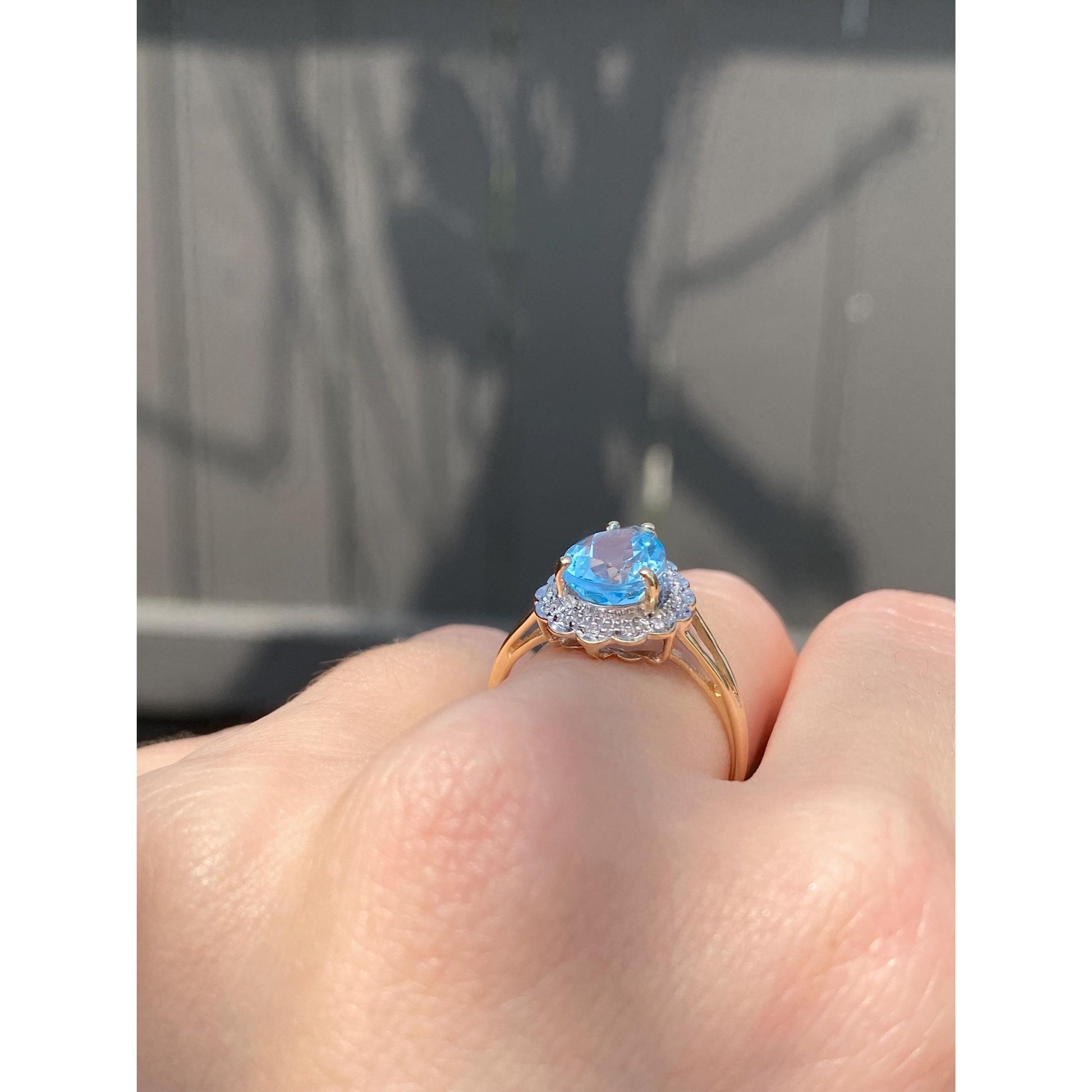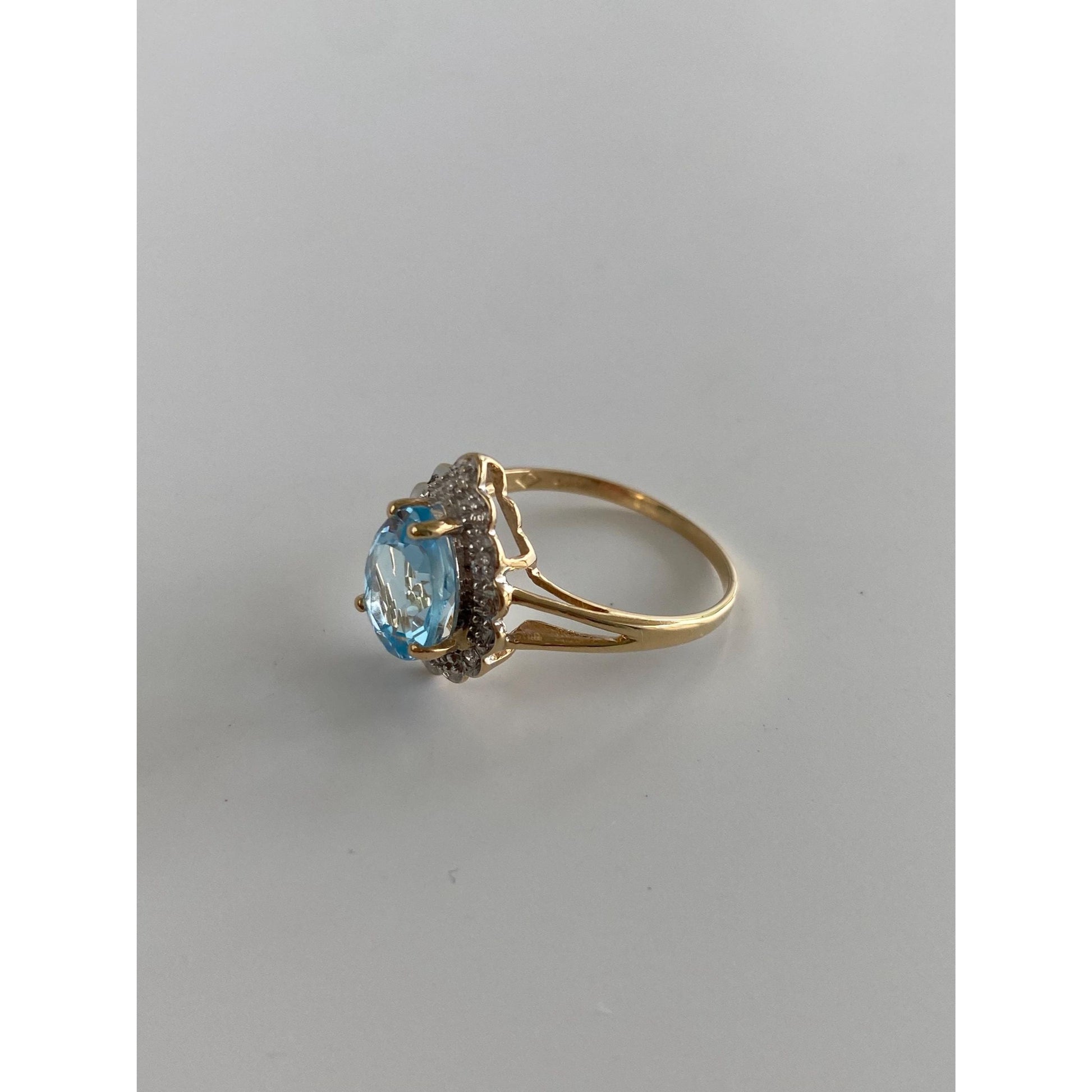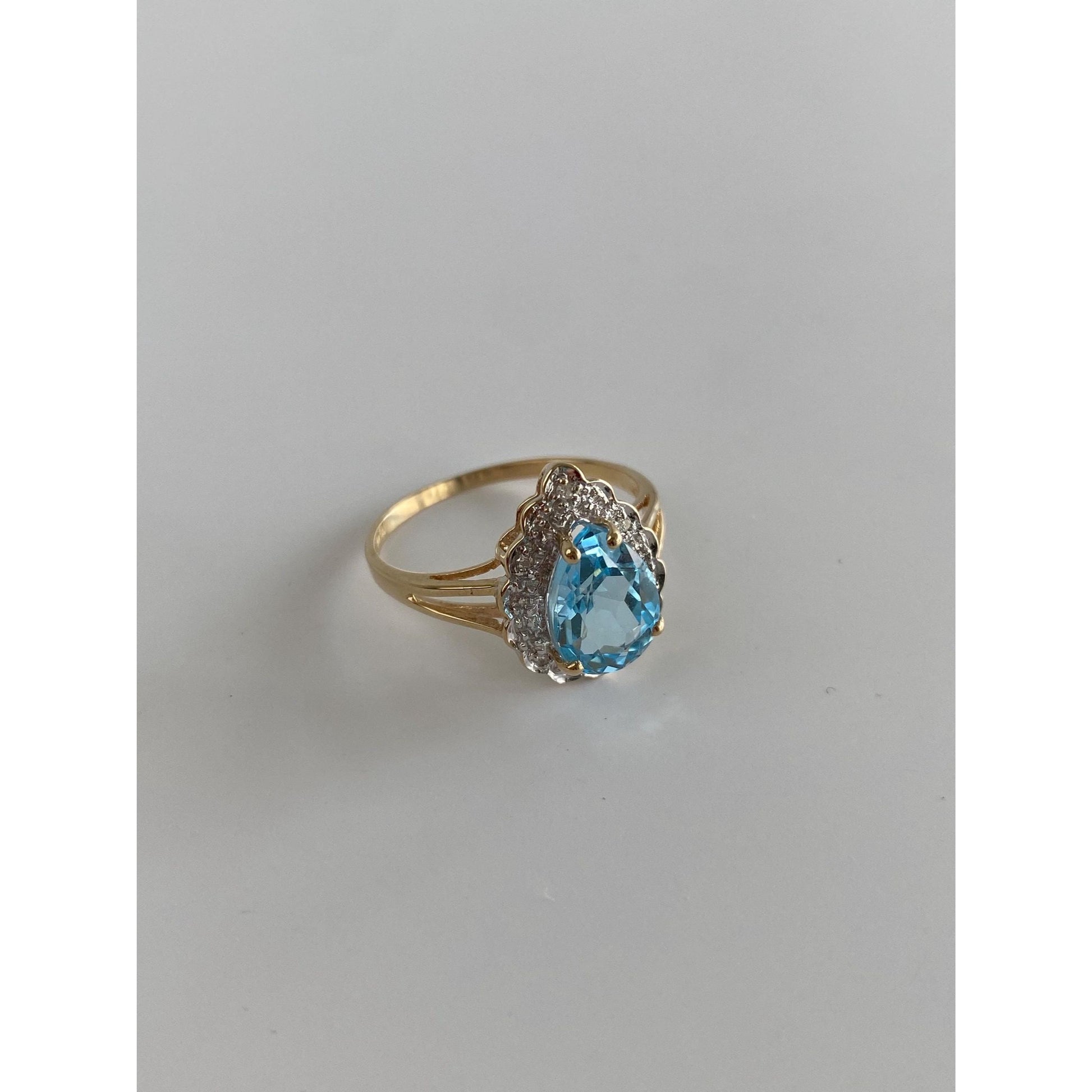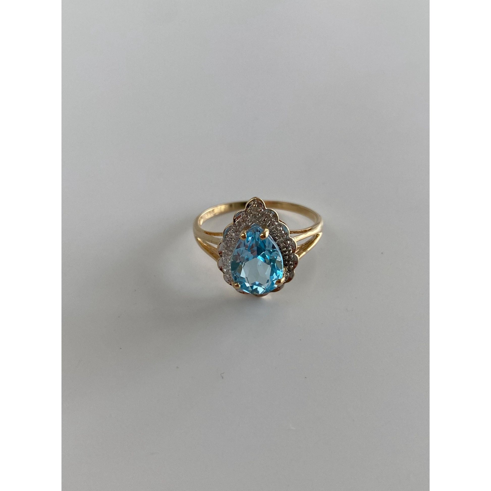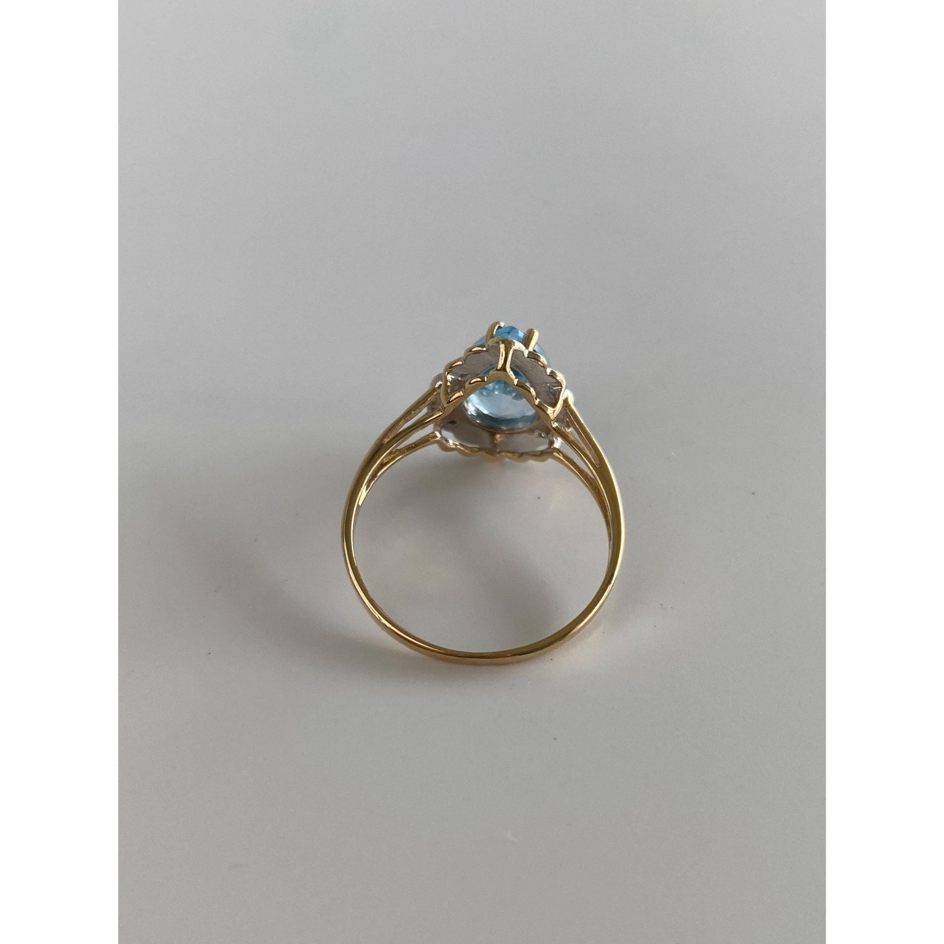 Vintage Solid 10k White & Yellow Gold Diamond Halo Topaz Ring - Size 8