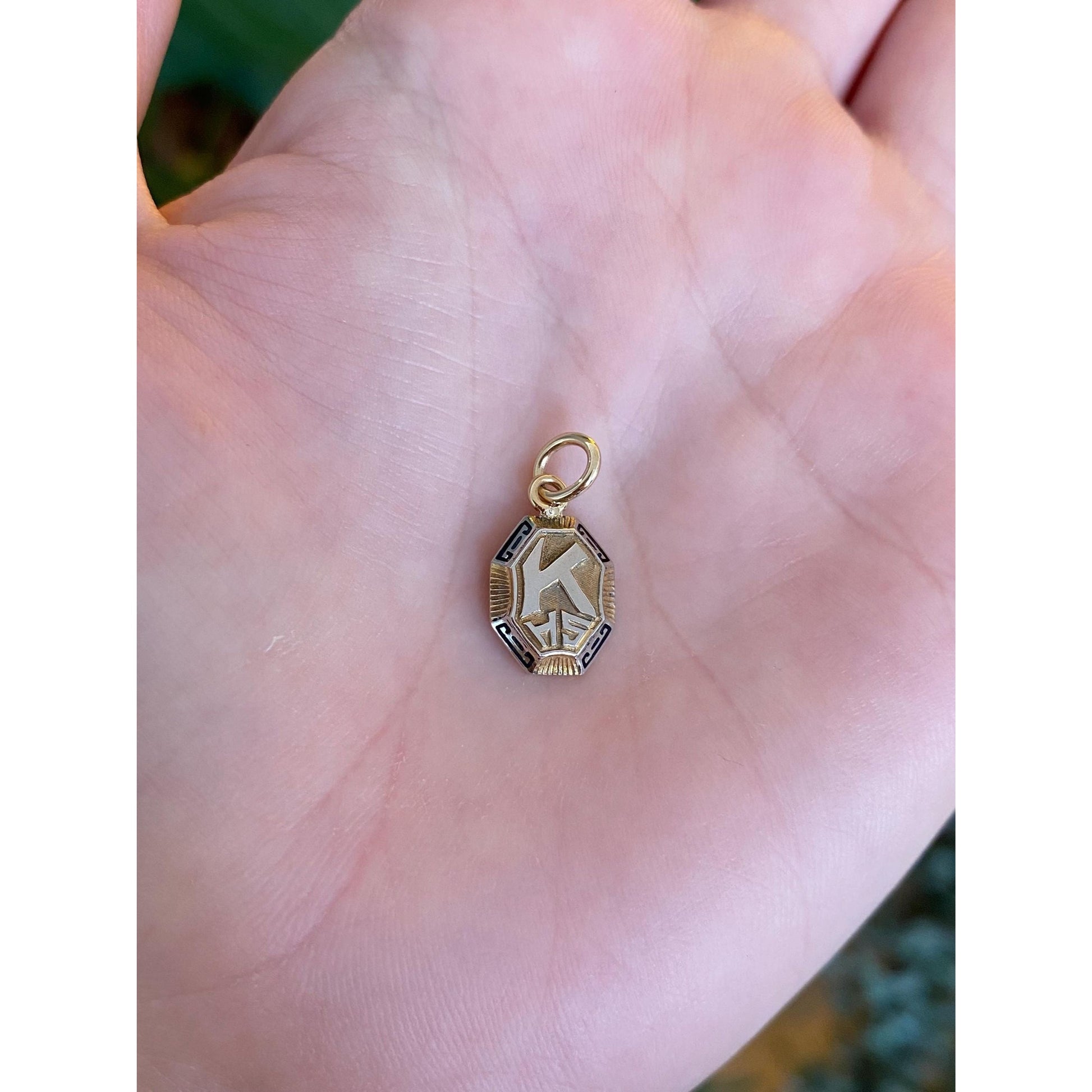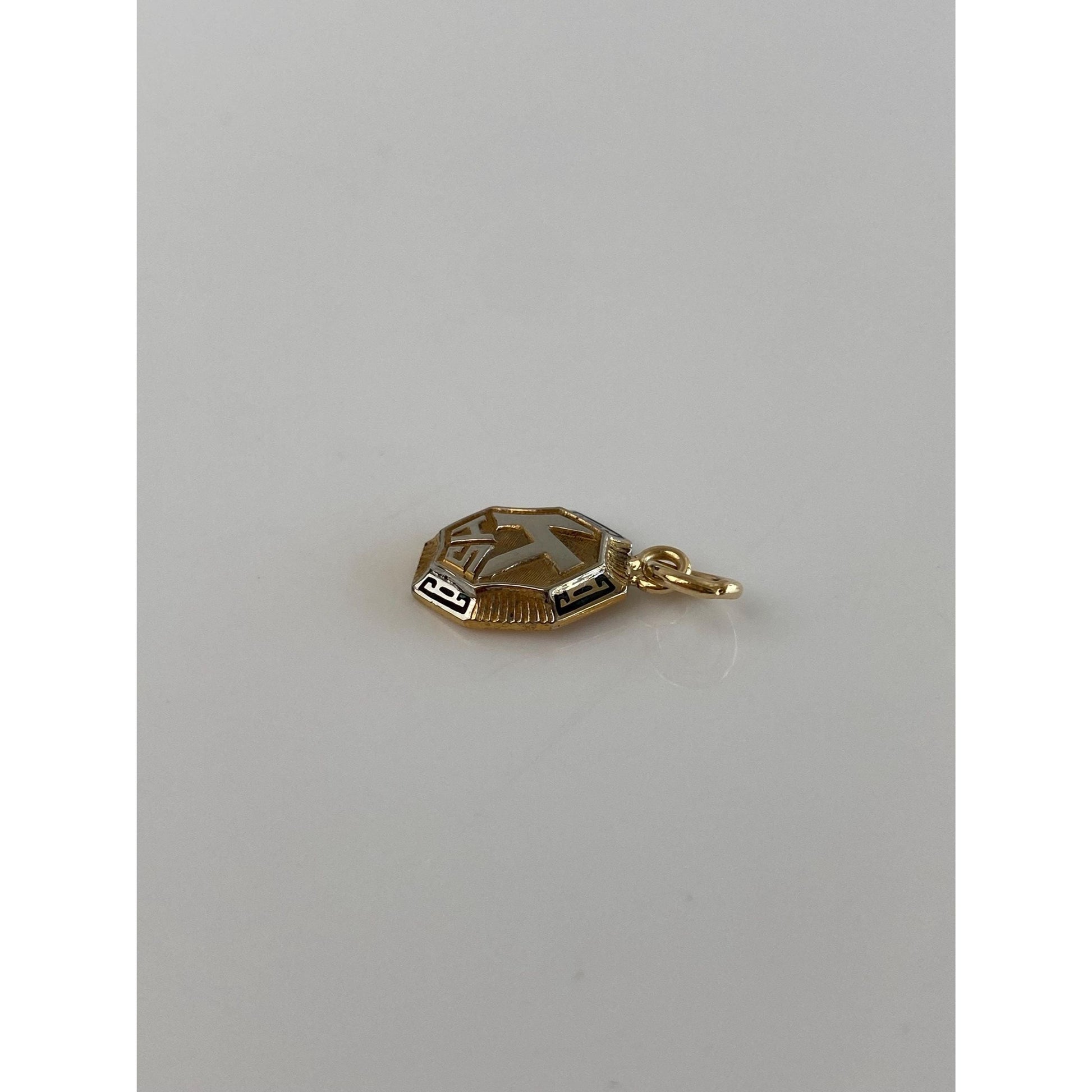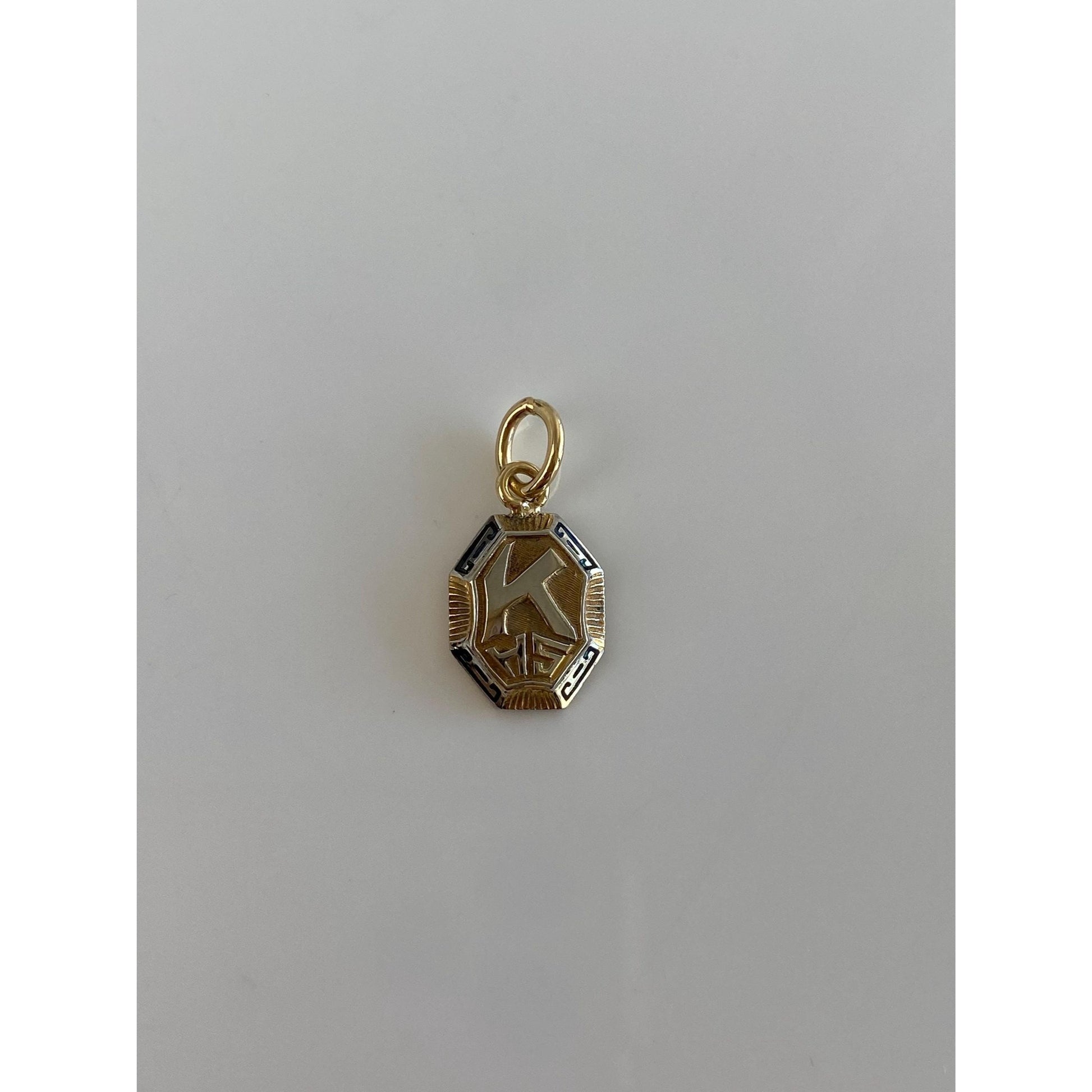 Vintage Solid 10k White & Yellow Gold Enamel K.H.S. Charm