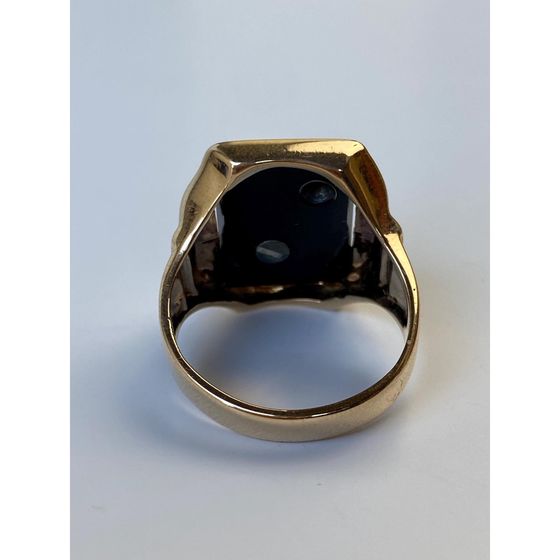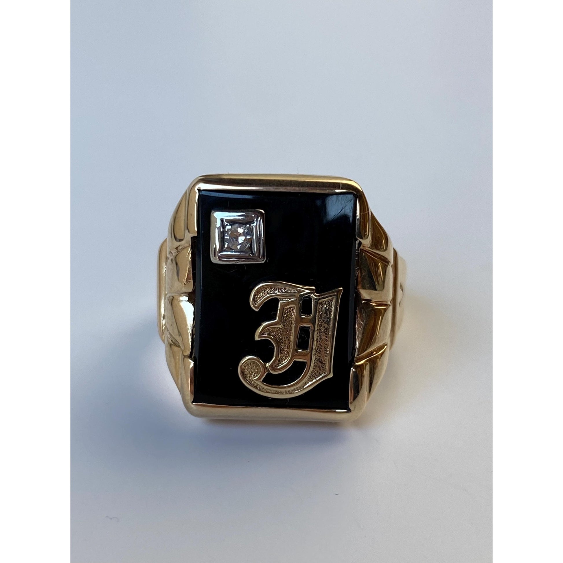 Vintage Solid 10k White & Yellow Gold Onyx Diamond Initial 'J' Signet Ring - Size 9.75