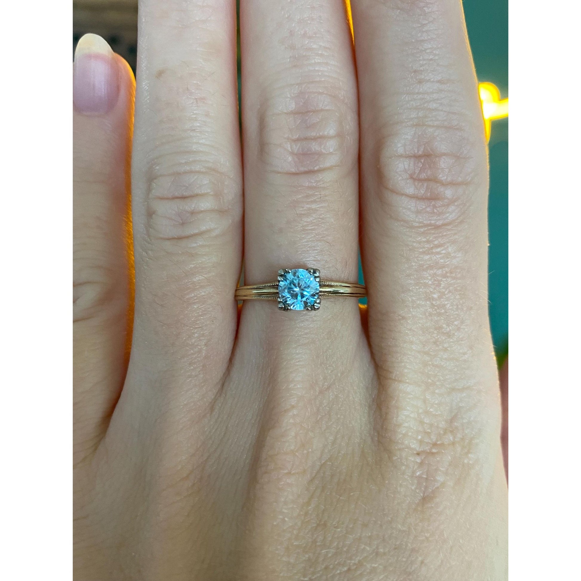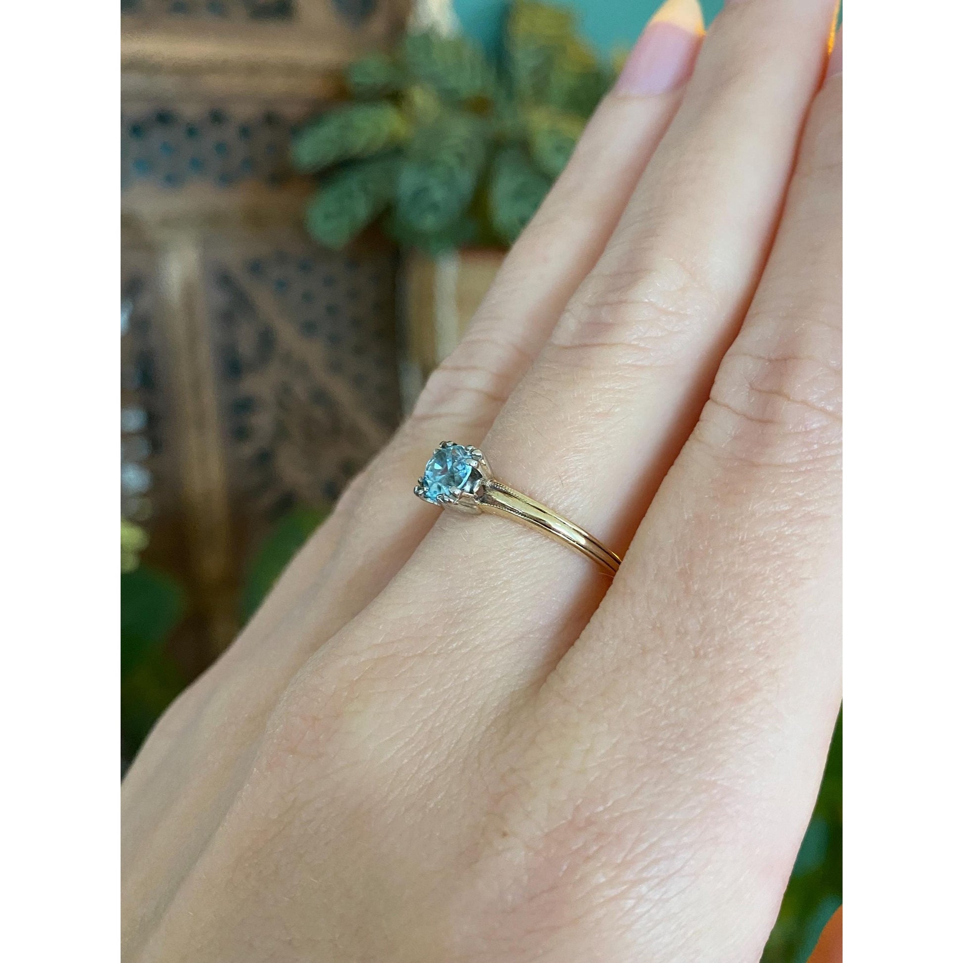 Vintage Solid 10k White & Yellow Gold Topaz Ring - Size 6.75