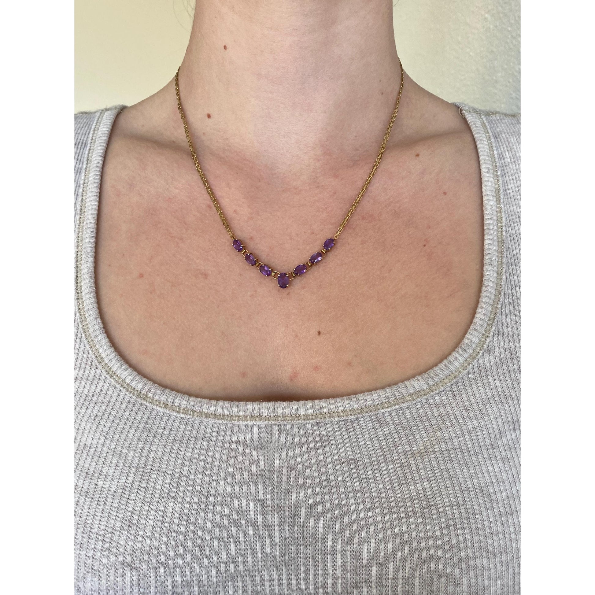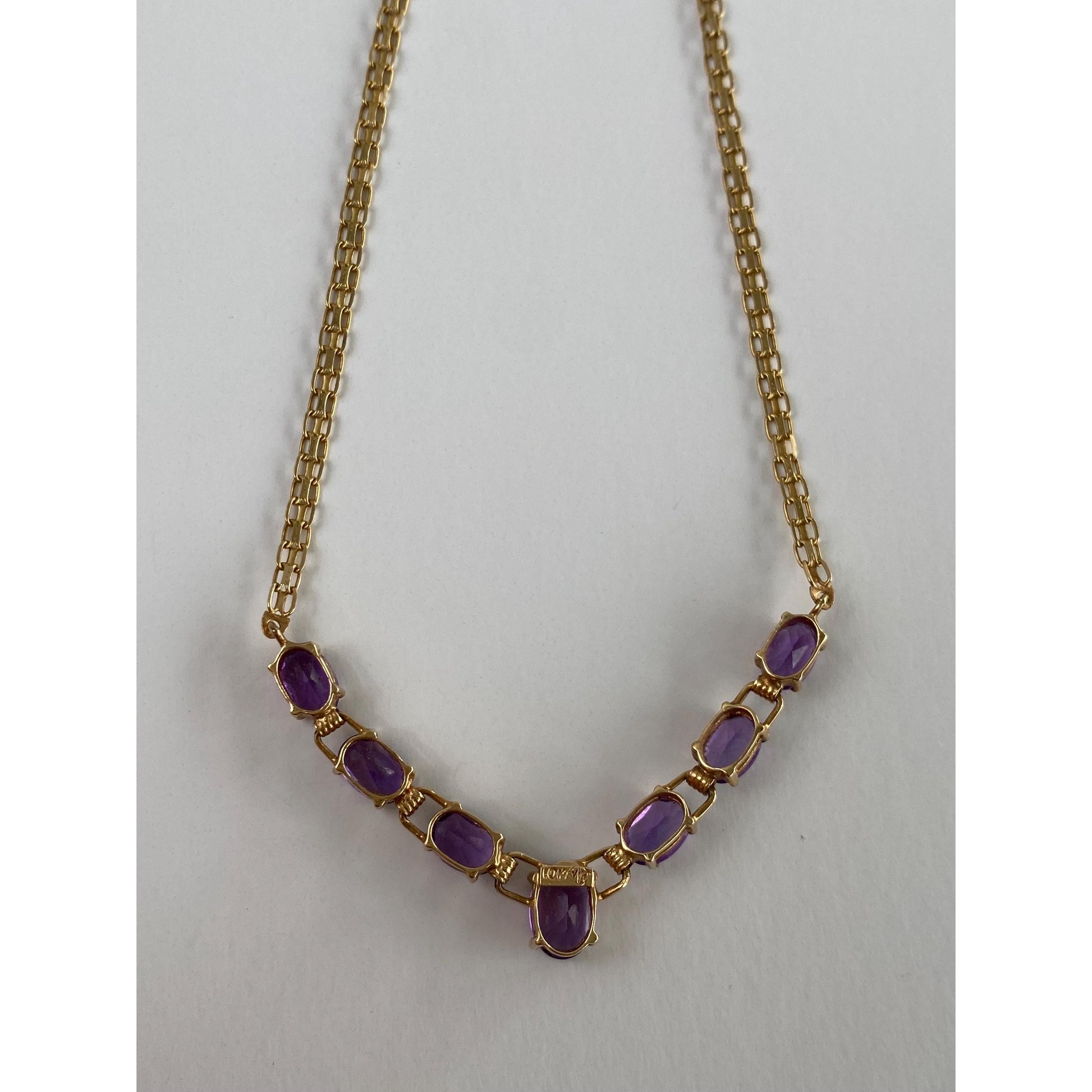 Vintage Solid 10k Yellow Gold Amethyst Link Flat Chain Necklace - 18 inches