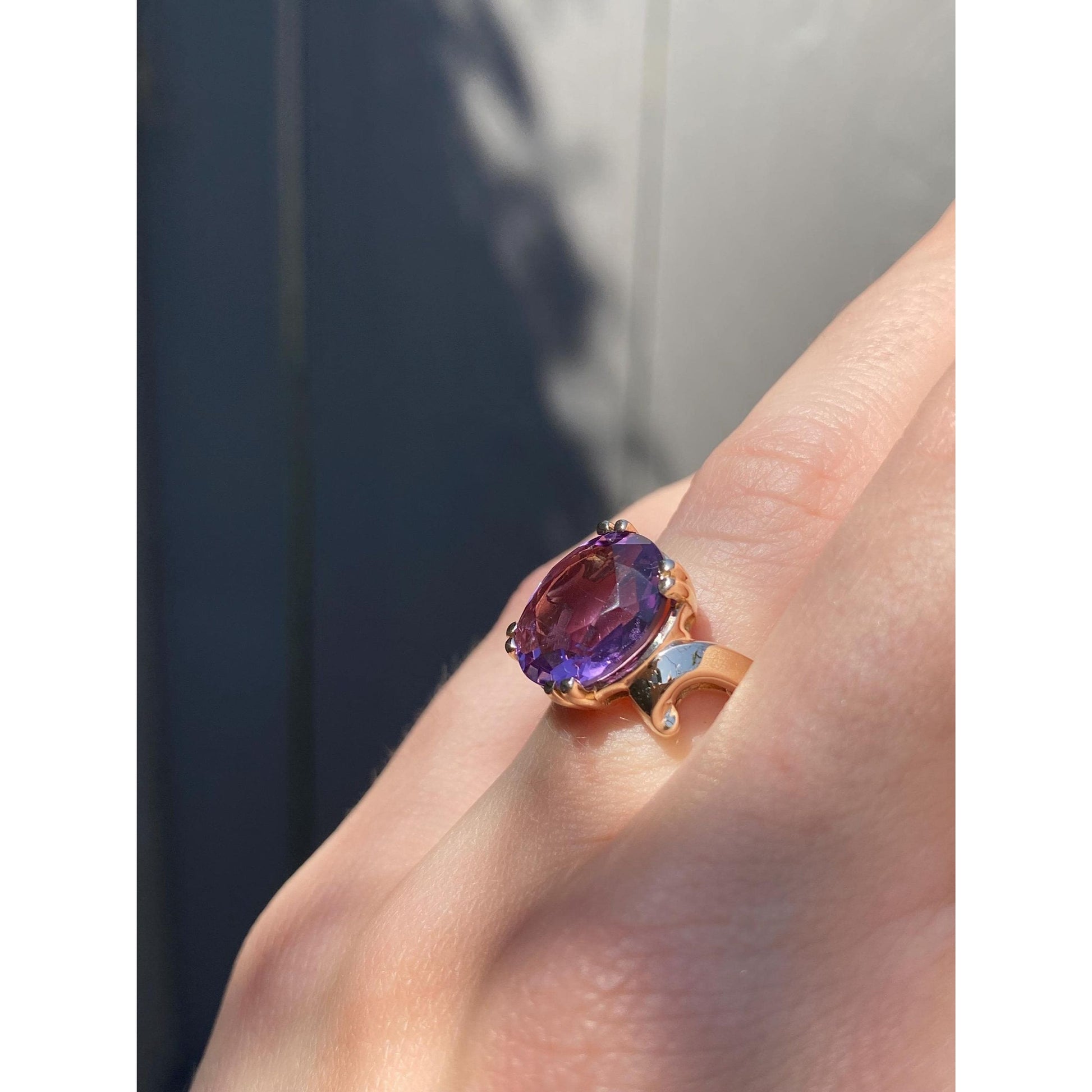 Vintage Solid 10k Yellow Gold Amethyst Ring - Size 5.5