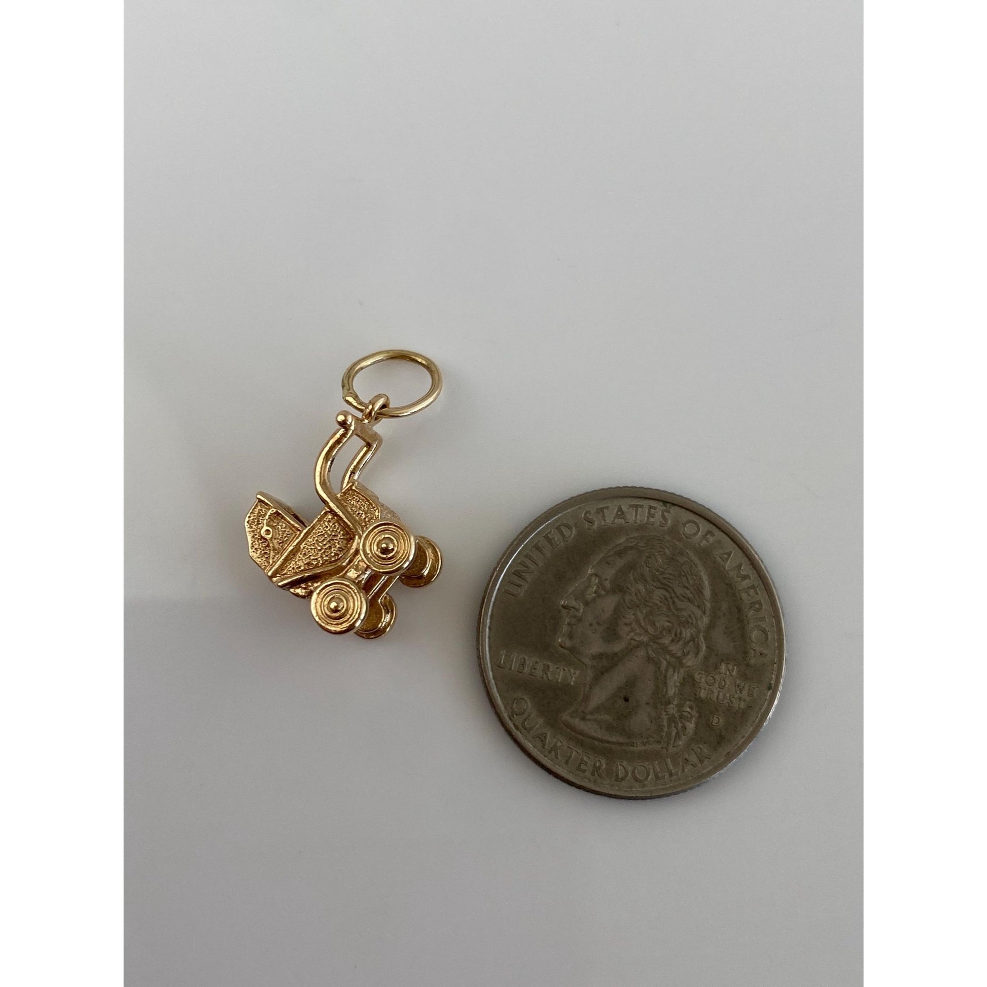 Vintage Solid 10k Yellow Gold Baby Carriage Charm