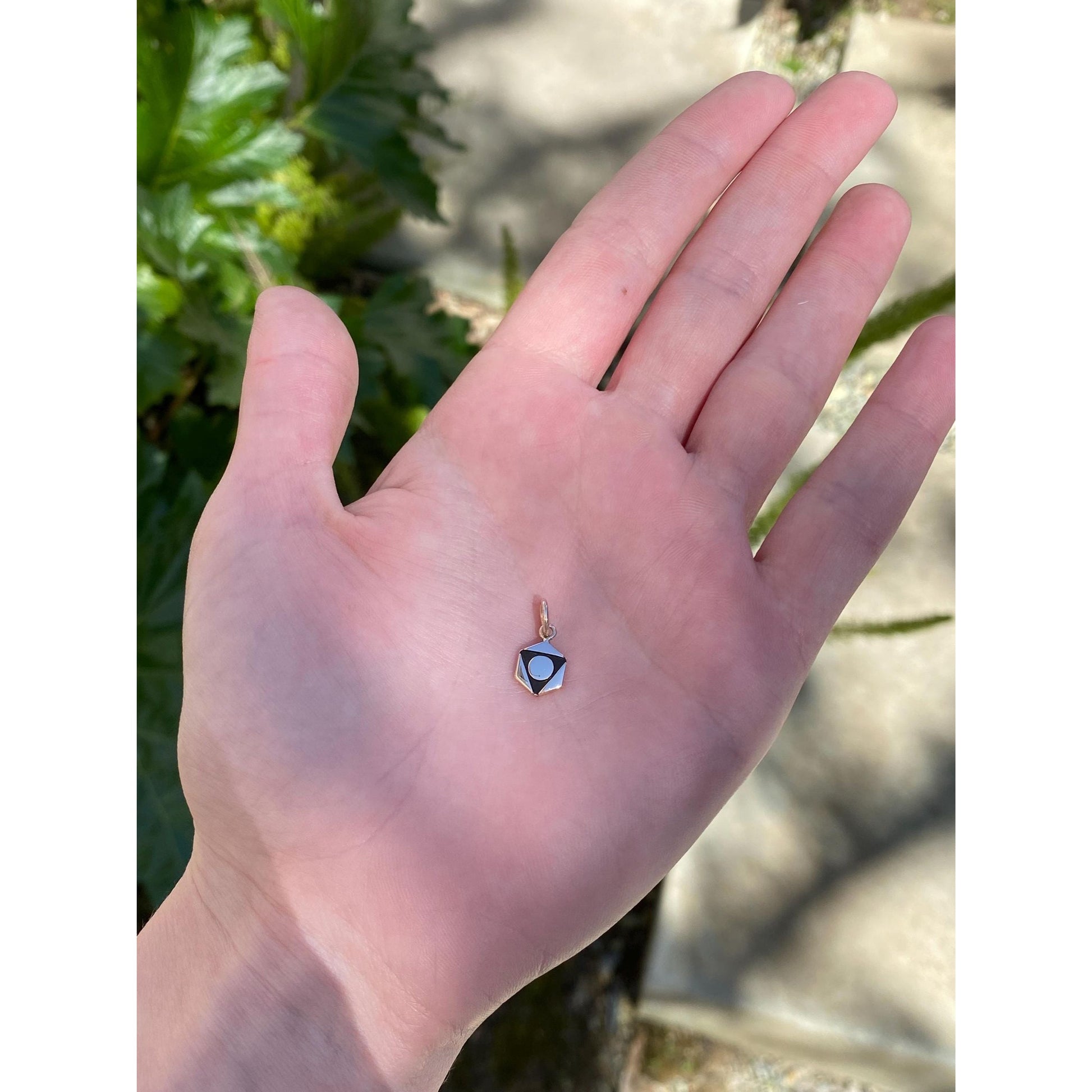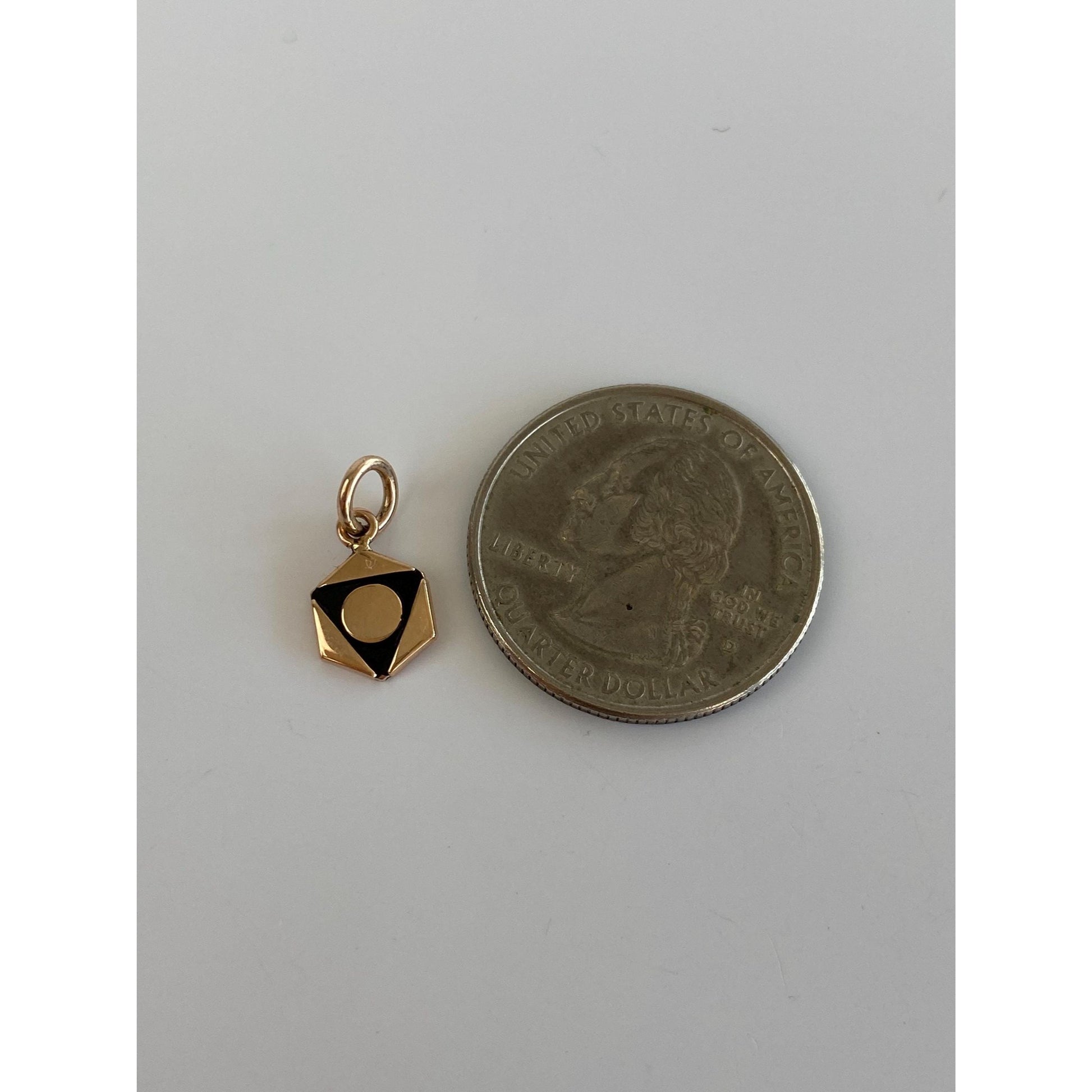 Vintage Solid 10k Yellow Gold Black Enamel Hexagon Charm