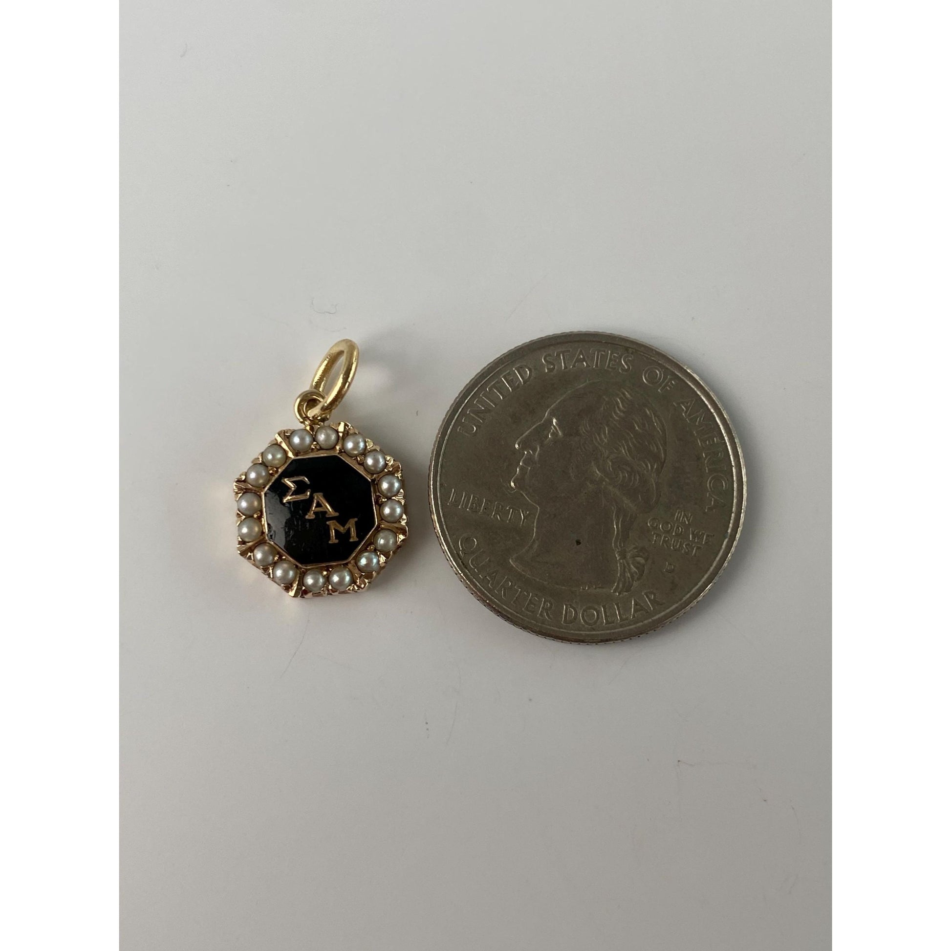 Vintage Solid 10k Yellow Gold Black Enamel Seed Pearl Halo Fraternity Charm