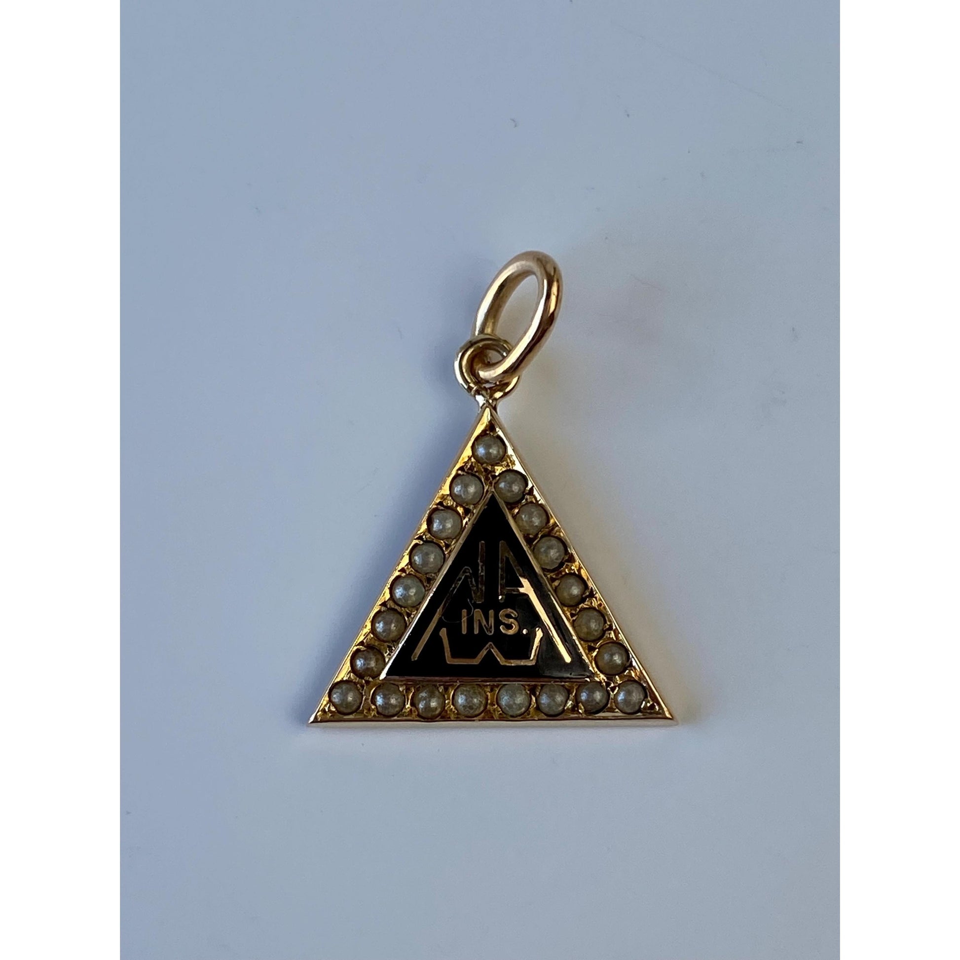 Vintage Solid 10k Yellow Gold Black Enamel Seed Pearl Triangle Charm