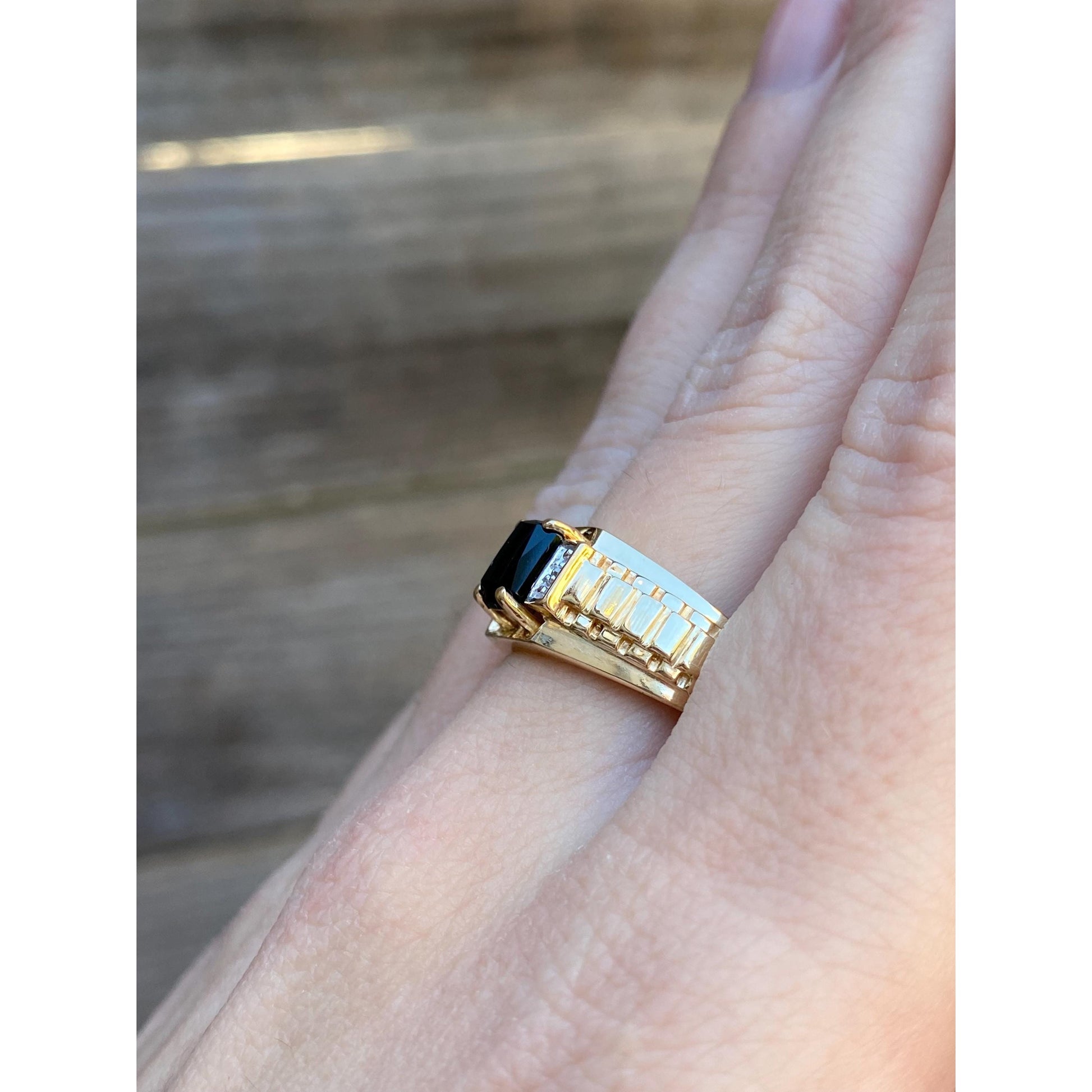 Vintage Solid 10k Yellow Gold Black Onyx Diamond Ring - Size 10.5