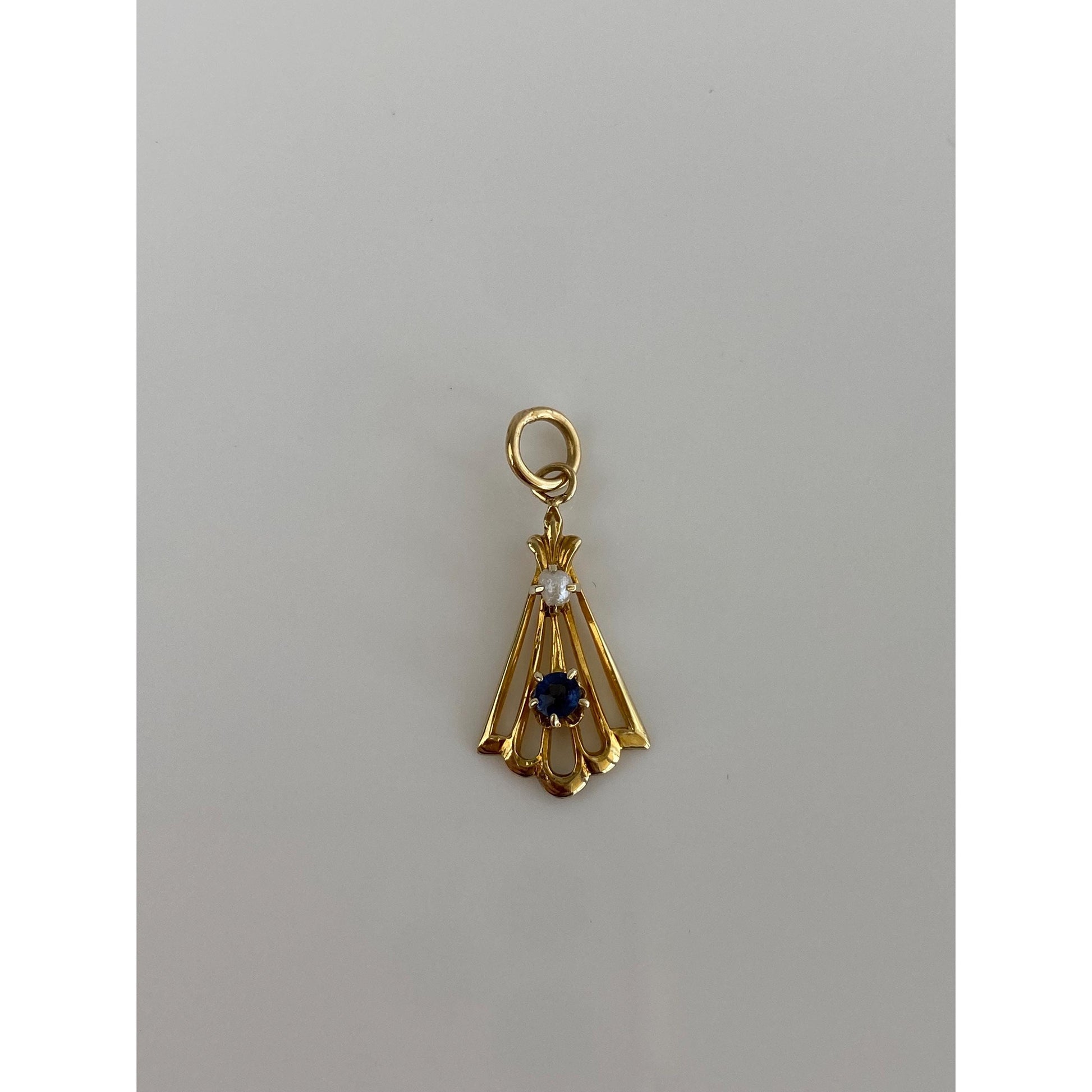 Vintage Solid 10k Yellow Gold Blue Cubic Zirconia Pearl Stick Pin Conversion Charm