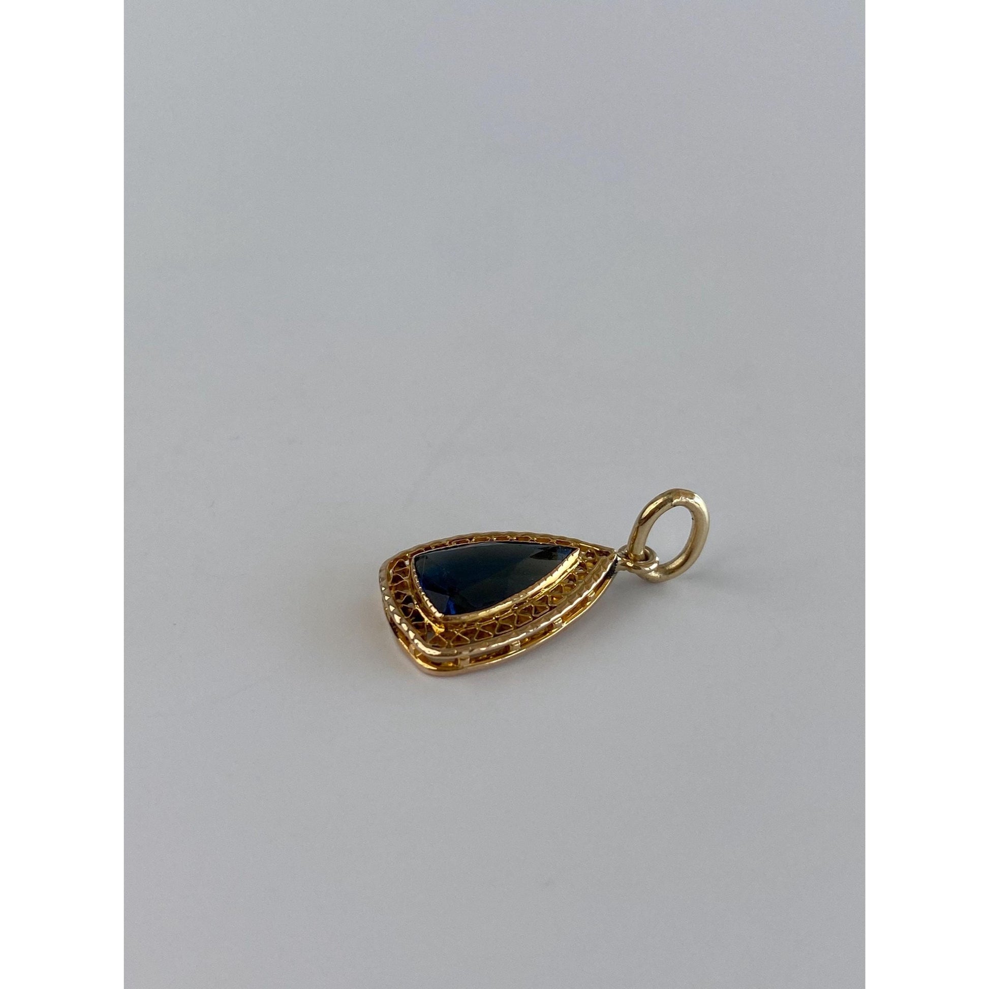 Vintage Solid 10k Yellow Gold Blue Cubic Zirconia Stick Pin Conversion Charm