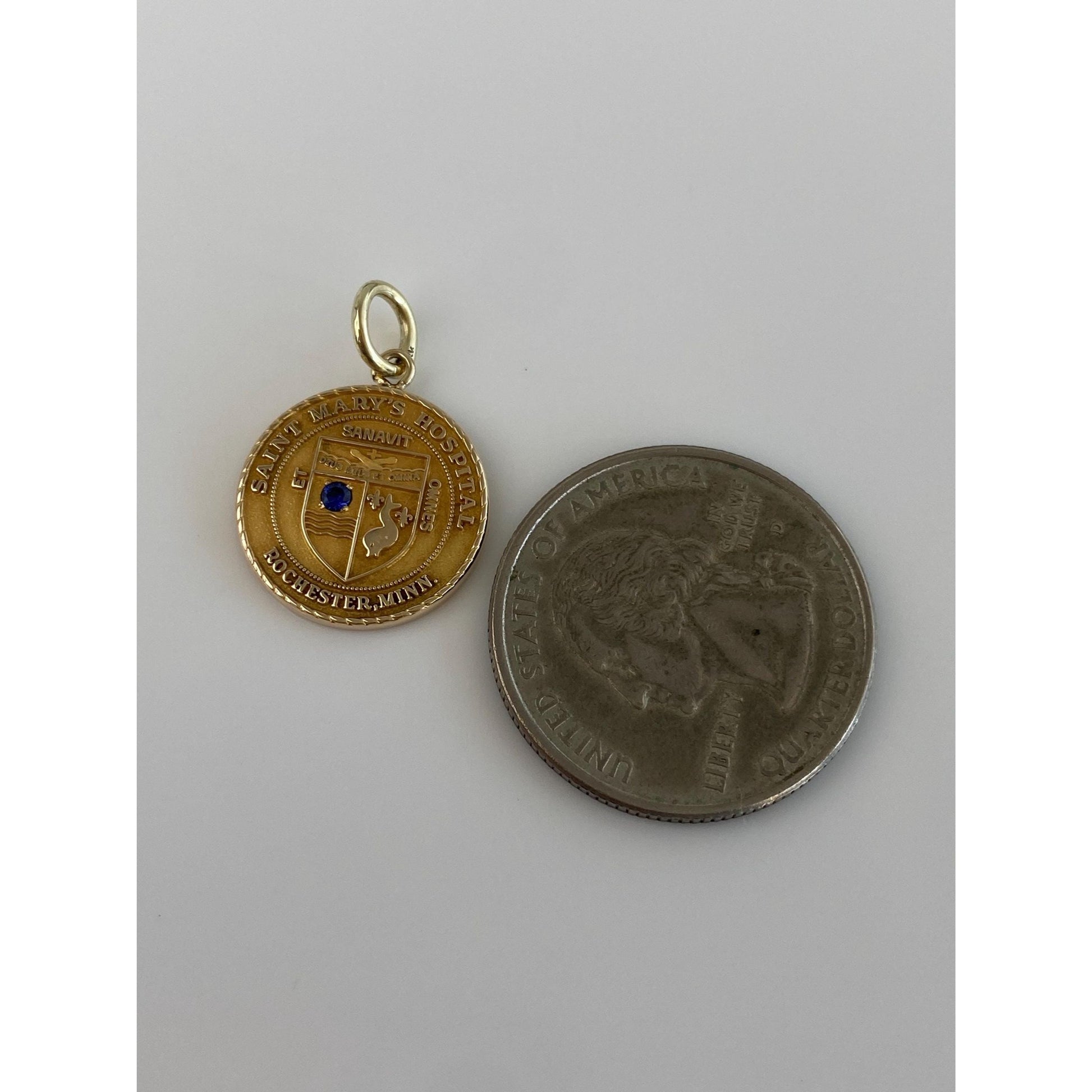 Vintage Solid 10k Yellow Gold Blue Sapphire St. Marys Hospital Rochester Minnesota Charm