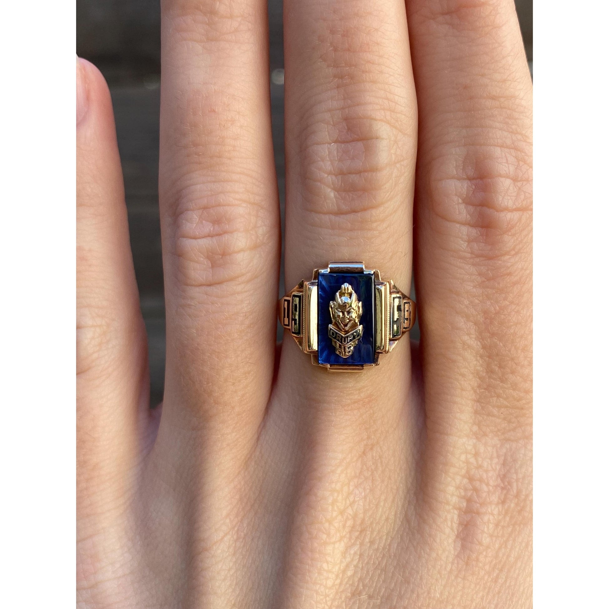 Vintage Solid 10k Yellow Gold Blue Spinel 1959 Class Ring - Size 6.5