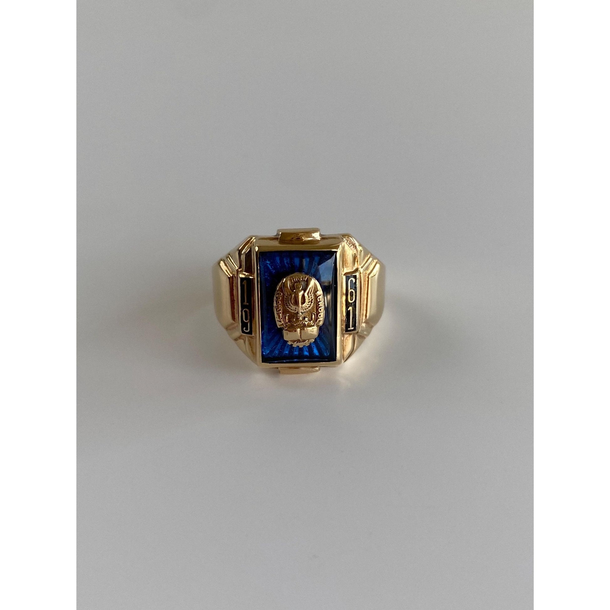Vintage Solid 10k Yellow Gold Blue Spinel 1961 Class Ring - Size 6